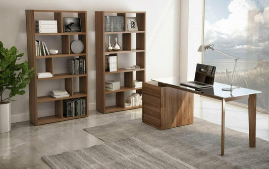 Waterfall Desk Natural, Satin Black Overlap Leg