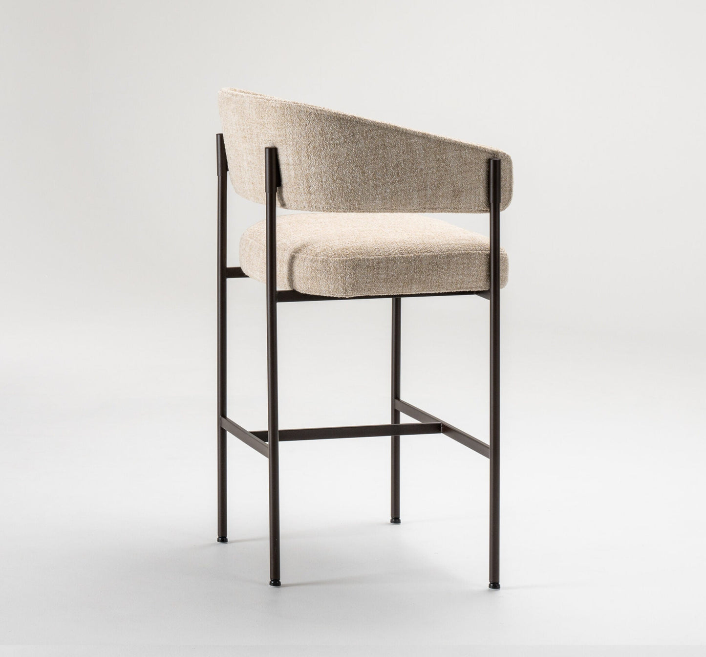 The Alice Barstool by Trica embodies modern and contemporary style, with clean lines and a minimalist structure that fits effortlessly into any space. The stool's armrests are seamlessly integrated into the backrest, offering an enveloping design that adds both elegance and comfort. Built with a fully welded steel frame, the Alice Barstool combines durability with a sleek, sophisticated appearance. Available in both counter and bar heights, the stool is perfect for kitchens, home bars, or dining areas.