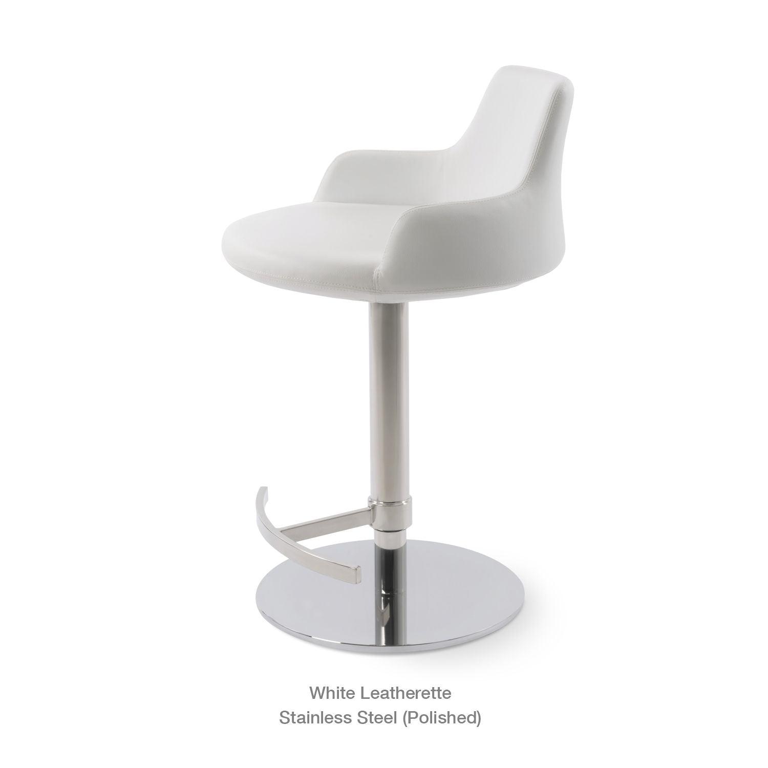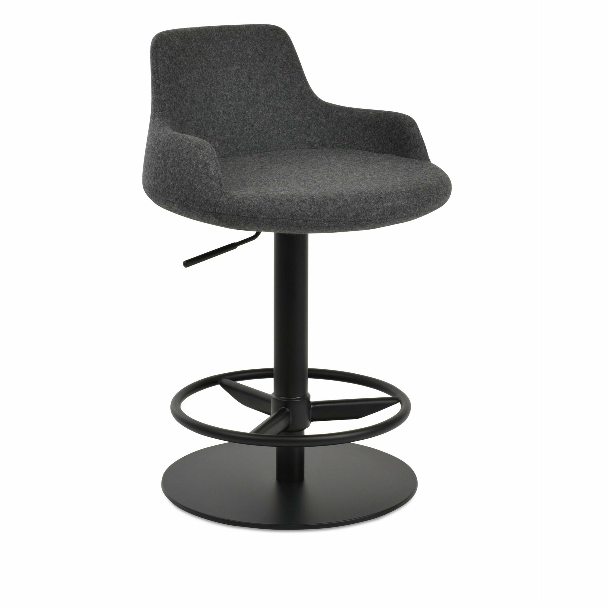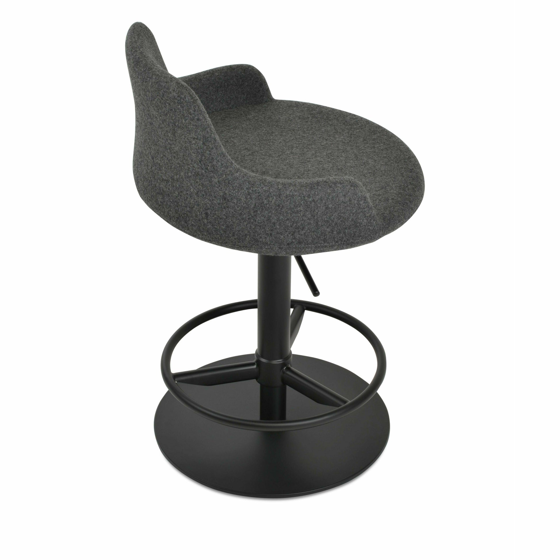 The Dervish Piston Swivel Stool is a modern and stylish bar and counter stool with a comfortable upholstered seat and backrest on an adjustable gas piston base that swivels and adjusts easily from a counter height to a bar height with a lever that activates the gas piston mechanism. The seat has a steel structure with 'S' shape springs for extra flexibility and strength. This steel frame is molded by injecting polyurethane foam. The Dervish seat is upholstered with a removable zipper slip cover that can be changed with professional help. Camira Fabrics are five years guaranteed from the date of invoice against wear through (the complete deterioration of the fabric's structure in a particular area) and loss of colorfastness (the excessive loss of color due to exposure to light). Dervish Piston Swivel Stool is suitable for both residential and commercial use.