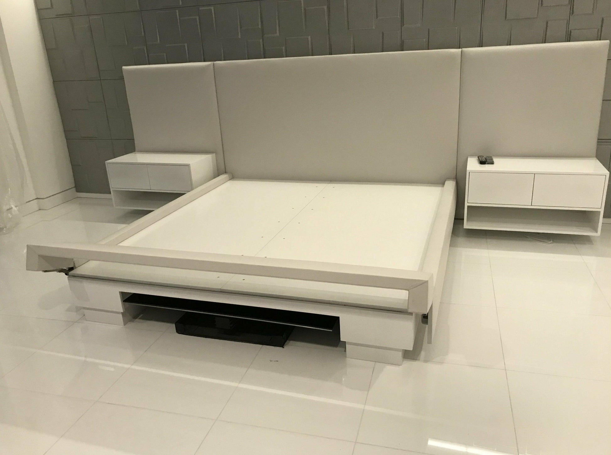 When not in use, your TV is smoothly concealed within the custom headboard, rising and lowering effortlessly at the touch of a button, thanks to a built-in motorized mechanism.