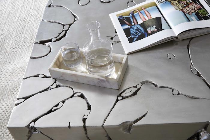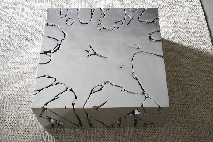 The Chunk Square Coffee Table, Silver Leaf by Phillips Collection is a stunning fusion of modern design and natural inspiration. Crafted from resin composite and finished in a luxurious silver leaf, this table captures the organic beauty of aged teak wood while adding a refined metallic sheen. Expertly cast from real wood, it showcases natural wood grain textures and intricate details that blur the line between art and furniture. Designed to be the focal point of any living space, this table reflects Phillips Collection’s signature ethos: modern organic design.