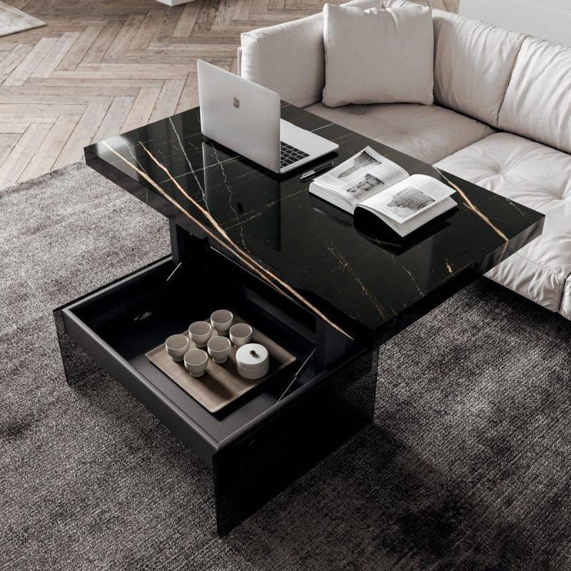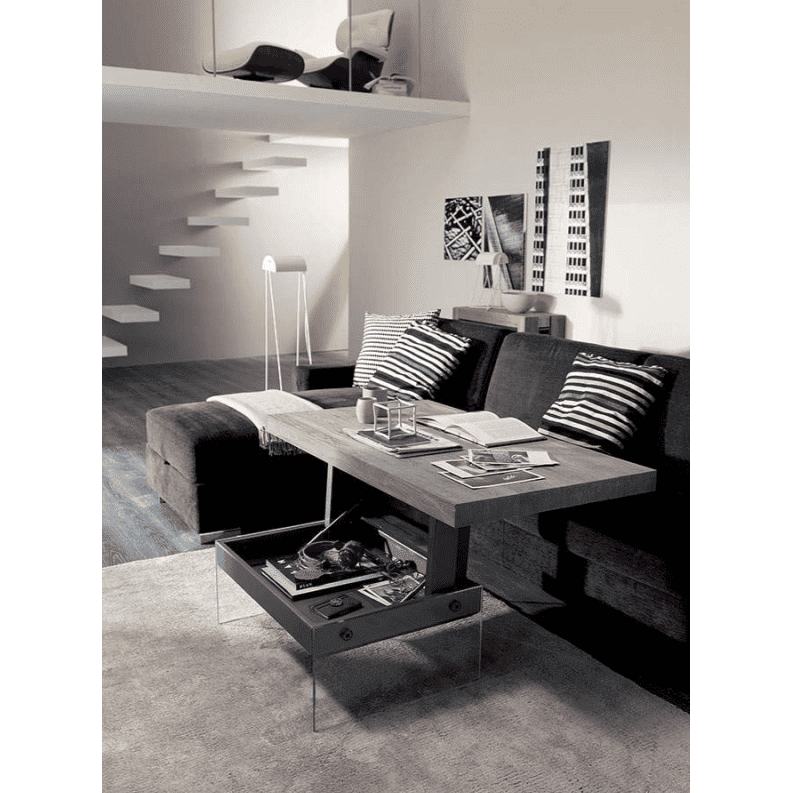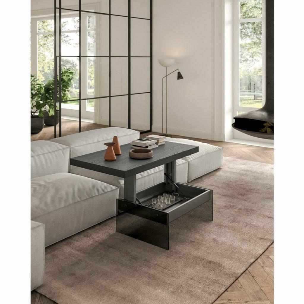 Il tavolino Bellagio di Ozzio Italia ha una personalità versatile che saprà sicuramente distinguersi in una casa moderna. È dotato di un piano regolabile in altezza che, aprendosi, rivela un vano portaoggetti e si mantiene poi in posizione come area provvisoria per mangiare o lavorare. Quando non è aperto, appare come un classico e elegante tavolino da caffè che si integra con il resto dell'arredamento e dei mobili contemporanei. Il piano si alza agevolmente per una maggiore praticità, e c'è ampio spazio per mantenere tutto organizzato sia sul piano superiore che nell'area inferiore di stivaggio. Le finiture contrastanti si distinguono a vicenda per un tocco accattivante. Prodotto in Italia con incredibile attenzione ai dettagli e progettato da Marco Pozzoli, il tavolino Bellagio è disponibile con un elevato grado di personalizzazione. Il piano è disponibile in legno, pietra e vetro, mentre le gambe sono in diverse opzioni di vetro.