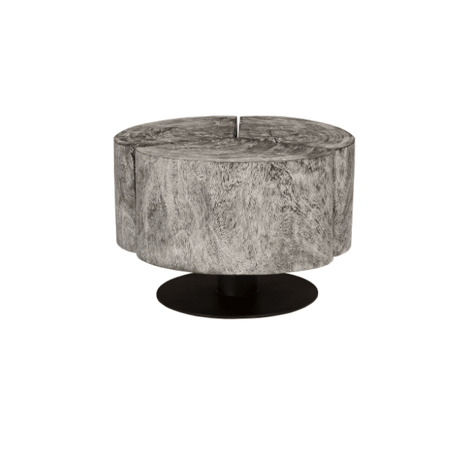 You won’t need any other lucky charm when you place the Clover Gray Coffee Table in a room. Carved from blocks of chamcha wood and treated to a gray stone finish, the curved sections that make up the top are affixed to a black metal base. What makes this wood coffee table extra special are the swirls of graduated hues that darken as they flow toward the middle, the whorls representing the rings of the tree as it grew. This is only possible because we have reclaimed a portion of a massive felled specimen that would have been abandoned to decompose on the forest floor and made a piece worthy of its beauty. We also offer the Clover in a natural version. Both of these reflect the ethos that the Phillips Collection personifies: modern organic.