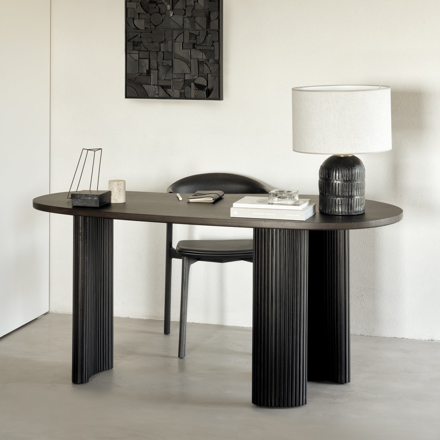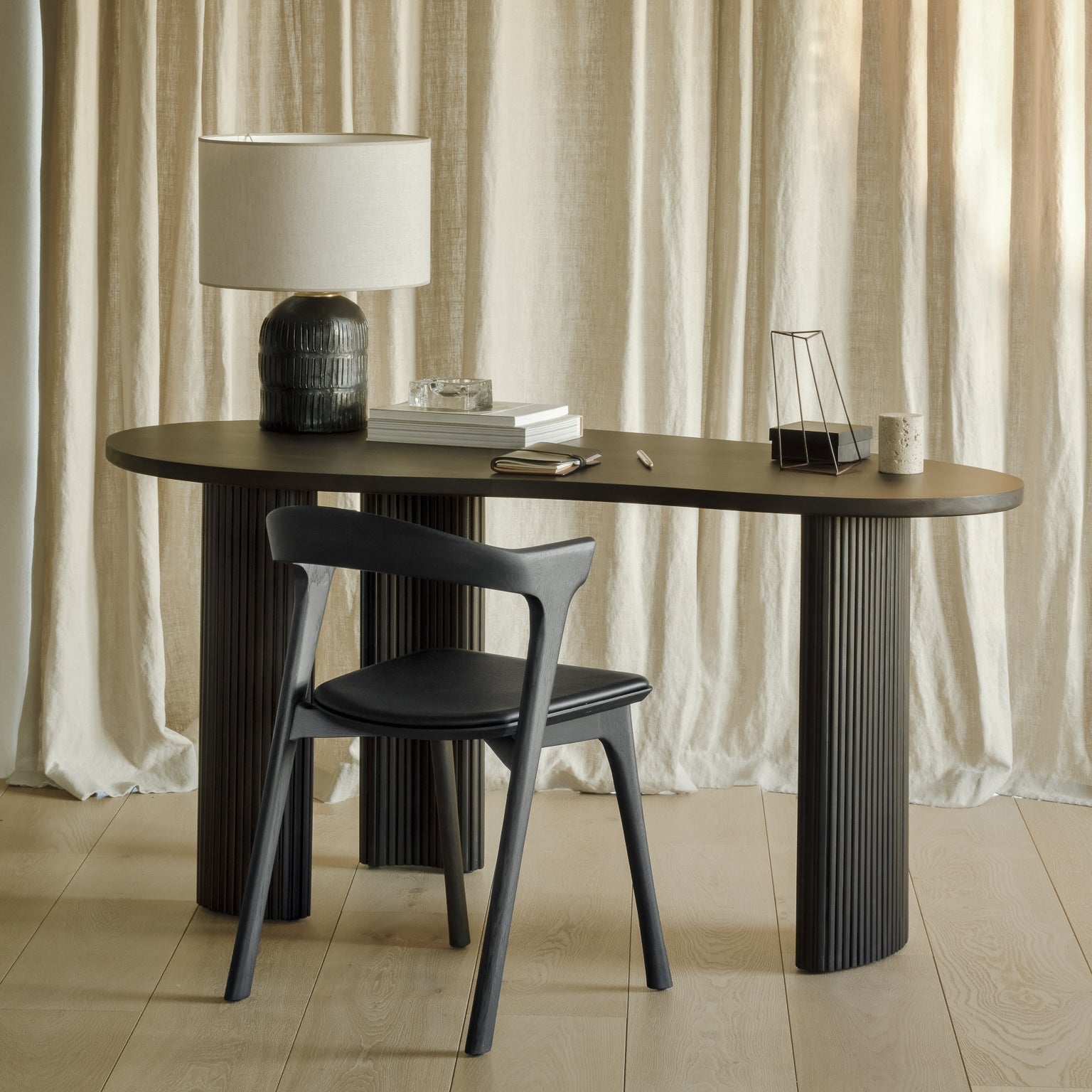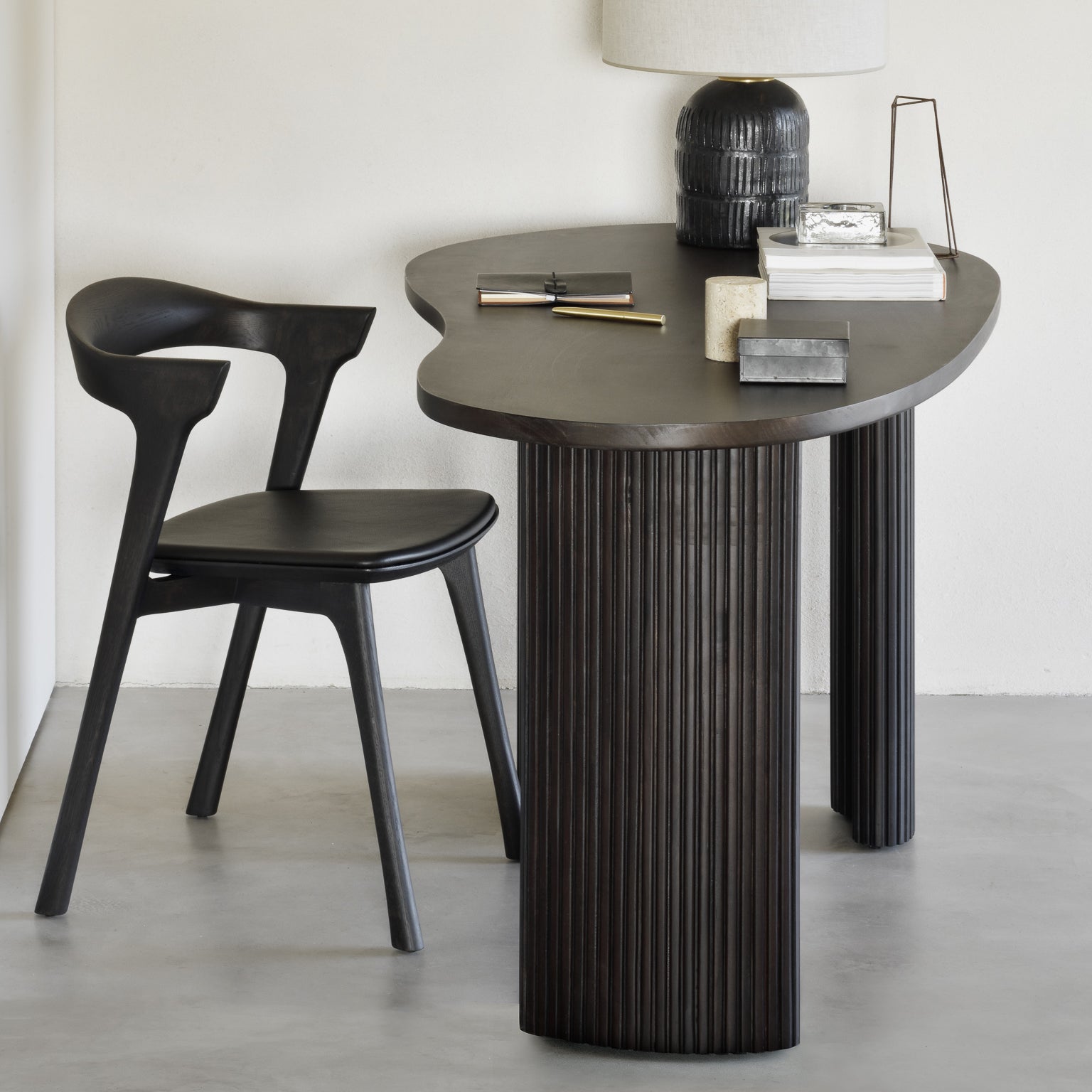 Inspired by shapes found in nature, the Boomerang Desk by Jacques Deneef features a playful, pebble top set on curved legs with a stacked, wood stick effect. This desk is a statement piece for any workspace, offering an organic and eye-catching design that is unique for the office.