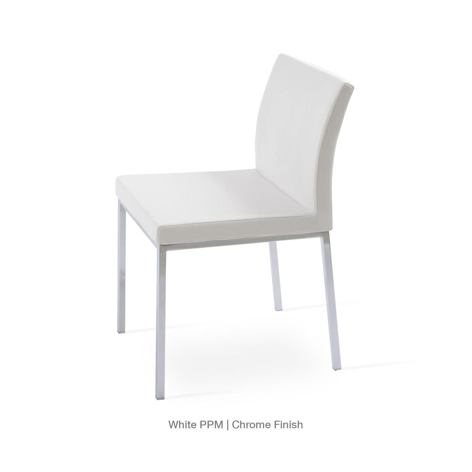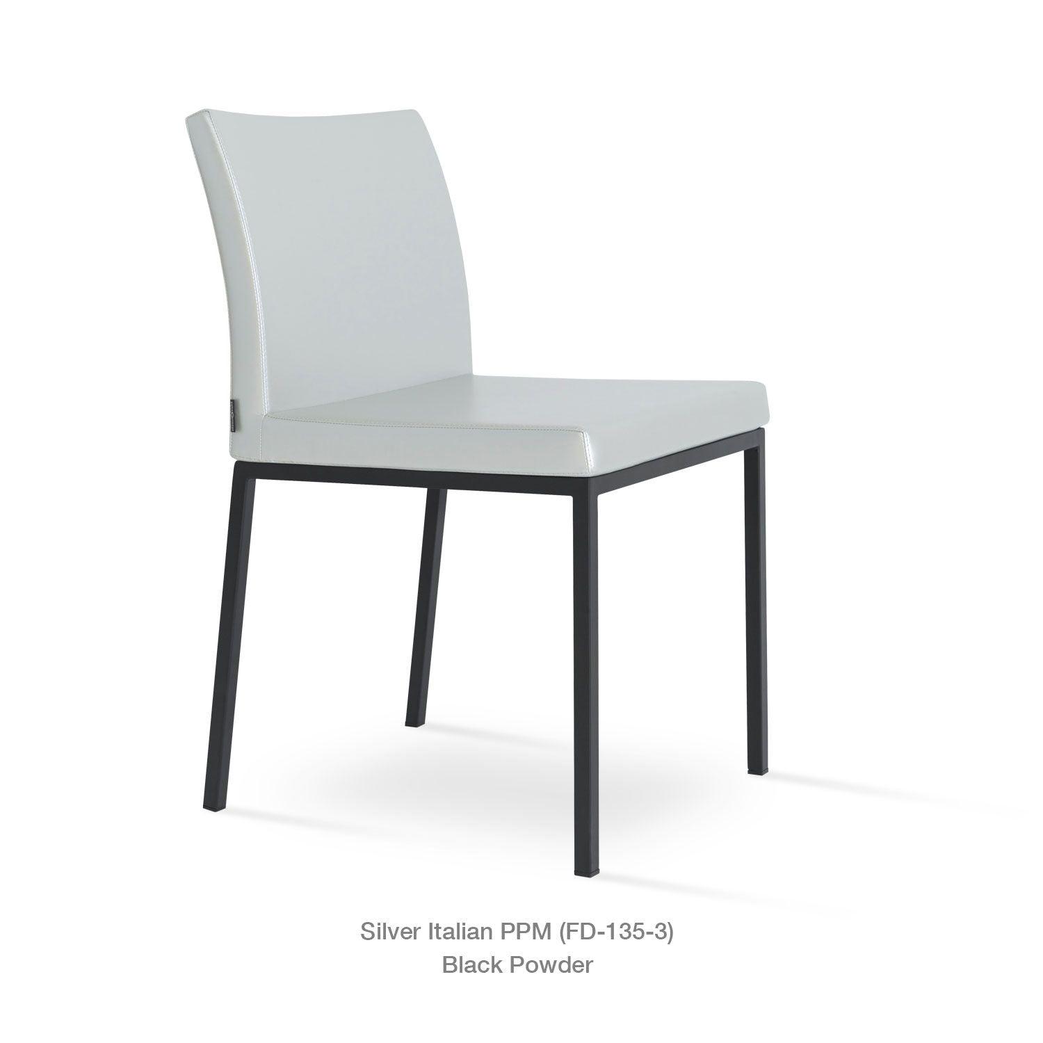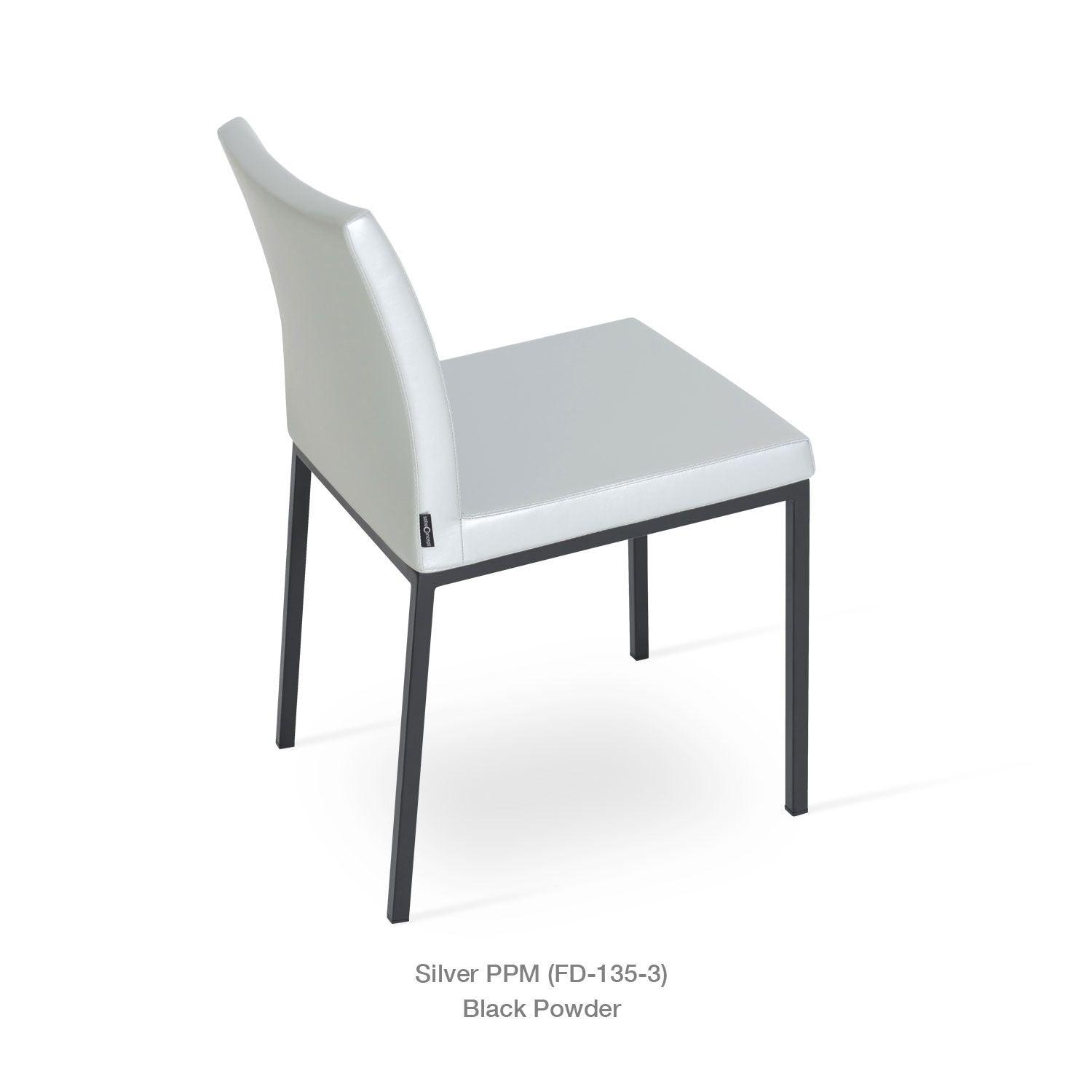 Aria Metal is a contemporary dining chair with a comfortable upholstered seat and backrest on plastic-tipped steel legs. The steel base can be finished in chrome, stainless steel, and black powder coating. Aria Metal is also available with an adjuster base in chrome and brass gold. The seat has a steel structure with an “S” shape springs for extra flexibility and strength. This steel frame is molded by injecting polyurethane foam. The seat is upholstered with removable velcro-enclosed fabric, leatherette, PPM, leather, or wool fabric slipcover. Other colors are available as a special order with a minimum quantity required. The chair is suitable for both residential and commercial use.