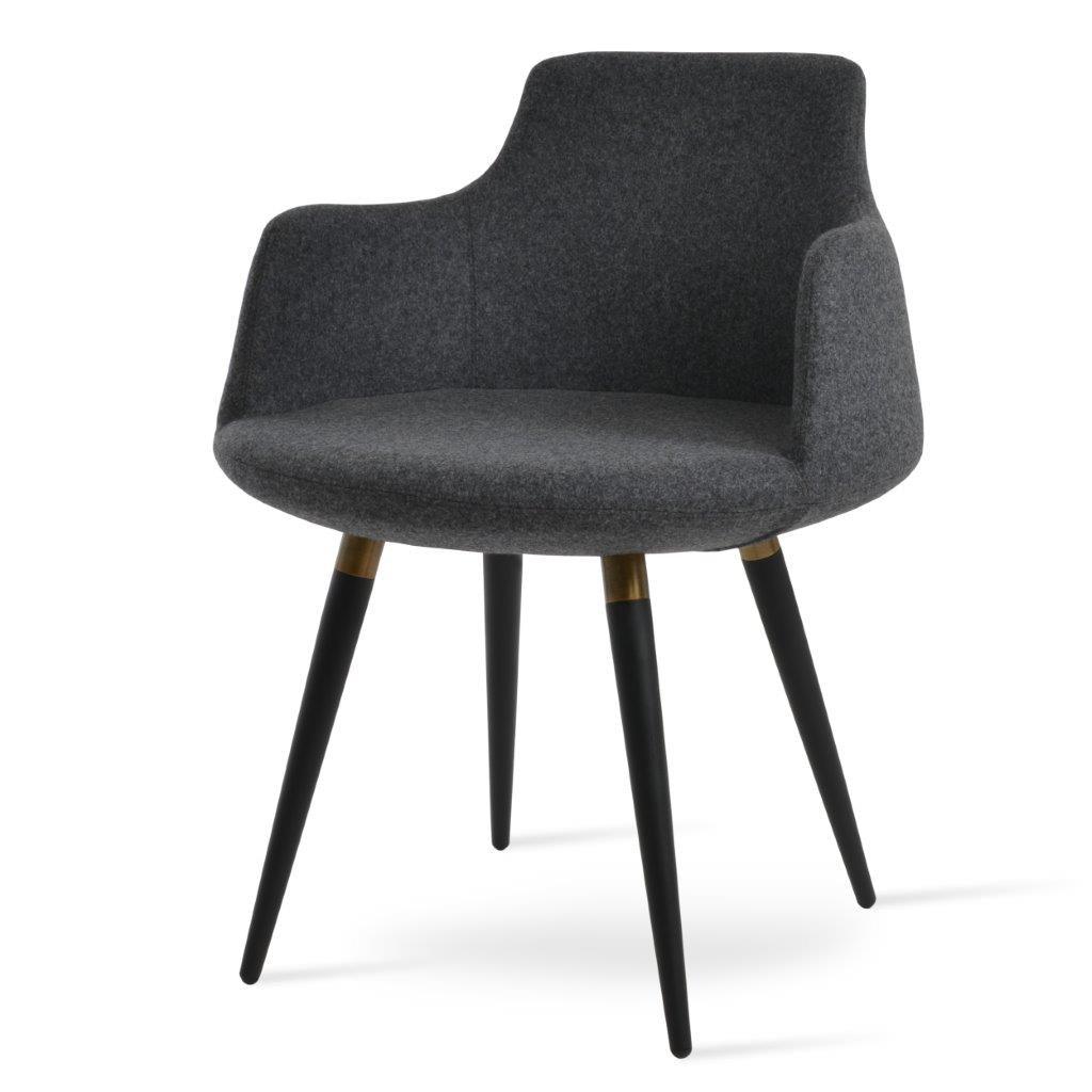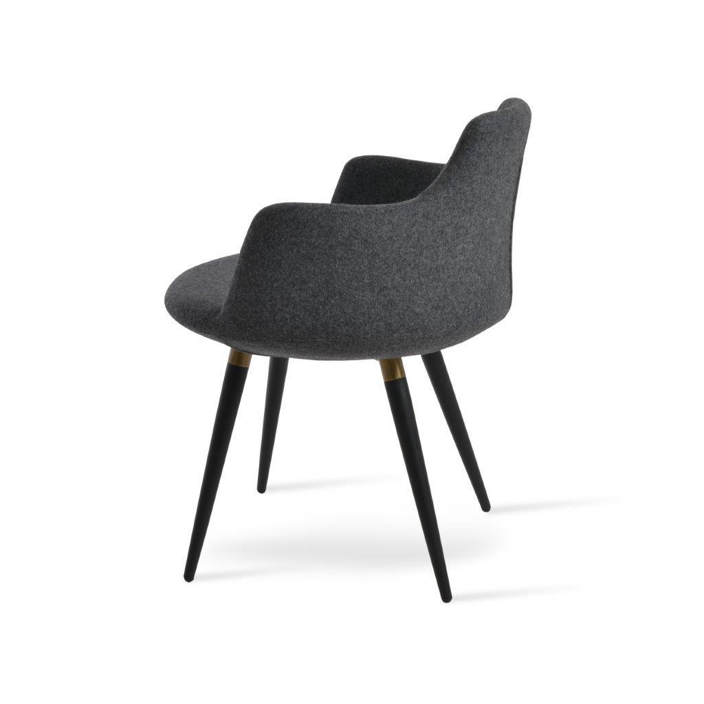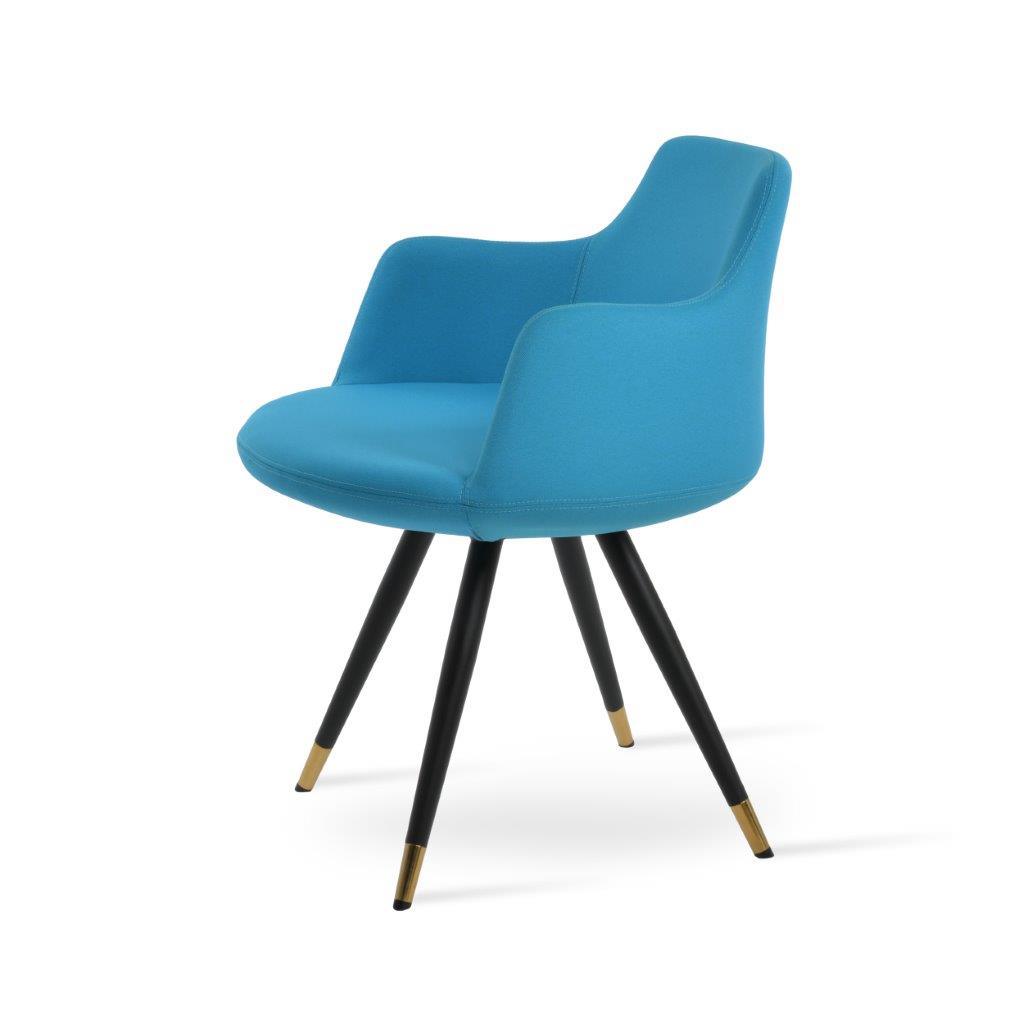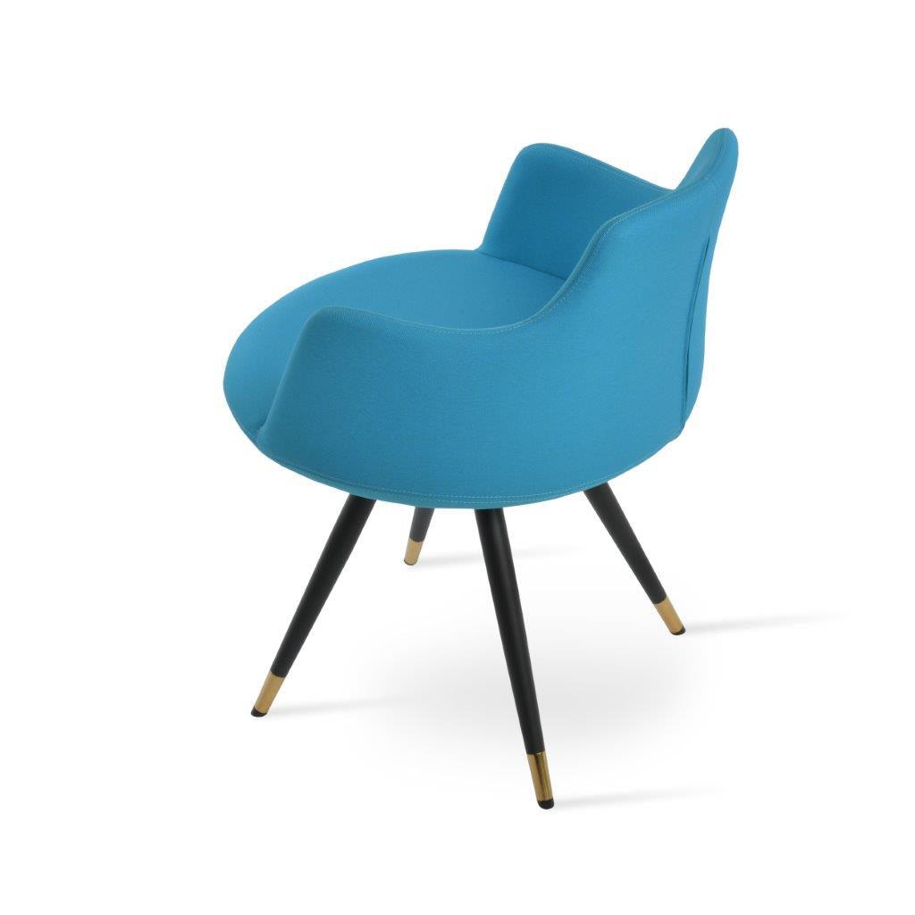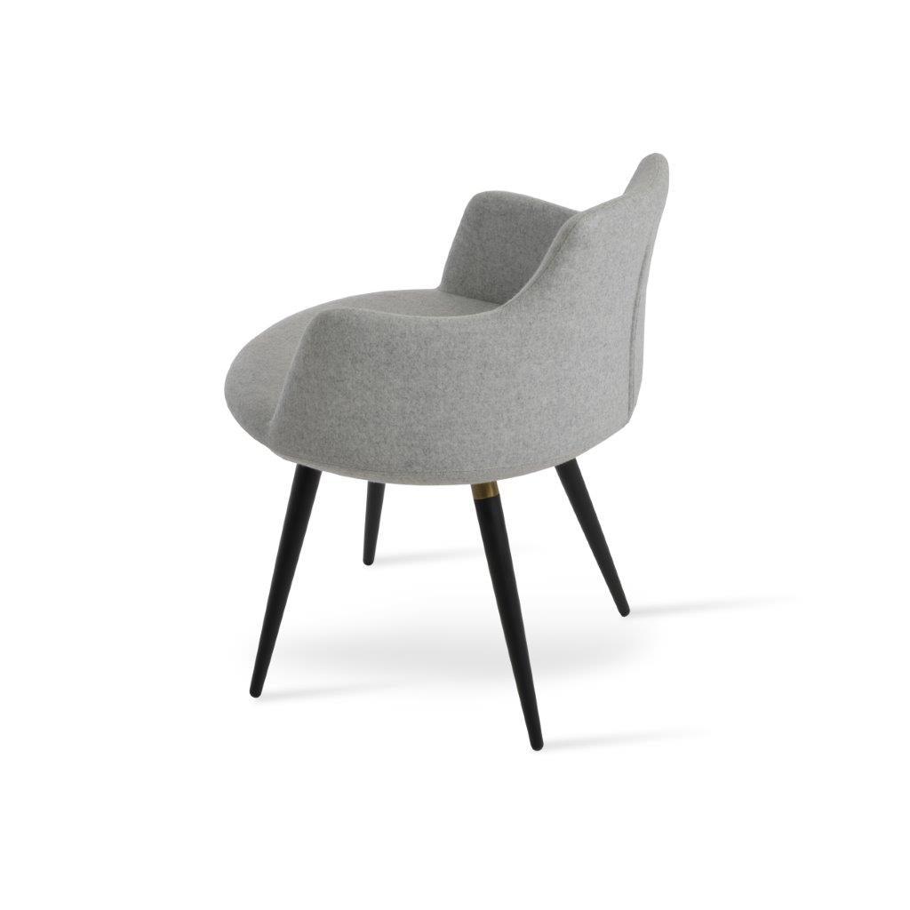 The Dervish Star Chair is a modern dining chair with a comfortable upholstered seat and backrest, available with black powder, natural veneer steel, or stainless steel base options. The chair seat has a steel structure with 'S' shape springs, providing extra flexibility and strength. This steel frame is molded by injecting polyurethane foam, and the Dervish seat is upholstered with a removable zipper slip cover that can be changed with professional help. Camira Fabrics are guaranteed for five years from the invoice date against wear through and loss of colorfastness. The Dervish Star Chair is suitable for residential and commercial use, and the minimum order quantity for 'Special Order' colors is 8.