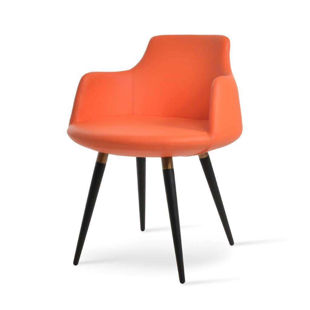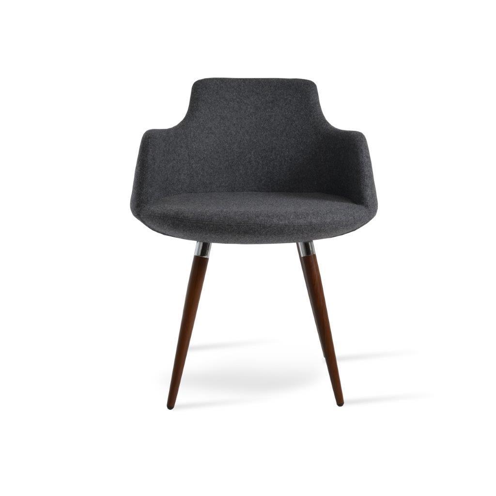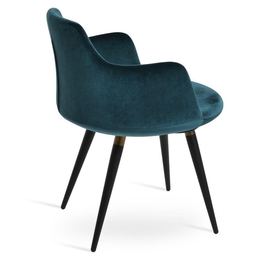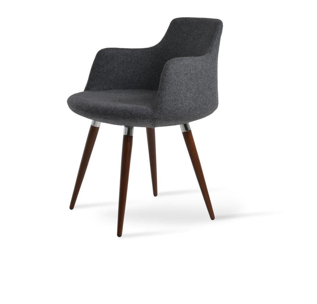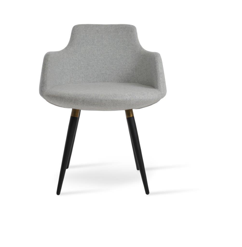 The Dervish Star Chair is a modern dining chair with a comfortable upholstered seat and backrest, available with black powder, natural veneer steel, or stainless steel base options. The chair seat has a steel structure with 'S' shape springs, providing extra flexibility and strength. This steel frame is molded by injecting polyurethane foam, and the Dervish seat is upholstered with a removable zipper slip cover that can be changed with professional help. Camira Fabrics are guaranteed for five years from the invoice date against wear through and loss of colorfastness. The Dervish Star Chair is suitable for residential and commercial use, and the minimum order quantity for 'Special Order' colors is 8.
