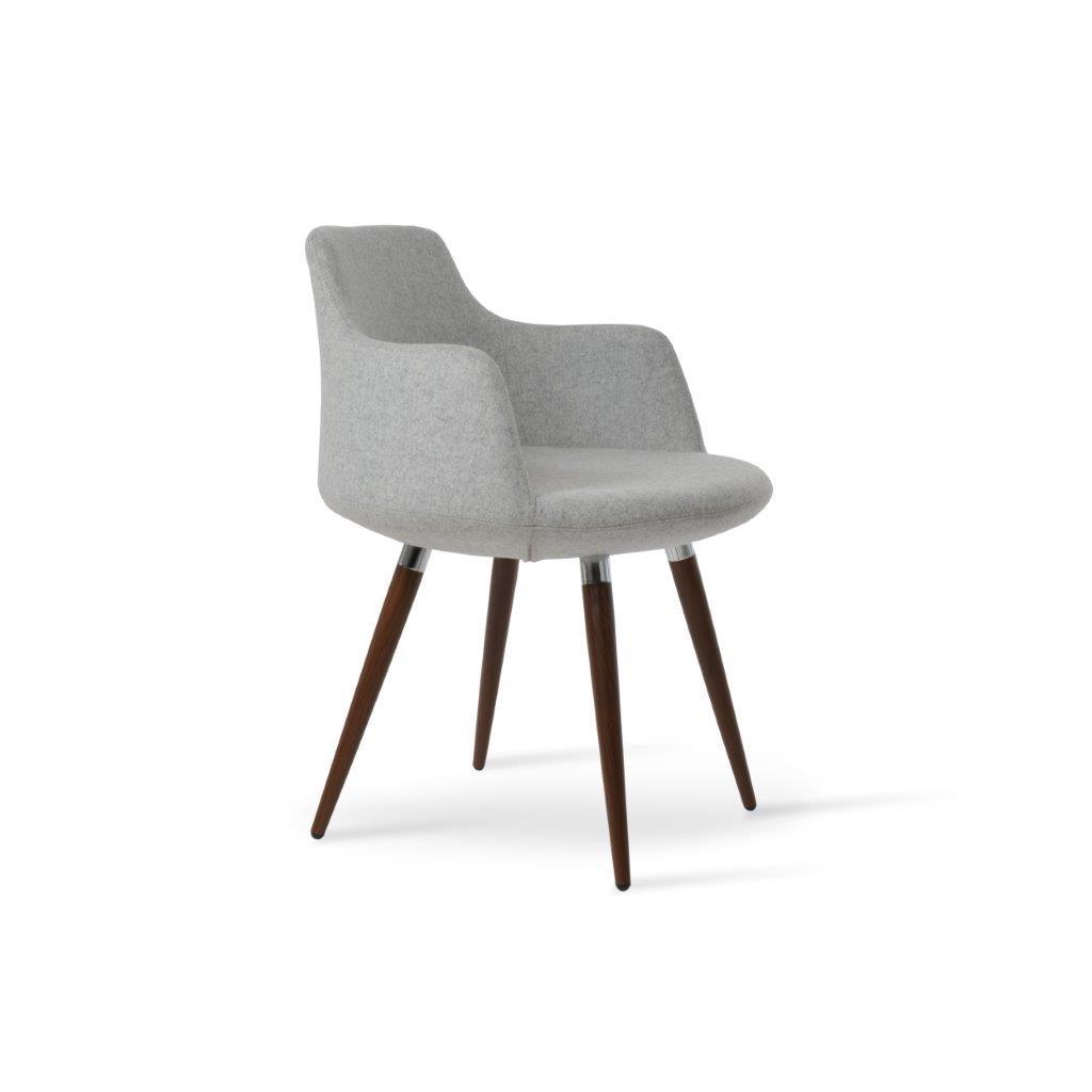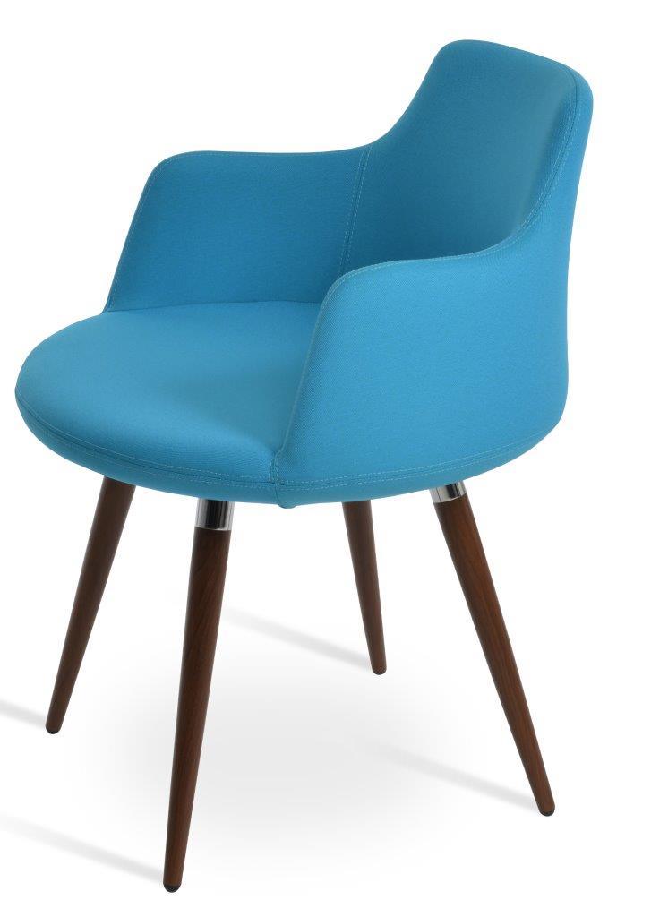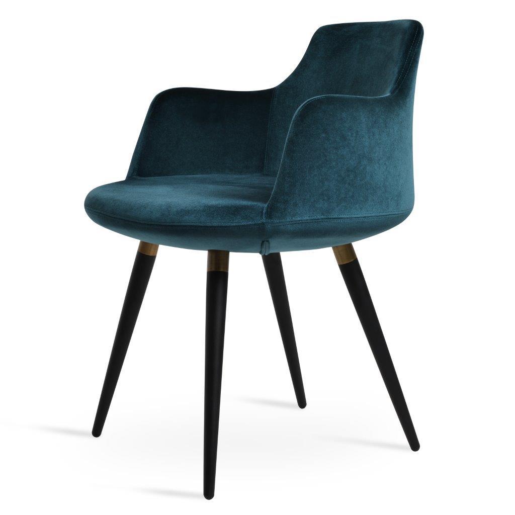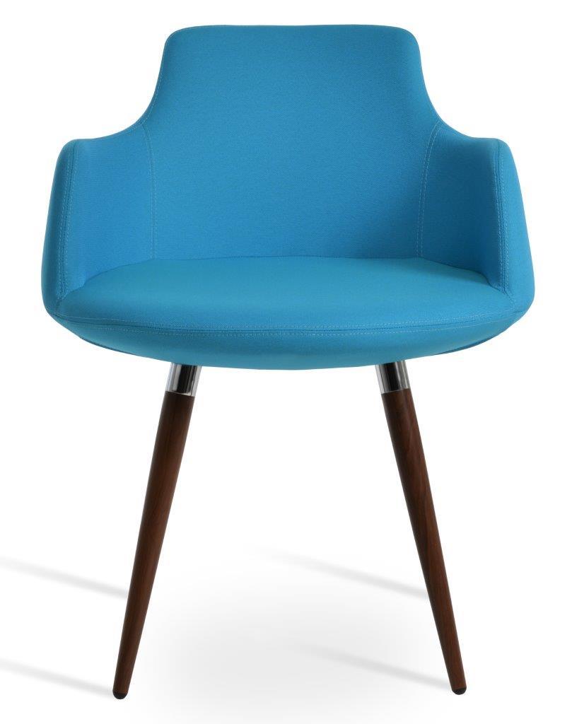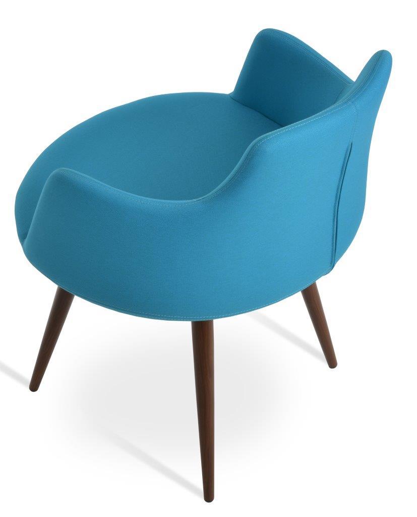 The Dervish Star Chair is a modern dining chair with a comfortable upholstered seat and backrest, available with black powder, natural veneer steel, or stainless steel base options. The chair seat has a steel structure with 'S' shape springs, providing extra flexibility and strength. This steel frame is molded by injecting polyurethane foam, and the Dervish seat is upholstered with a removable zipper slip cover that can be changed with professional help. Camira Fabrics are guaranteed for five years from the invoice date against wear through and loss of colorfastness. The Dervish Star Chair is suitable for residential and commercial use, and the minimum order quantity for 'Special Order' colors is 8.