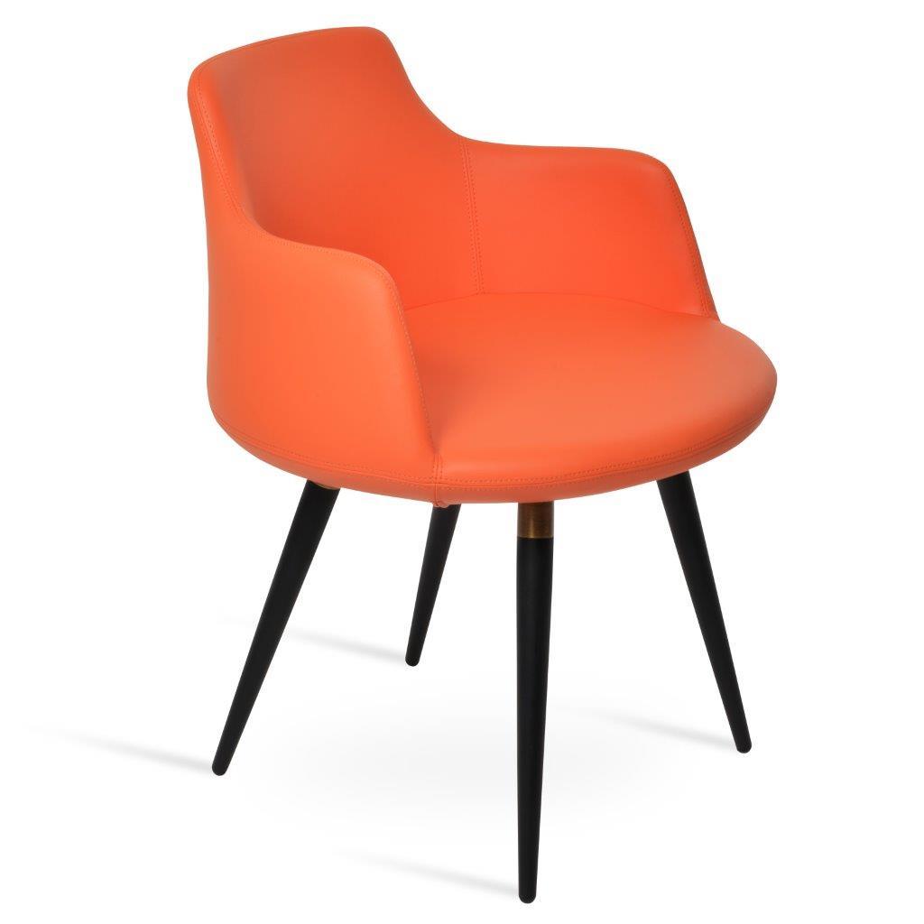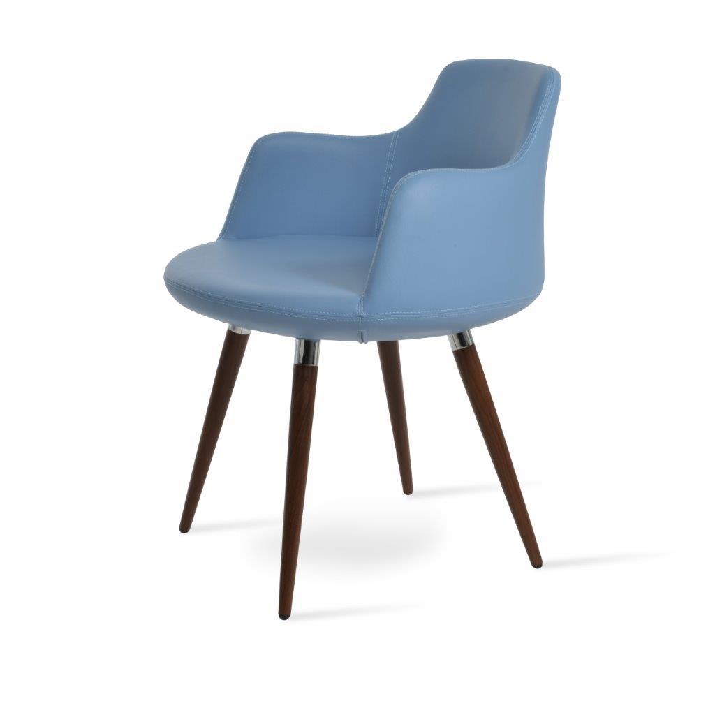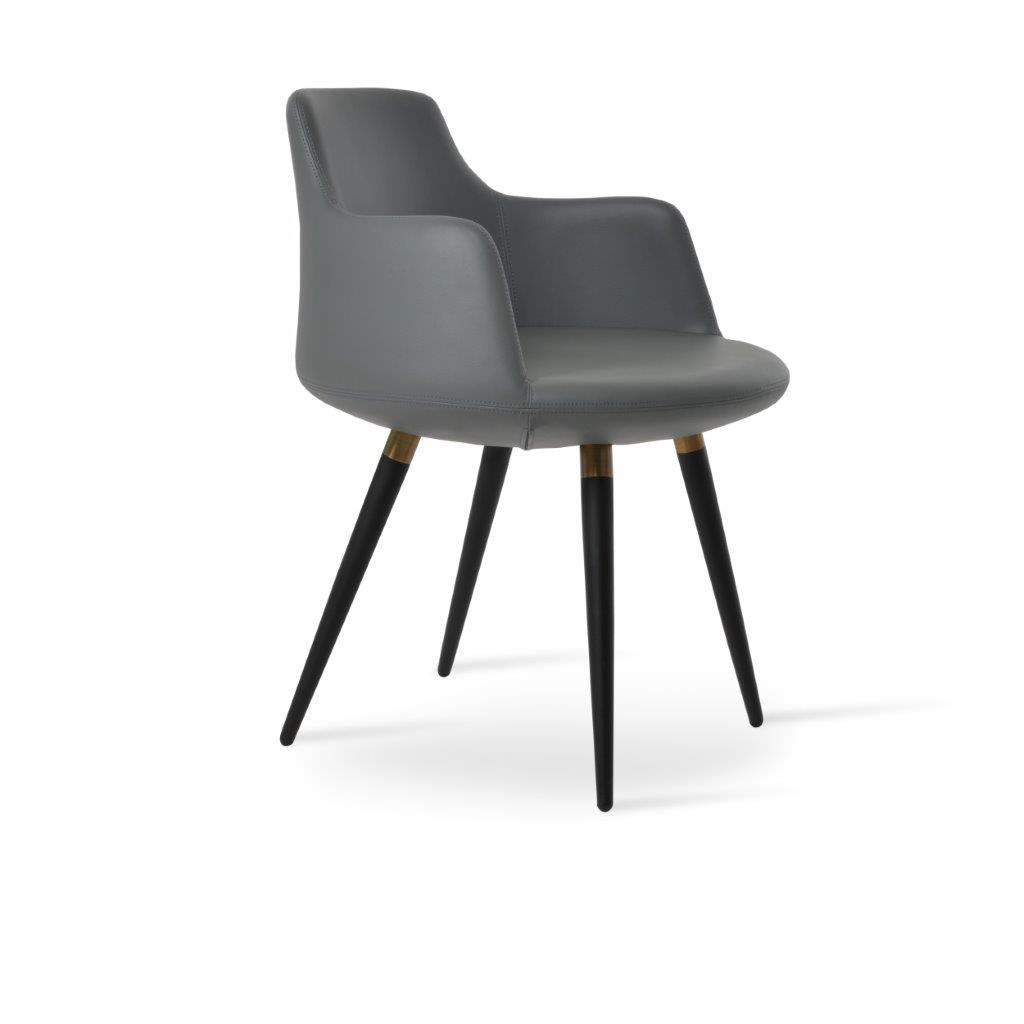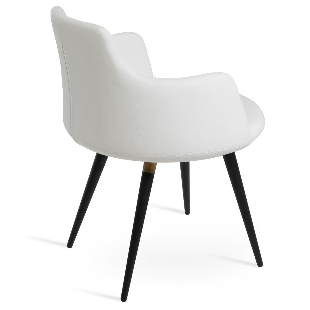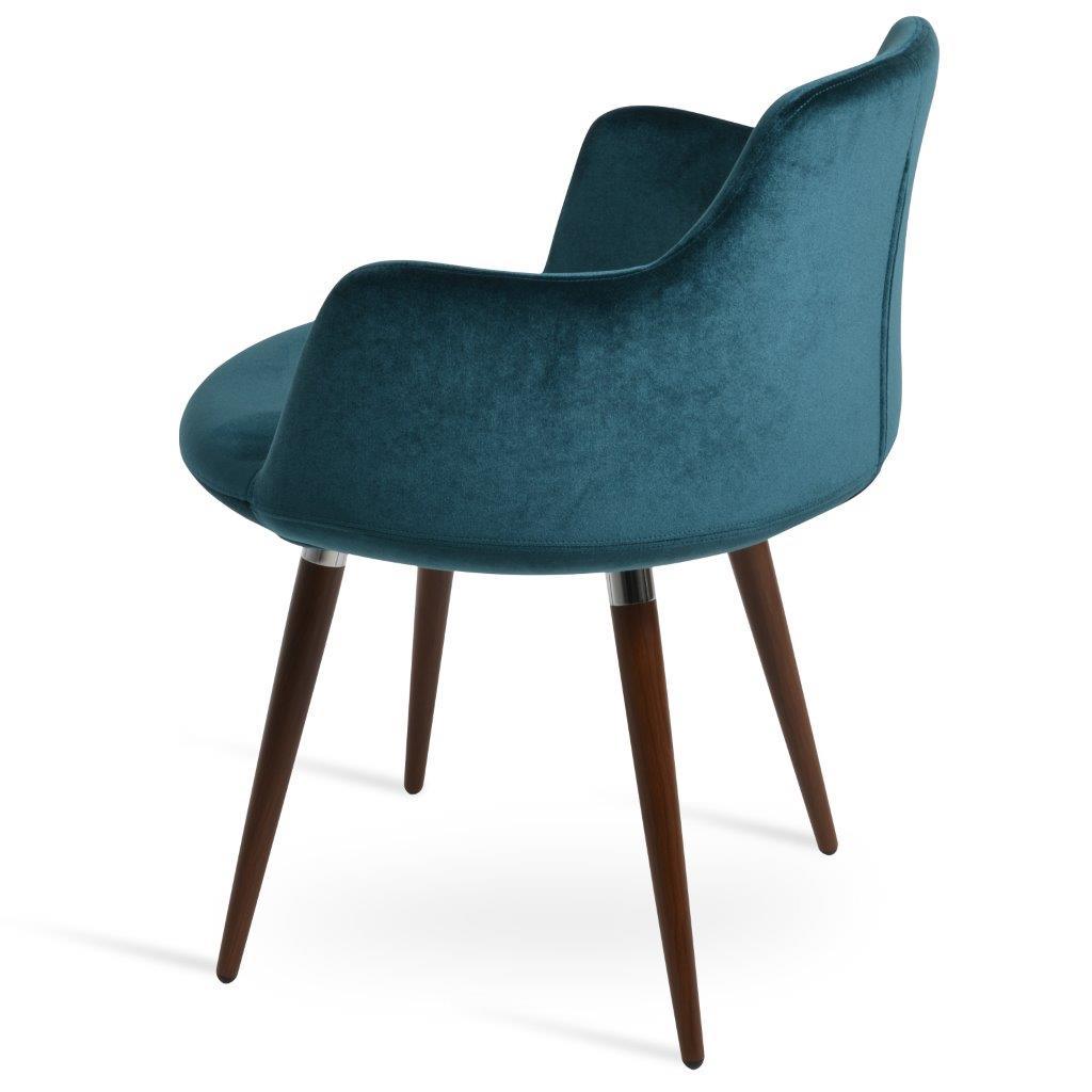 The Dervish Star Chair is a modern dining chair with a comfortable upholstered seat and backrest, available with black powder, natural veneer steel, or stainless steel base options. The chair seat has a steel structure with 'S' shape springs, providing extra flexibility and strength. This steel frame is molded by injecting polyurethane foam, and the Dervish seat is upholstered with a removable zipper slip cover that can be changed with professional help. Camira Fabrics are guaranteed for five years from the invoice date against wear through and loss of colorfastness. The Dervish Star Chair is suitable for residential and commercial use, and the minimum order quantity for 'Special Order' colors is 8.