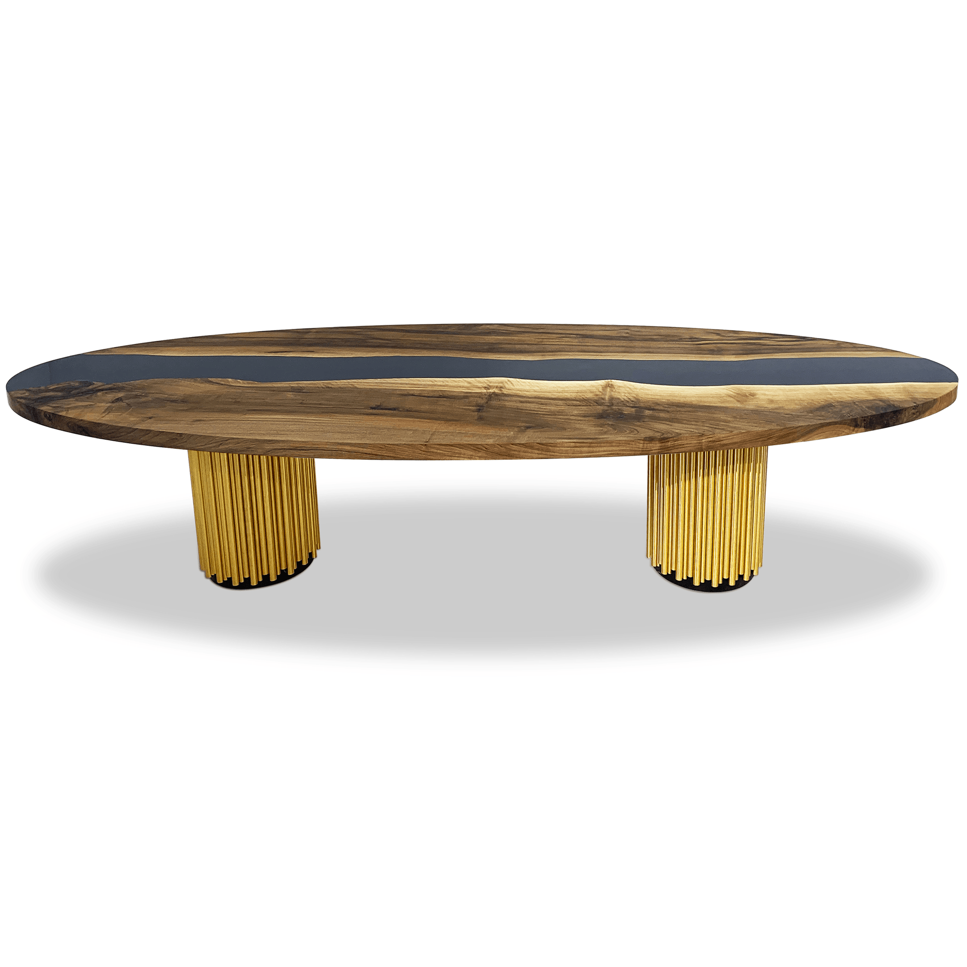 Evohe Blue River Walnut Wood Ellipse Dining Table