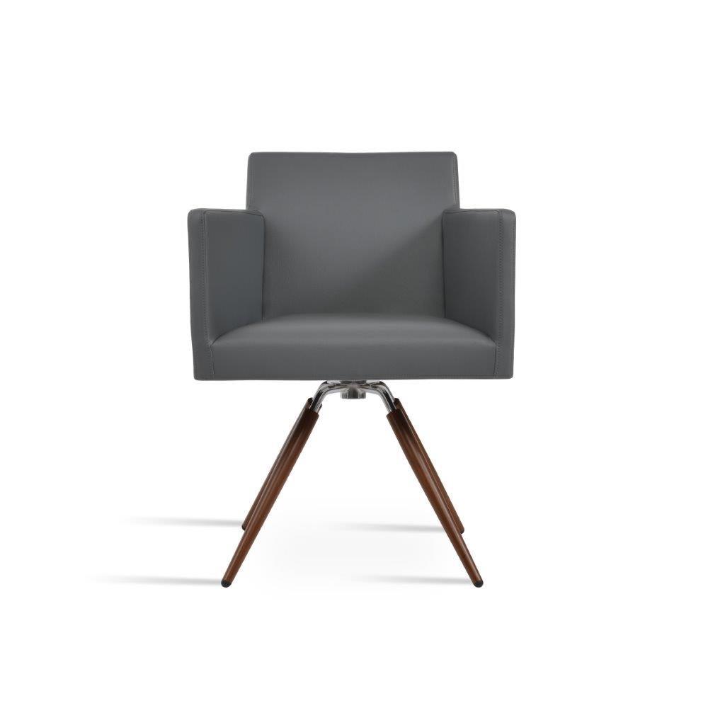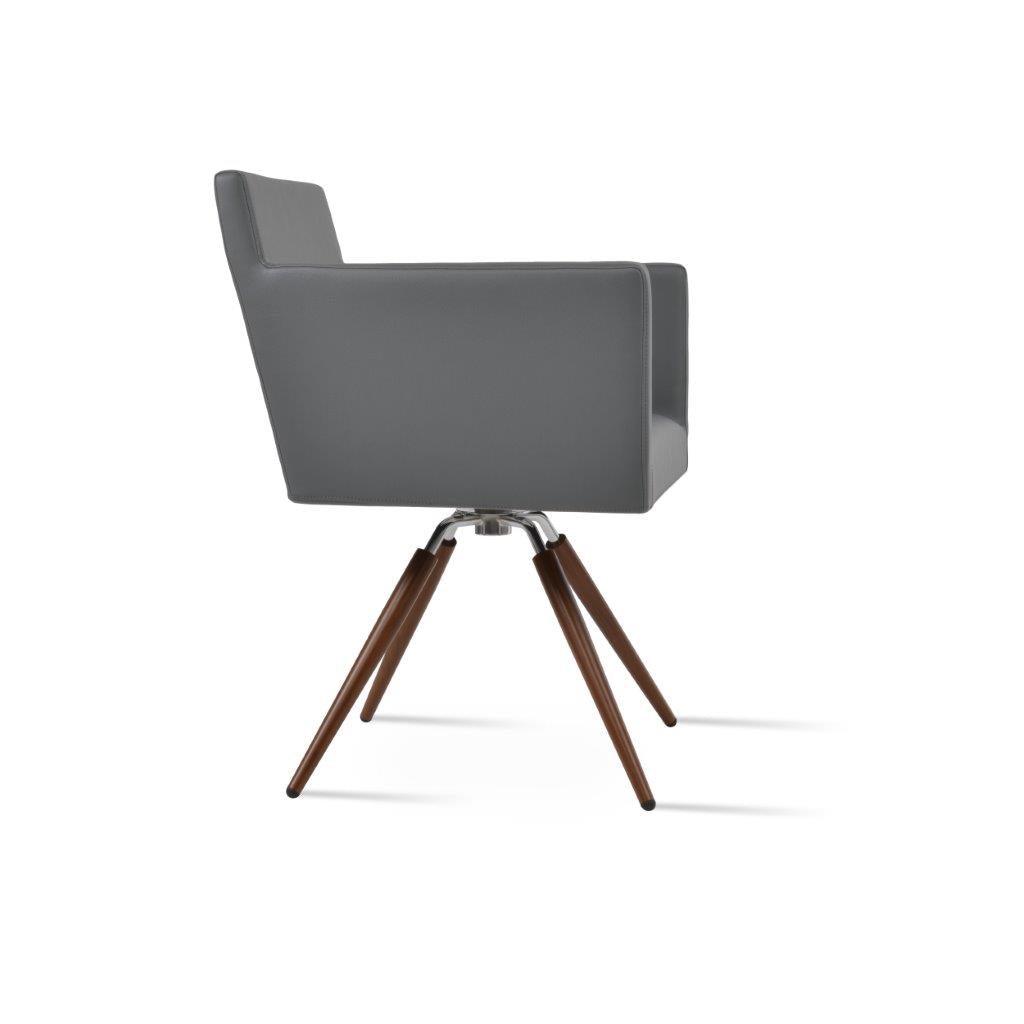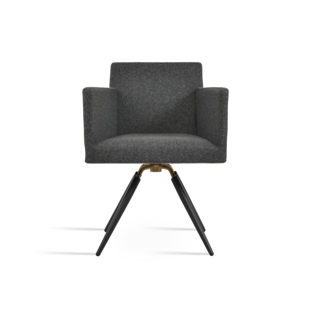 Harput Carrot Swivel Chair is an armchair with a comfortable upholstered seat and backrest on metal swivel legs. The seat has a steel structure with “S” shape springs for extra flexibility and strength. This steel frame is molded by injecting polyurethane foam. The Harput seat is upholstered with a removable velcro-enclosed leather, PPM, or wool fabric slip cover. Camira Fabrics are five years guaranteed from the date of invoice against wear through (the complete deterioration of the fabric's structure in a particular area) and loss of colorfastness (the excessive loss of color due to exposure to light). The chair is suitable for both residential and commercial use. Tayfur Ozkaynak designs Harput Carrot Swivel.
