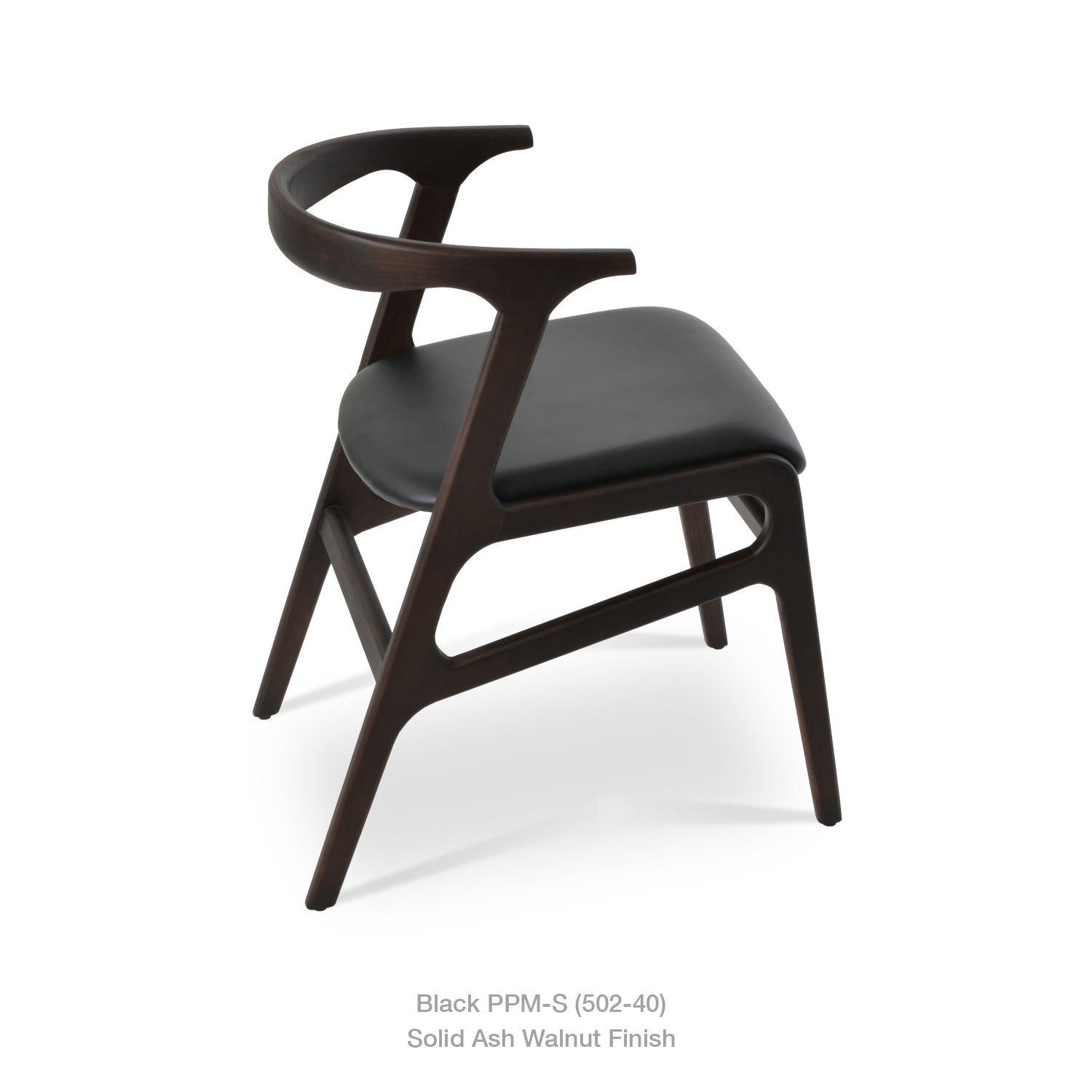 Morelato is a contemporary chair with an upholstered seat. The legs are finished in a solid beech walnut finish. The Industrial Modern team designs The Morelato Dining Chair, which is suitable for residential and commercial use.