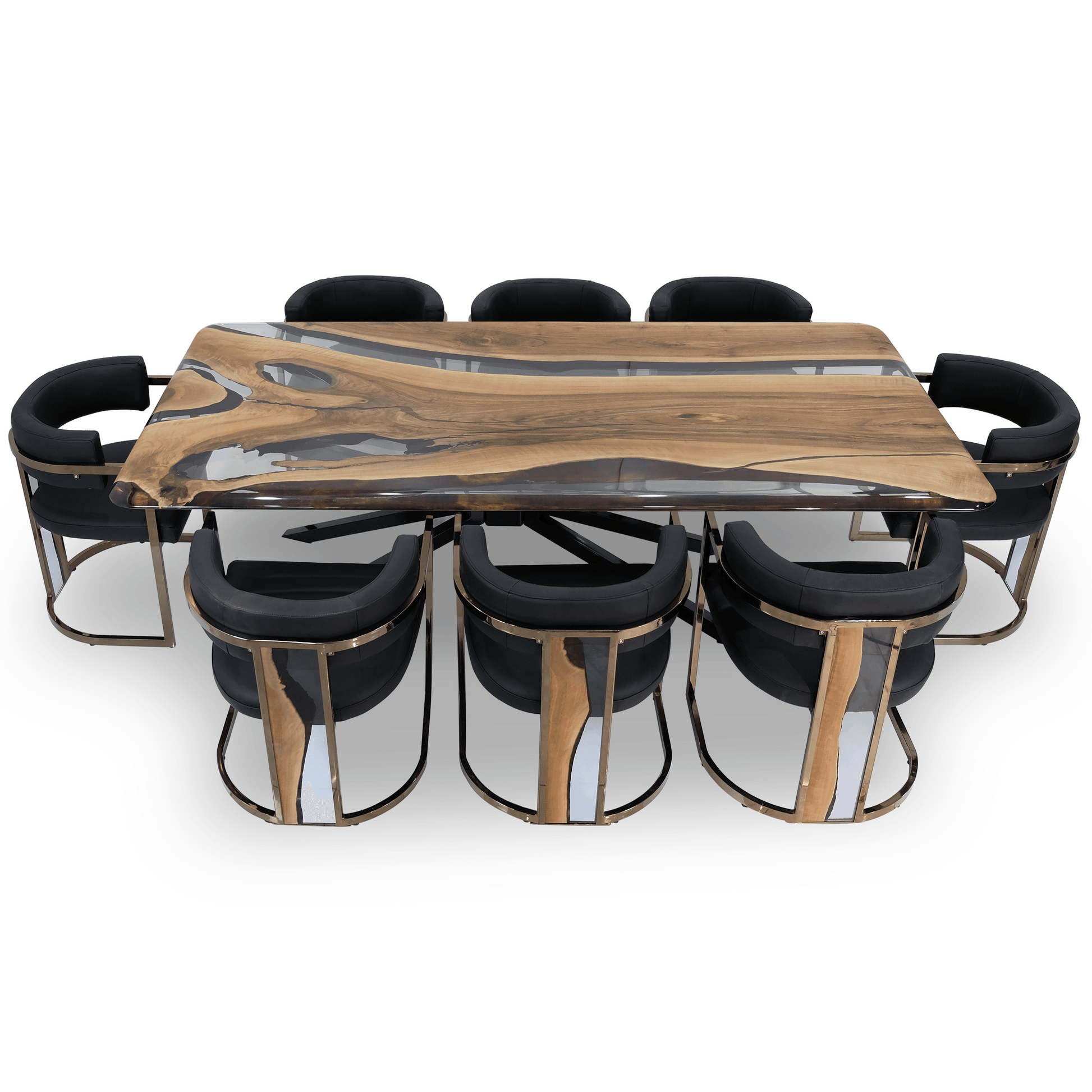 The Parthenope Walnut and Resin Dining Table is a stunning piece from the Arditi Collection. The combination of natural walnut wood and resin creates a unique and modern look that will impress. The table is stylish and functional, with ample space for dining and entertaining guests. The high-quality craftsmanship and attention to detail make this table a standout piece in any home. Whether you want to add a touch of sophistication to your dining room or impress your guests with a one-of-a-kind statement piece, the Parthenope Walnut and Resin Dining Table is perfect.