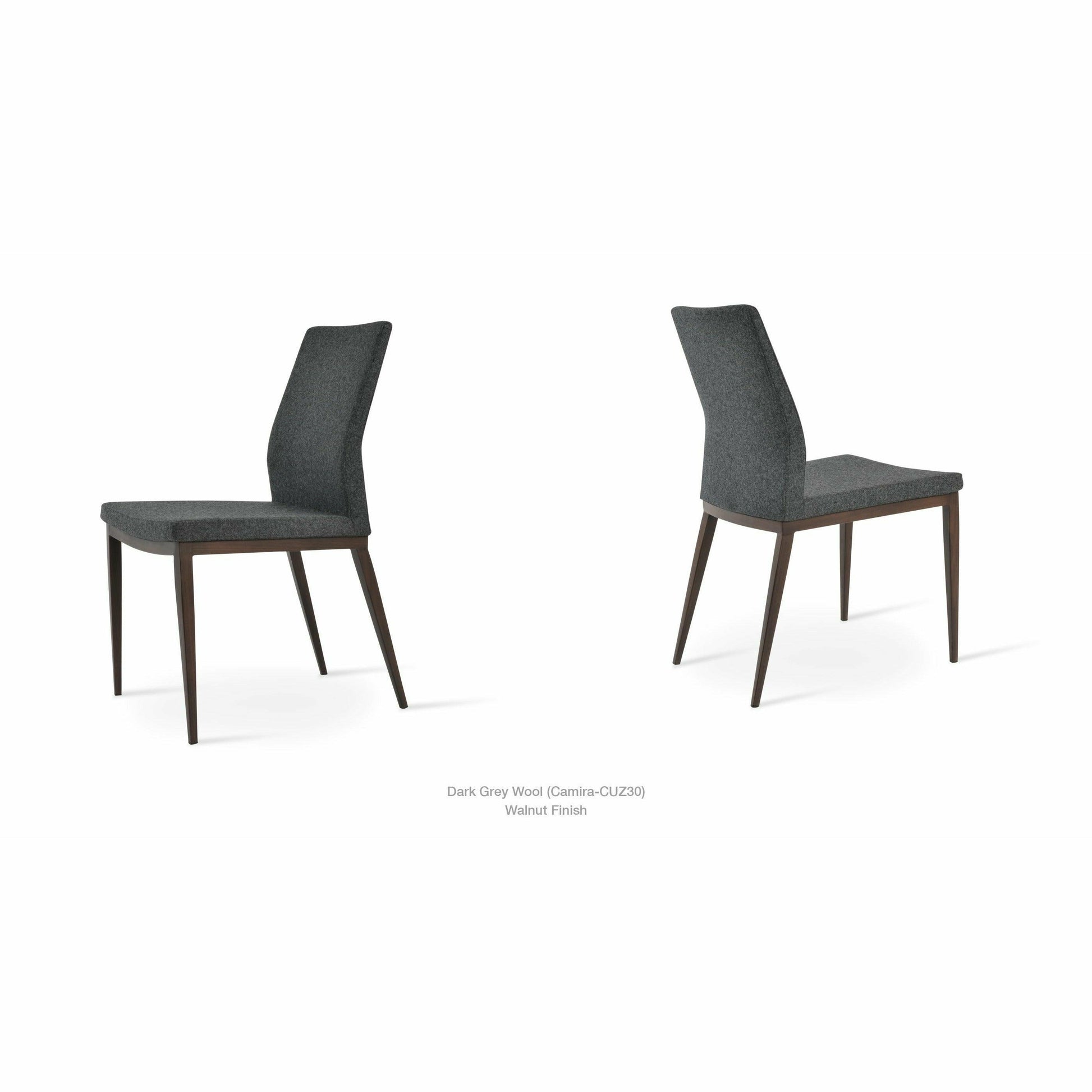 Pasha MW is an ergonomic dining chair with a comfortable upholstered seat and backrest on plastic-tipped chromed steel legs. The seat has a steel structure with “S” shape springs for extra flexibility and strength. This steel frame is molded by injecting polyurethane foam. The Pasha seat is upholstered with a removable velcro-enclosed leather, PPM, or wool fabric slipcover. The chair is suitable for both residential and commercial use.