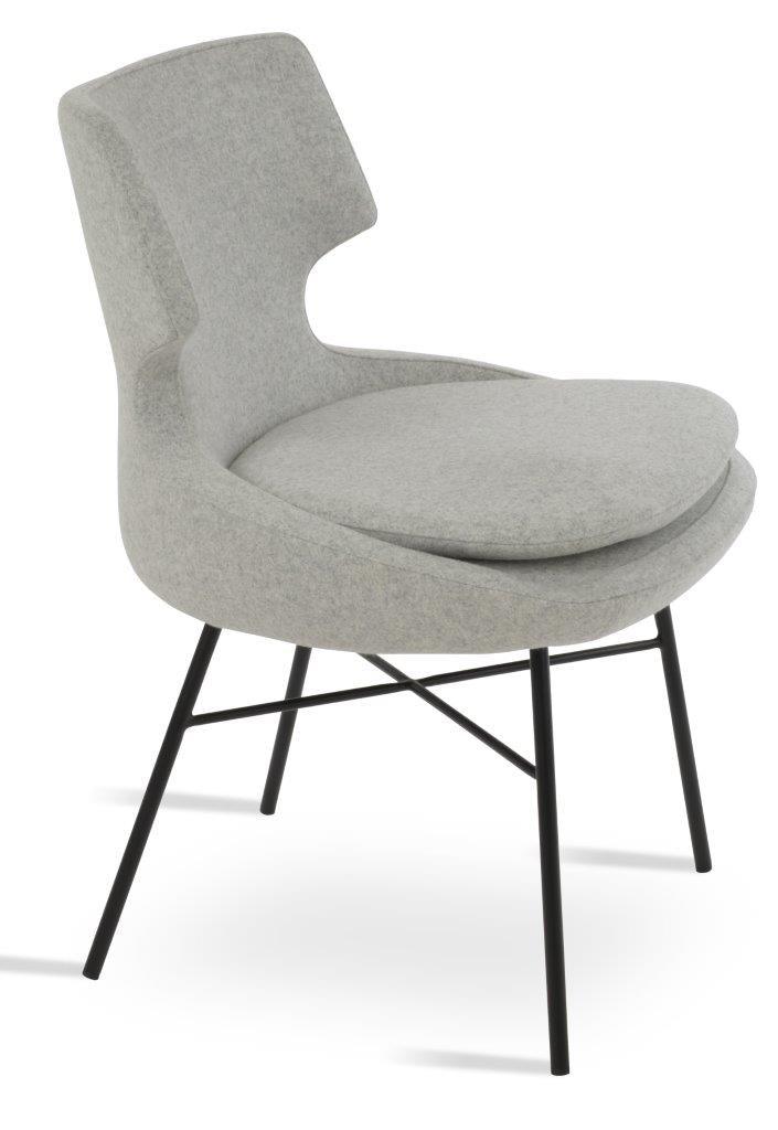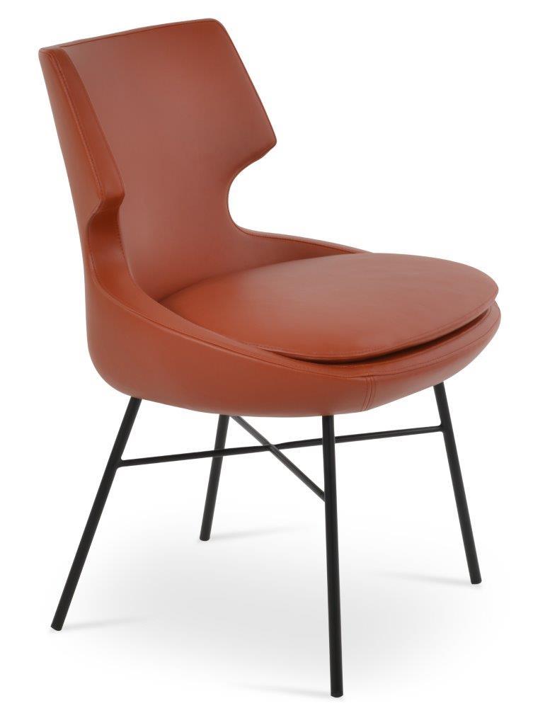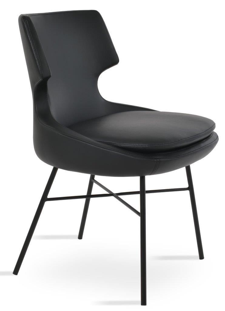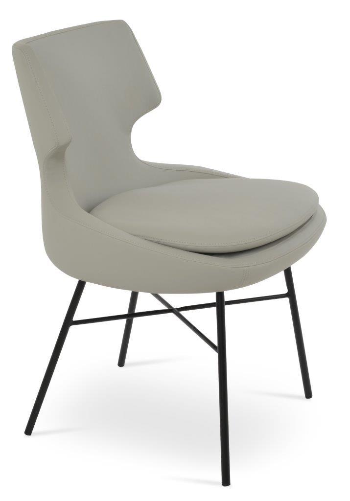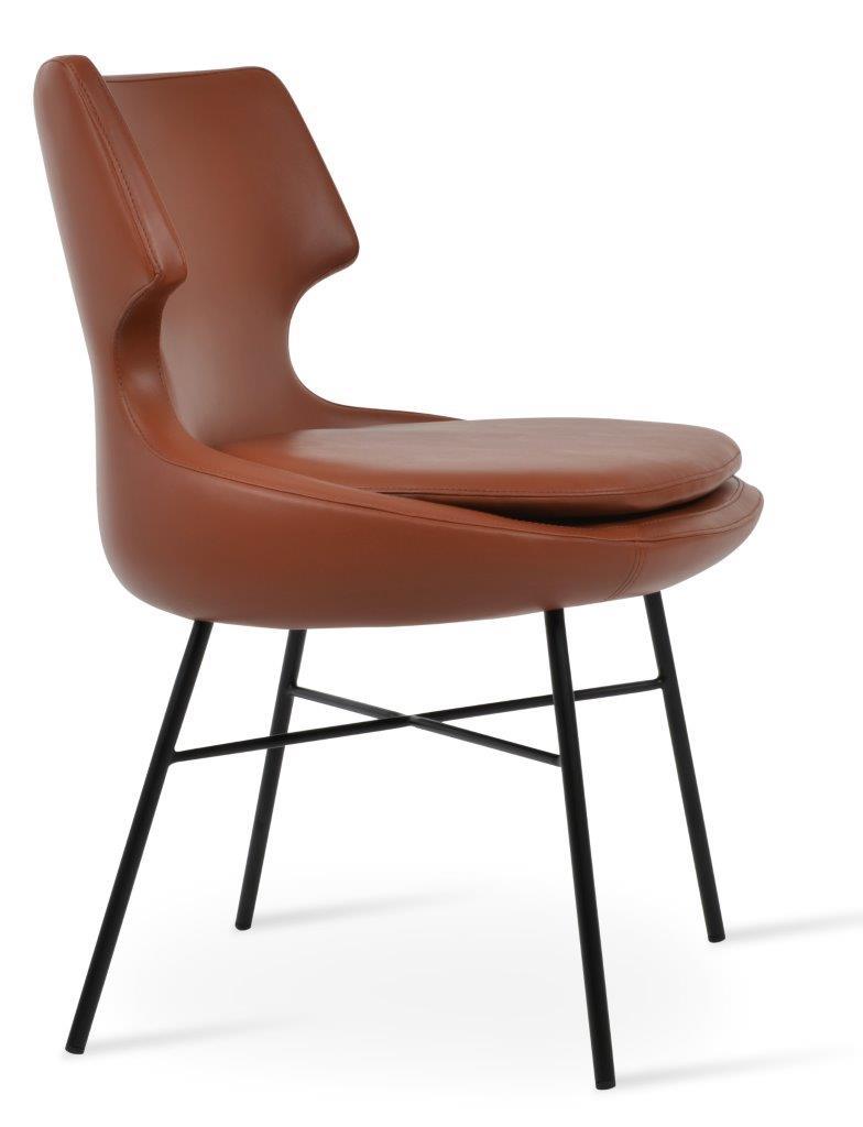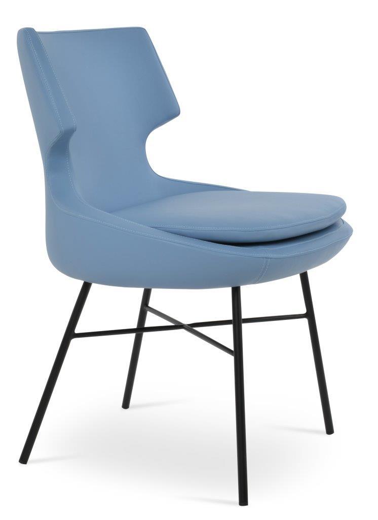 Patara Cross is a distinctive dining chair with a comfortable upholstered seat and back rest on chromed steel cross legs. Its padded removable seat cushion provides extra comfort to the user. The center has a steel structure with “S” shape springs for additional flexibility and strength. This steel frame is molded by injecting polyurethane foam. The Patara seat is upholstered with removable zipper-enclosed leather, leatherette, or wool fabric slip cover. The chair is suitable for both residential and commercial use.