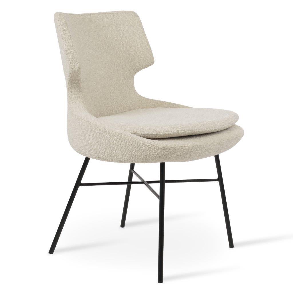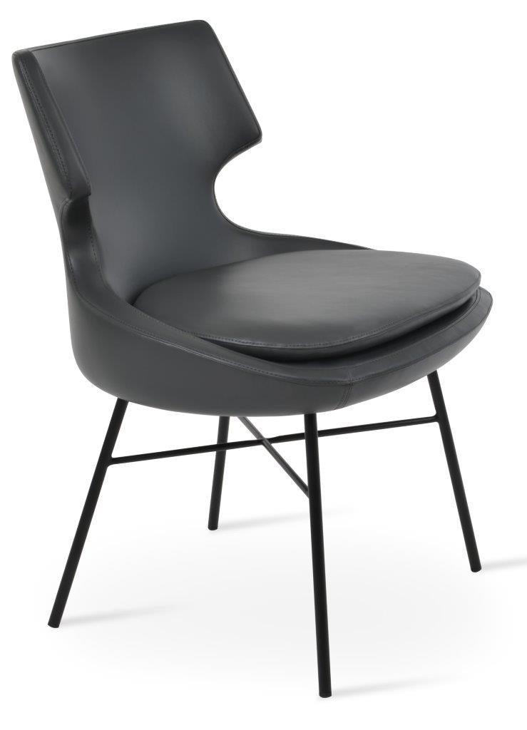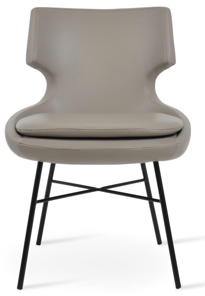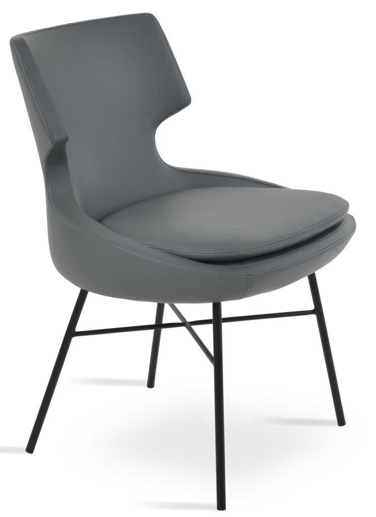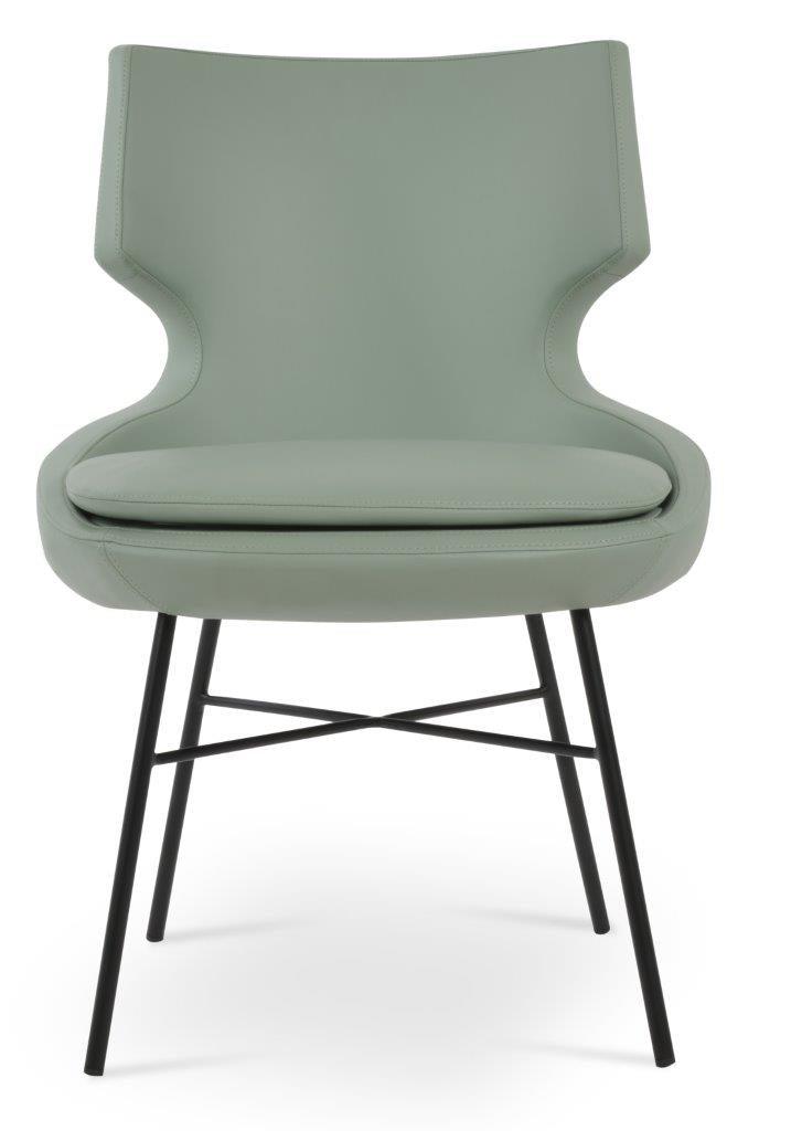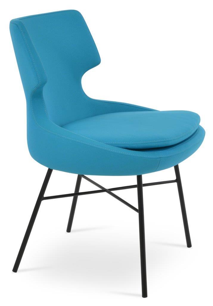Patara Cross is a distinctive dining chair with a comfortable upholstered seat and back rest on chromed steel cross legs. Its padded removable seat cushion provides extra comfort to the user. The center has a steel structure with “S” shape springs for additional flexibility and strength. This steel frame is molded by injecting polyurethane foam. The Patara seat is upholstered with removable zipper-enclosed leather, leatherette, or wool fabric slip cover. The chair is suitable for both residential and commercial use.