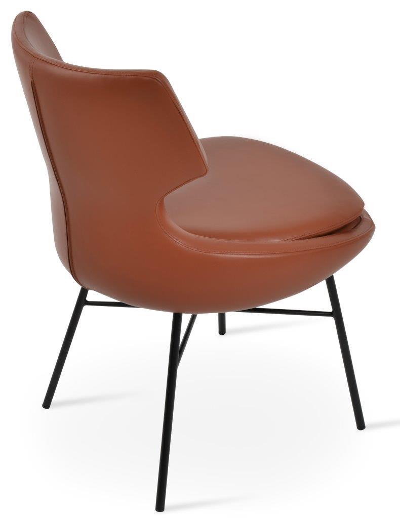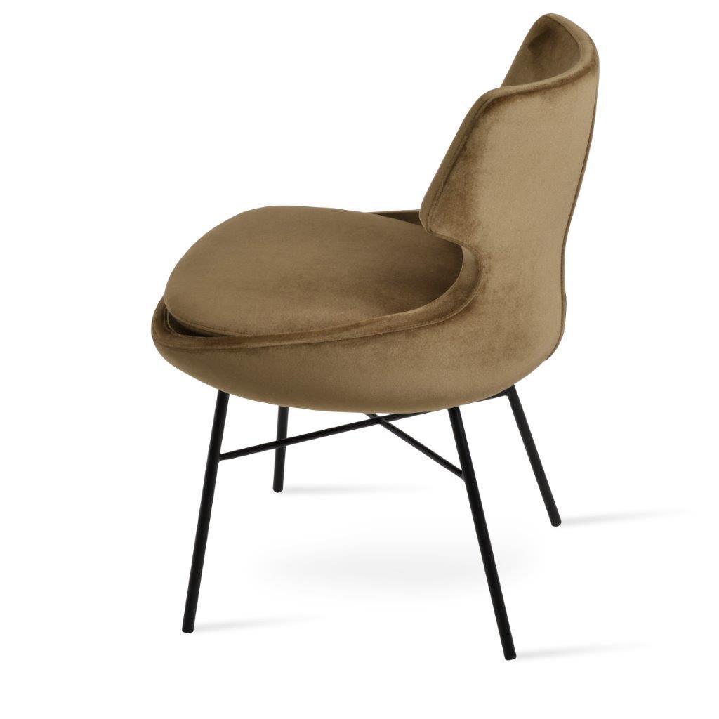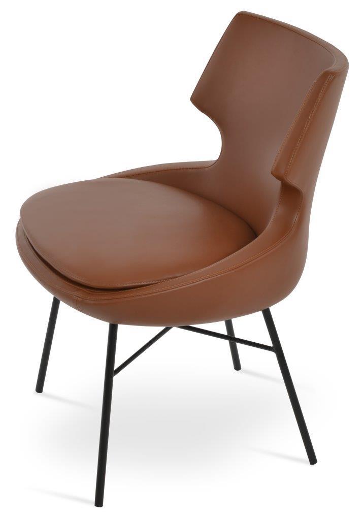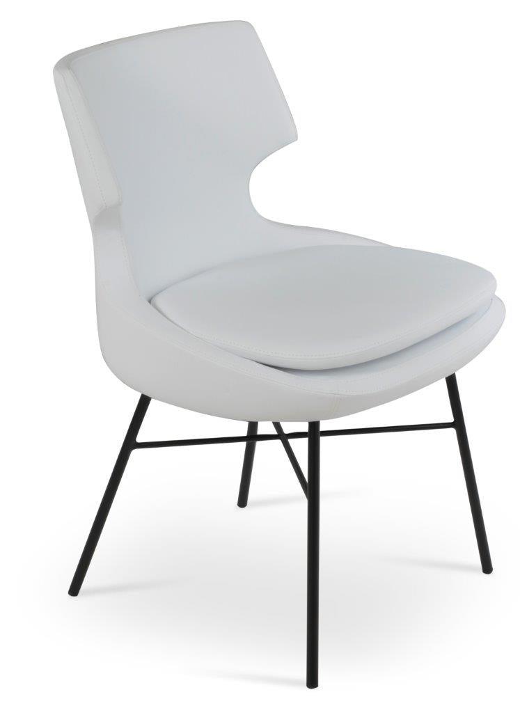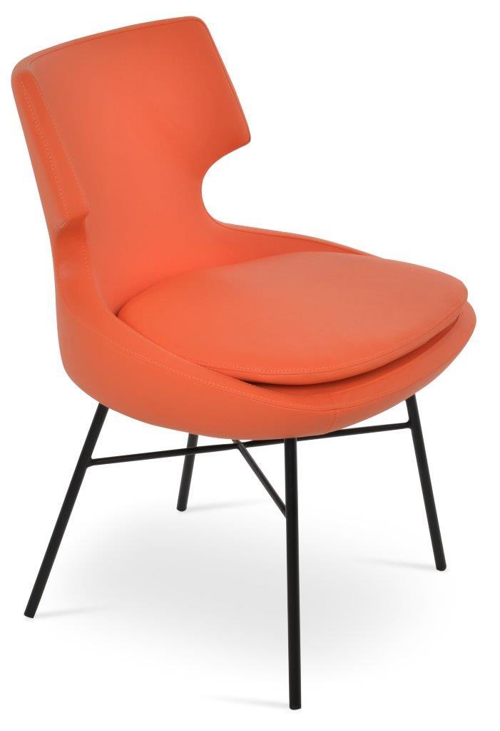 Patara Cross is a distinctive dining chair with a comfortable upholstered seat and back rest on chromed steel cross legs. Its padded removable seat cushion provides extra comfort to the user. The center has a steel structure with “S” shape springs for additional flexibility and strength. This steel frame is molded by injecting polyurethane foam. The Patara seat is upholstered with removable zipper-enclosed leather, leatherette, or wool fabric slip cover. The chair is suitable for both residential and commercial use.