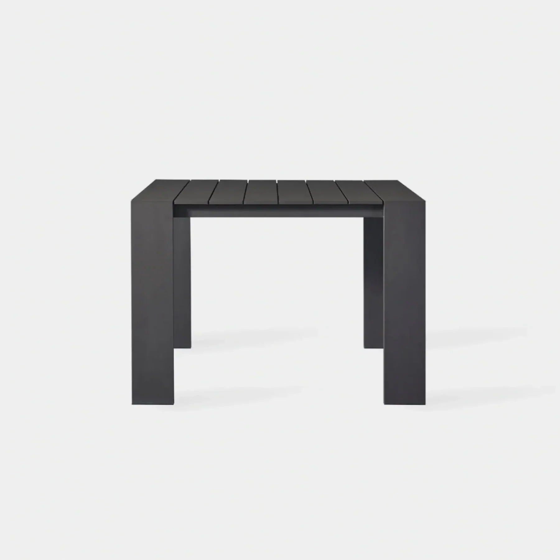 Our Hayman collection is a statement of simplicity with clean angles and modern styling. Defined by wide legs, our Hayman Dining Table 1000 was designed as the perfect outdoor table for four — enjoy a simple square surface in slatted extruded aluminum that’s streamlined yet functional. An indoor aesthetic meets outdoor performance with this geometric piece made for a variety of spaces, especially smaller ones.