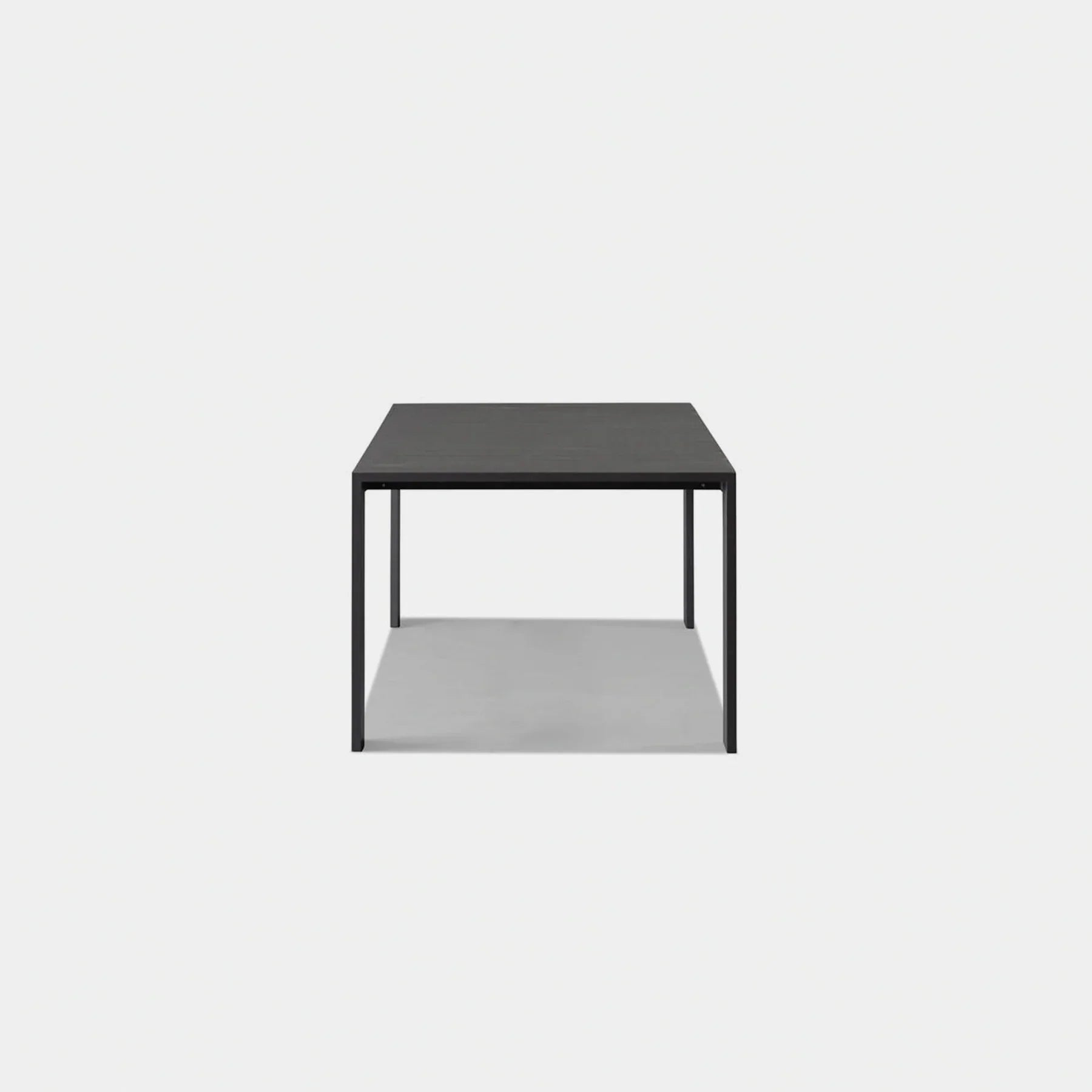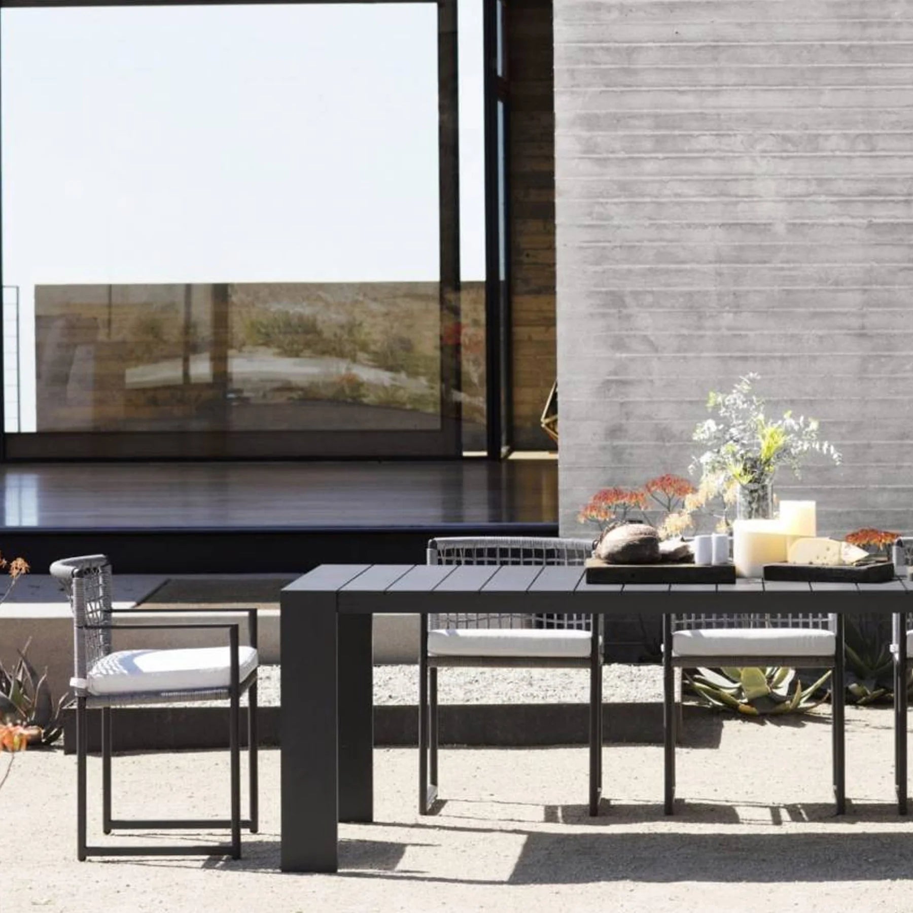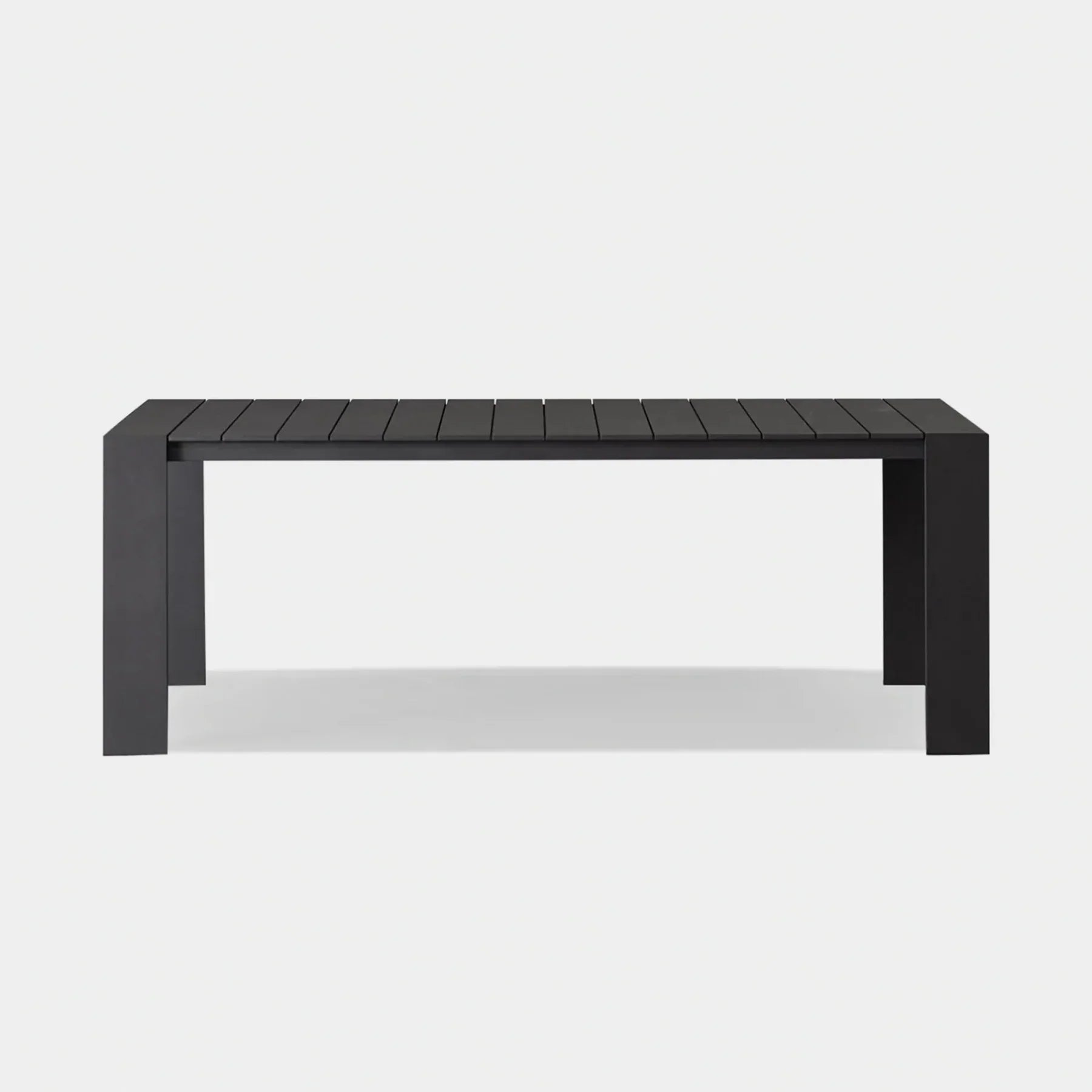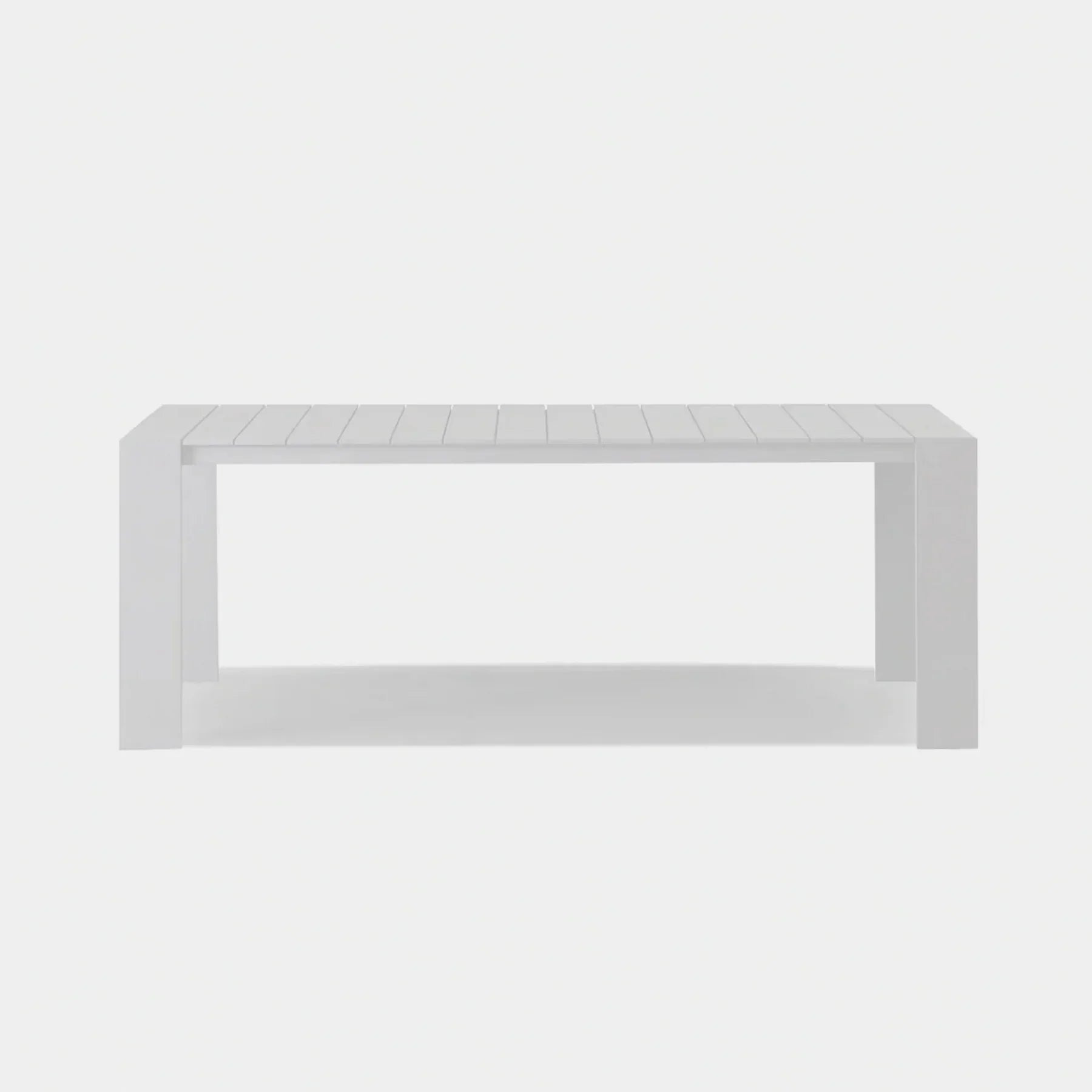 Our Hayman collection is a statement of simplicity with clean angles and modern styling. Defined by wide legs, our Hayman Dining Table 2600 was designed as the perfect outdoor table for up to ten — enjoy our standard large rectangular surface in slatted extruded aluminum that’s streamlined yet functional. An indoor aesthetic meets outdoor performance with this geometric piece for various spaces.