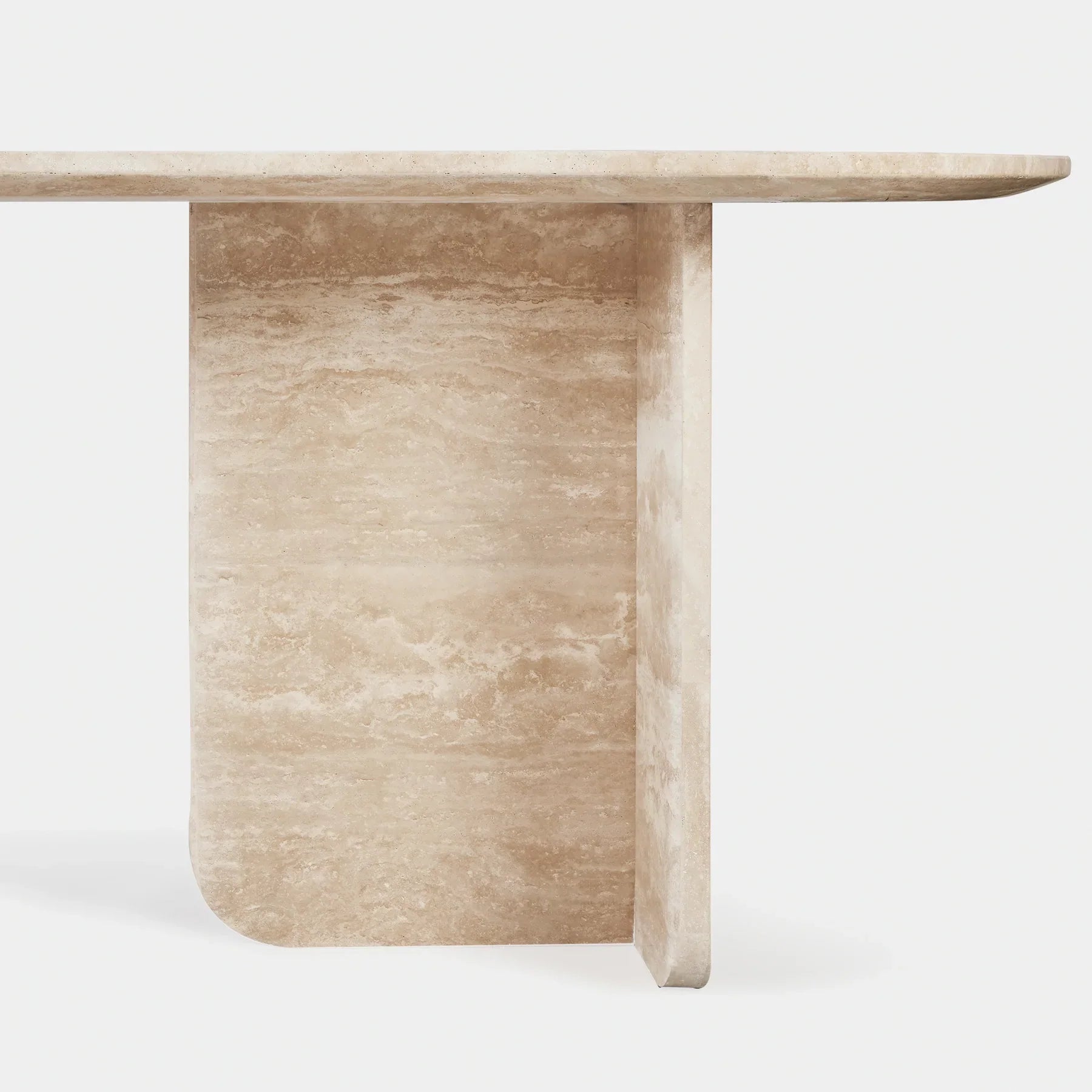 Designed by Marcel Wanders Studio. Featuring a signature radial rope pattern that creates a sophisticated rhythm, our Maui collection is a nomadic luxury. Crafted from hand-selected slabs of natural travertine, the Maui 102” Dining Table is the perfect outdoor dining table for up to ten guests — featuring a long oval top that echoes the collection’s curves, supported by shaped legs with softened edges that intersect to create a bold geometry. The true highlight of this table is the stone's natural beauty, with all its coloration, pitting, and texture. Built on an aluminum sub-structure and sealed for additional protection, this piece is made to endure the elements. Generous in size, this versatile piece grounds any space.