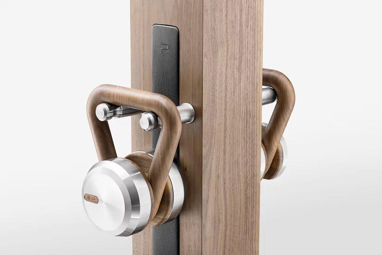 Sleek, contemporary kettlebell set featuring the highest quality stainless steel weights and natural walnut or ash grips. Natural wood tower and base with full-grain leather insert. Stand dimensions: 20w 20d 52h. No assembly required.