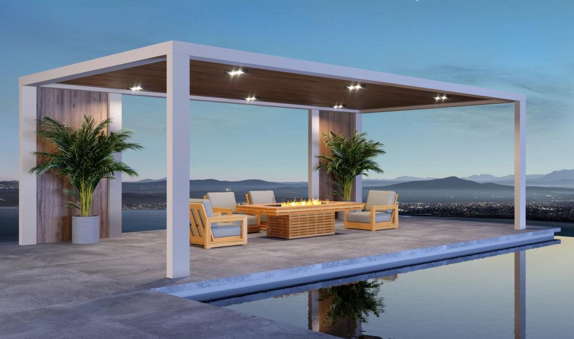 Concrete configurations also include a Winter Bag/Summer Cover, while Teak models include a toughened glass screen for extra safety.