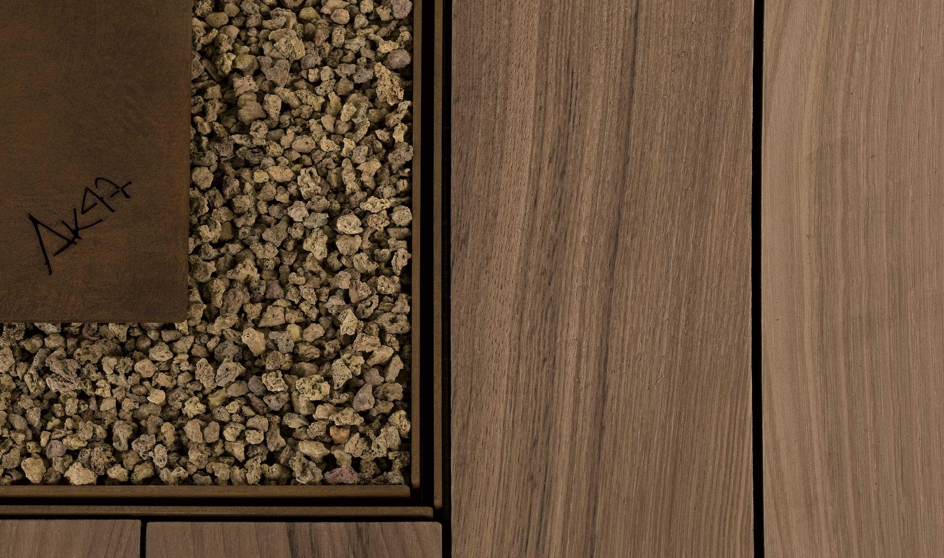 The Tavolo Fire Pit by AK47 Design seamlessly merges functionality with sophistication, offering a versatile outdoor heating solution. Designed to elevate any outdoor space, Tavolo can be enriched with the optional wood compartment, providing convenient storage for firewood in a natural and organized manner. Supplied with a steel cover plate, Tavolo ensures safety while maintaining its sleek aesthetic. With the separately sold stainless steel grill kit, Tavolo transforms effortlessly into a barbecue, enhancing its utility and versatility.