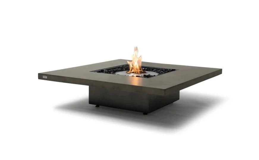 A reimagined, contemporary fire pit table with a compact style to suit smaller spaces – think verandahs, patios, balconies, courtyards, and apartment or condominium living areas. Makes a statement in both indoor and outdoor settings; a unique, low-set square coffee table for all seasons. Created for pairing with armchairs, loveseats, or ottomans, the Vertigo 40 provides a distinctive centerpiece for personalizing your space depending on the occasion and mood.