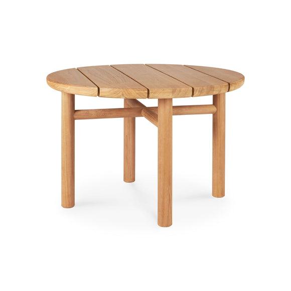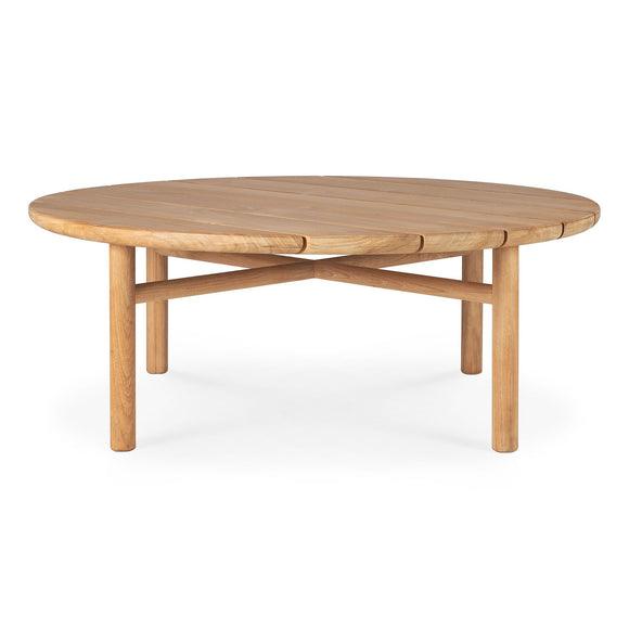 The Quatro Outdoor Coffee Table by Ethnicraft epitomizes elegance and functionality for outdoor spaces. This versatile coffee table, crafted from solid teak wood, features a robust design that's perfect for integrating into any exterior decor. Whether placed beside a pool, on a patio, or in a garden setting, the Quatro table's classic circular shape and sturdy construction make it an essential addition to any al fresco gathering space.