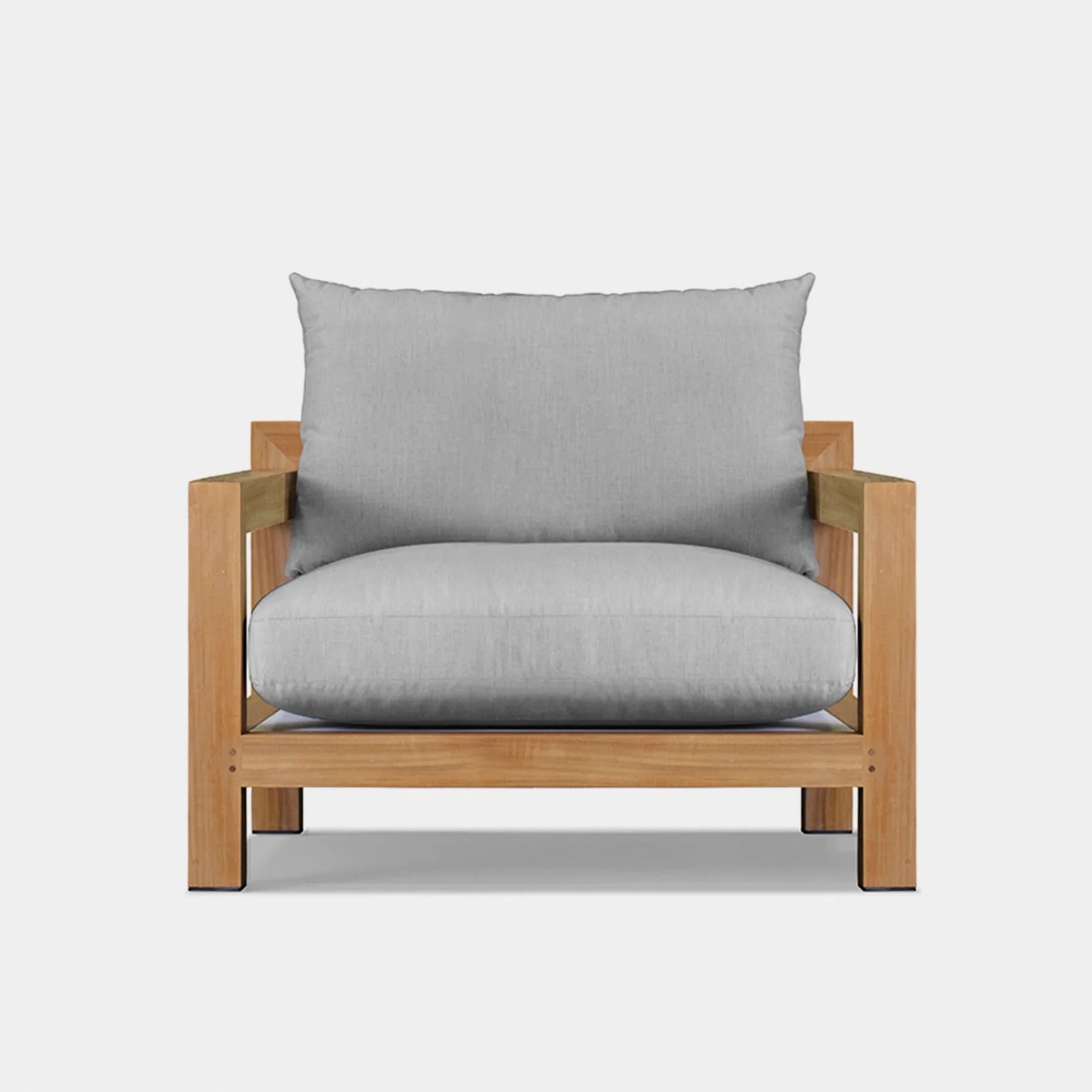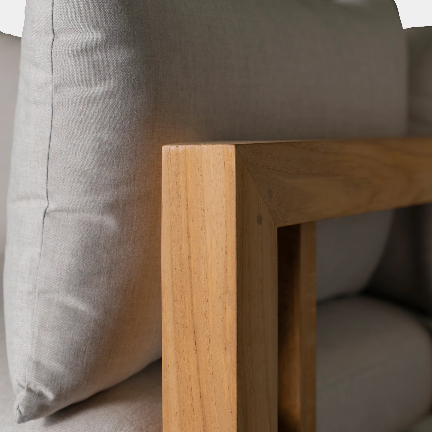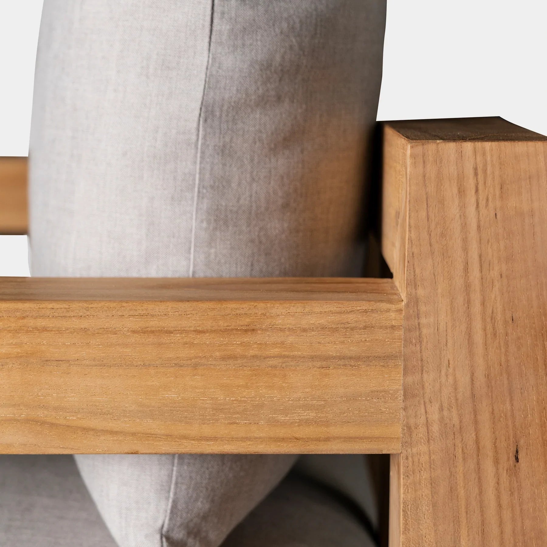 La collezione Pacific si contraddistingue per le linee pulite e un'essenza rustica californiana. Il modello Corner offre un comfort aerodinamico: rilassatevi su un comodo cuscino a cupola con un paio di cuscini schienale a taglio netto, supportati da una sospensione a rete Batyline per un comfort ancora maggiore. Realizzato artigianalmente con travi quadrate di teak indonesiano massello di prima qualità, questo pezzo costiero si adatta senza sforzo a qualsiasi spazio più piccolo.