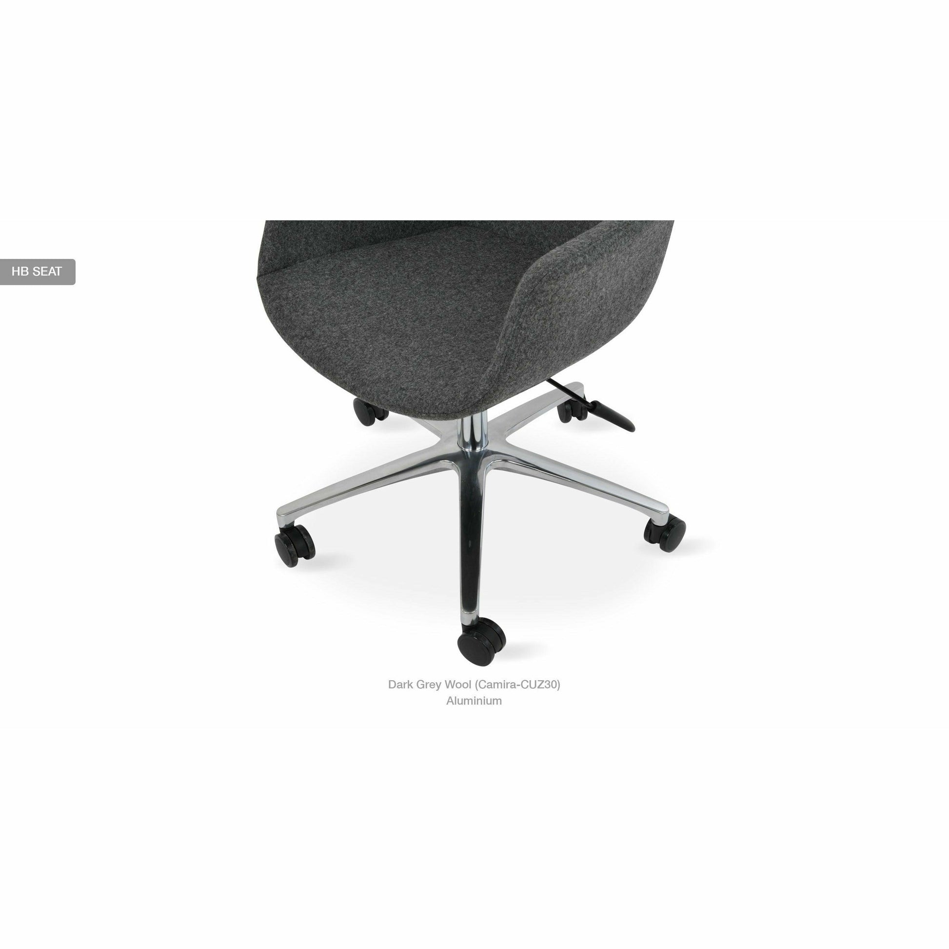 The Bottega Office chair is a contemporary chair with a comfortable upholstered seat and backrest on a height-adjustable gas piston base that swivels and tilts. The chair has a chromed steel five-star base with plastic casters. The seat has a steel structure with “S” shape springs for extra flexibility and strength. This steel frame is molded by injecting polyurethane foam. Bottega seat is upholstered with a removable zipper enclosed leather, PPM, leatherette, or wool fabric slipcover. Bottega Office may be upholstered with various colors as a special order with a minimum quantity required. The chair is suitable for both residential and commercial use.