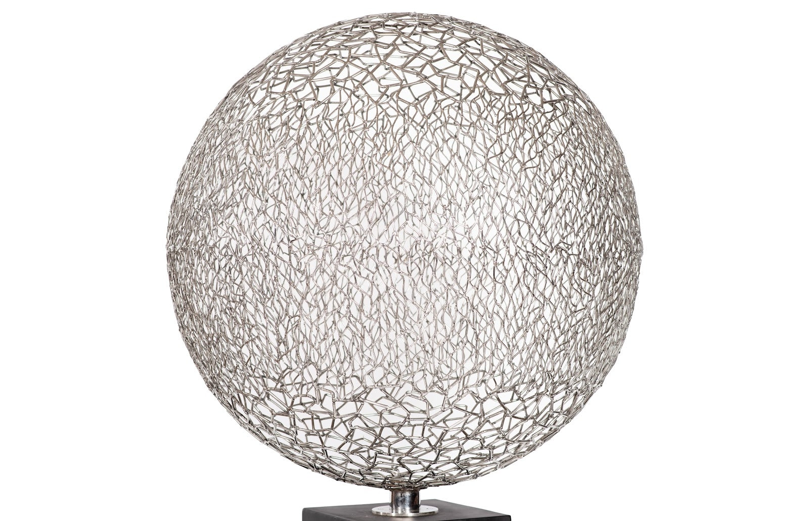 Ball Sculpture on Wood Pedestal Stainless Steel