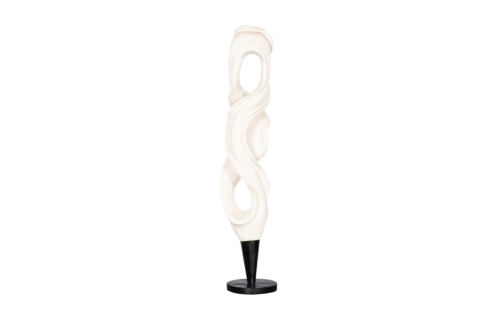 The Dancing Sculpture Smooth White by Phillips Collection is a stunning artistic piece, expertly carved from natural teak roots to capture the graceful movement of wood in a dynamic, ribbon-like form. The whitewashed bleach finish adds a modern touch to the natural texture of the wood, making this sculpture an elegant addition to any space. It blends organic beauty with contemporary design, perfect for enhancing your home decor.
