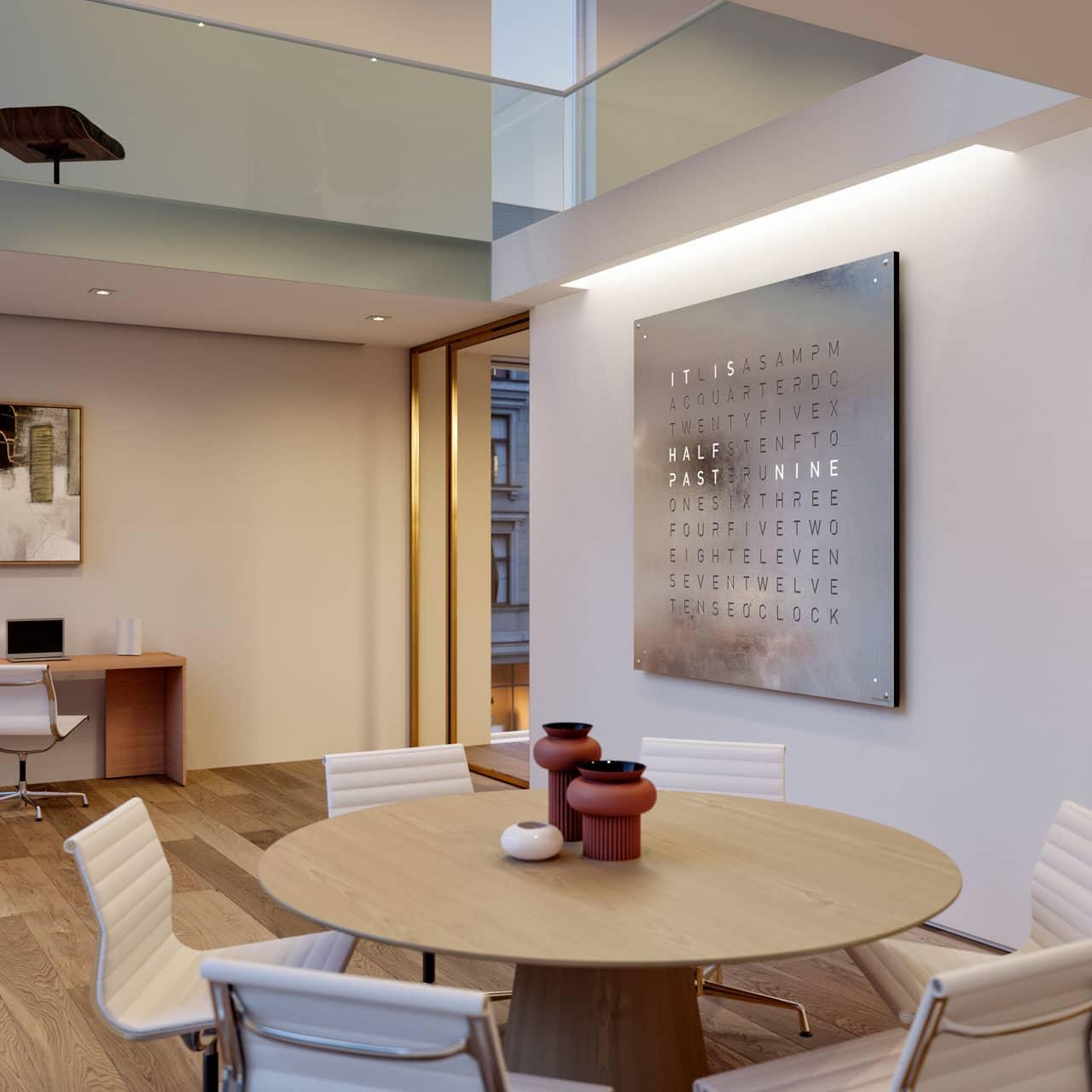 Designed and crafted with meticulous attention to detail, the QLOCKTWO 180 combines quality materials and innovative technology to bring a whole new perspective on time. Whether it's adorning your living room wall or gracing your office, this piece will serve as a conversation starter.
