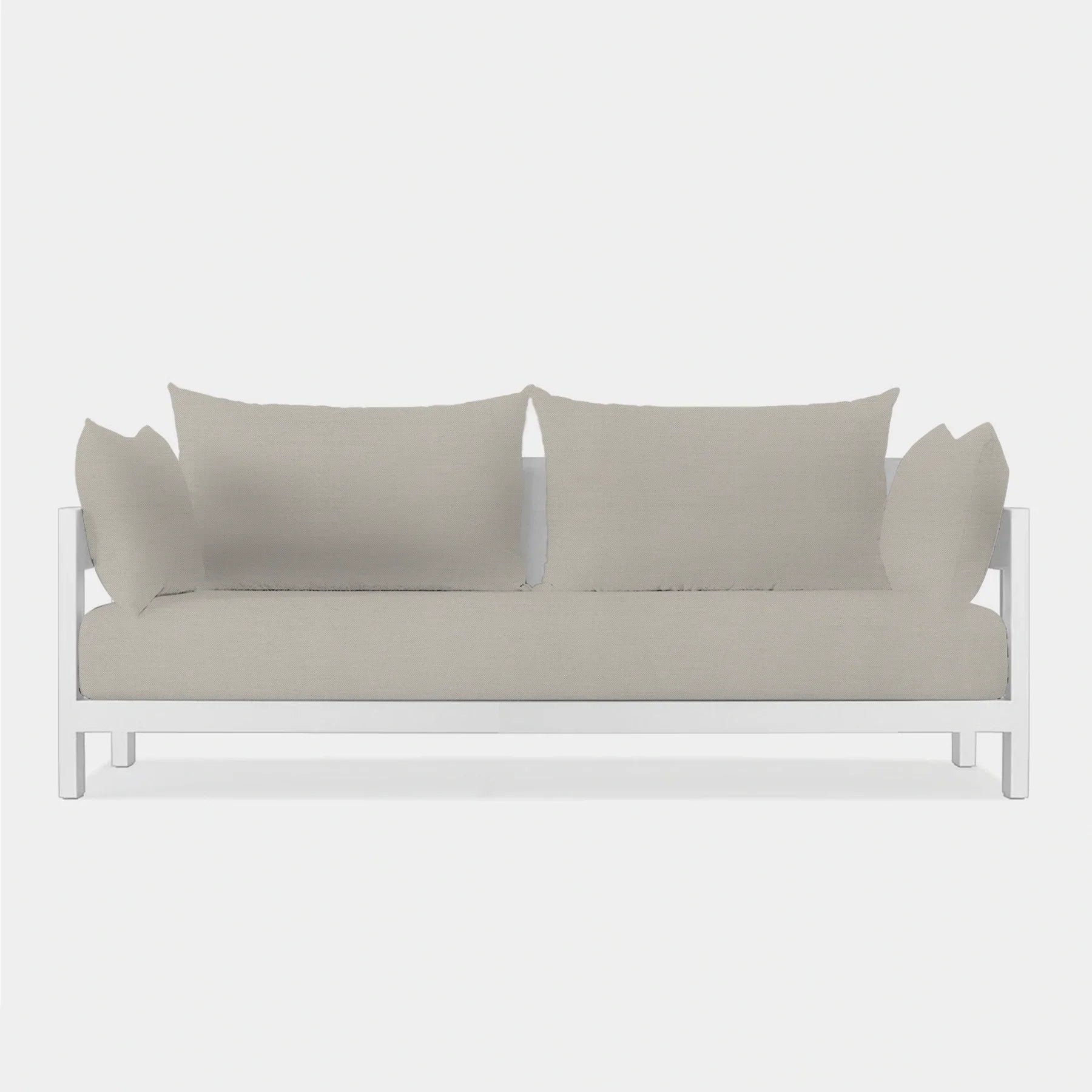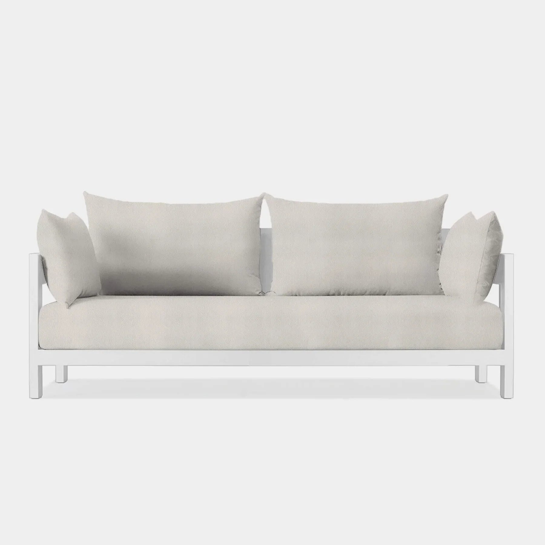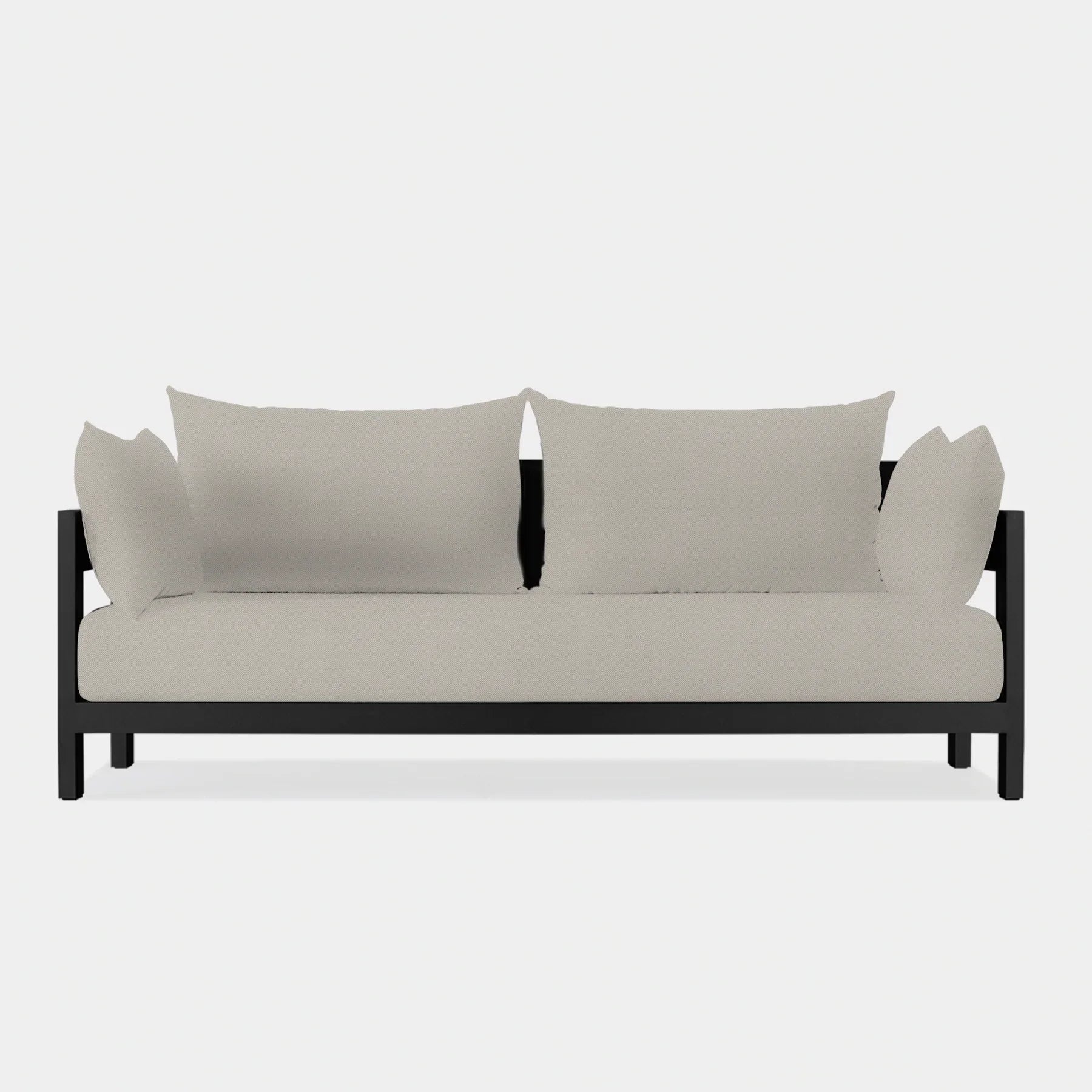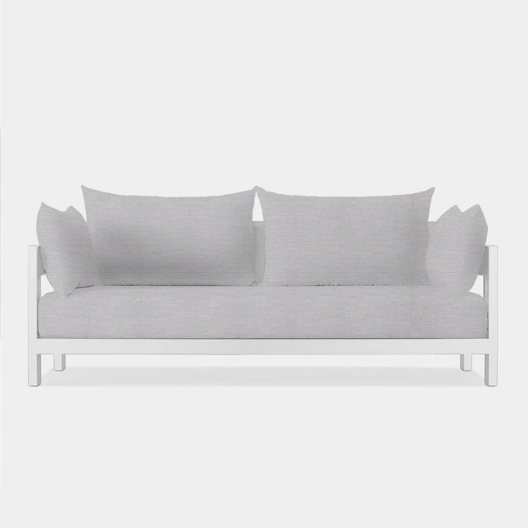 Our Hampton collection layers exciting angles with the simplicity of form for a harmonious design. The Hampton 2 Seat Sofa is an elegant update to timeless pieces — enjoy a plush bench cushion on a sling suspension, all handcrafted in square geometries of extruded aluminum. Side cushions add extra comfort, while square cut–out details add visual interest. Clean lines and versatility make this piece perfect for any smaller outdoor space.