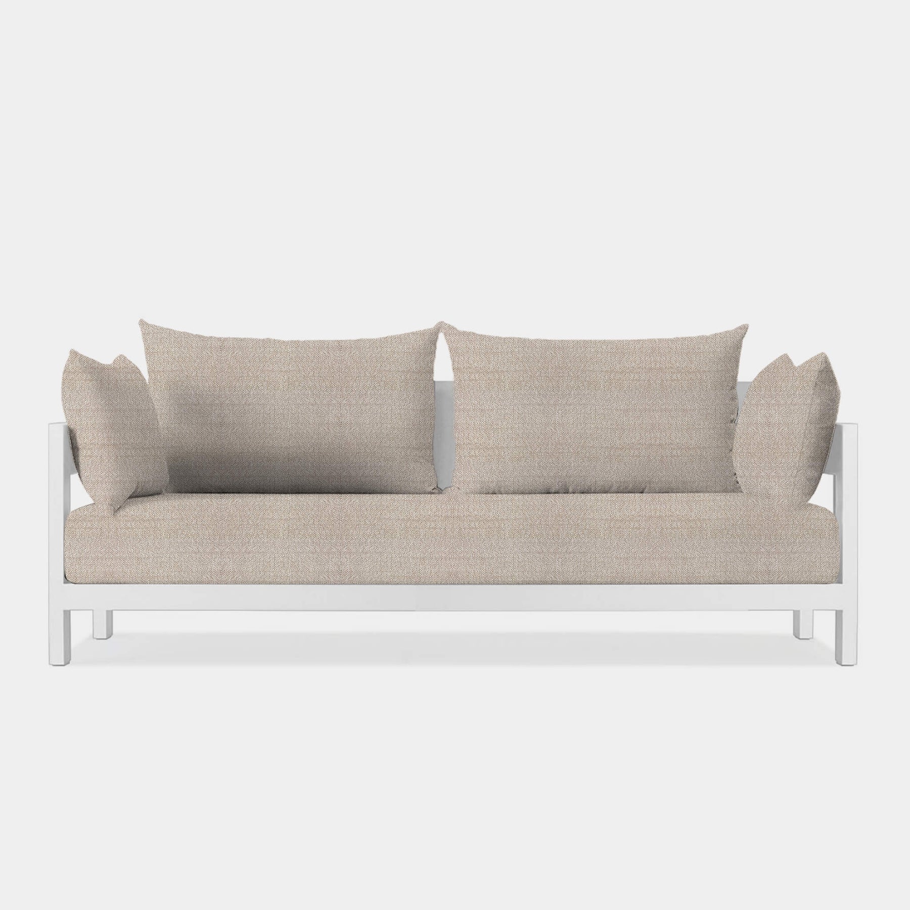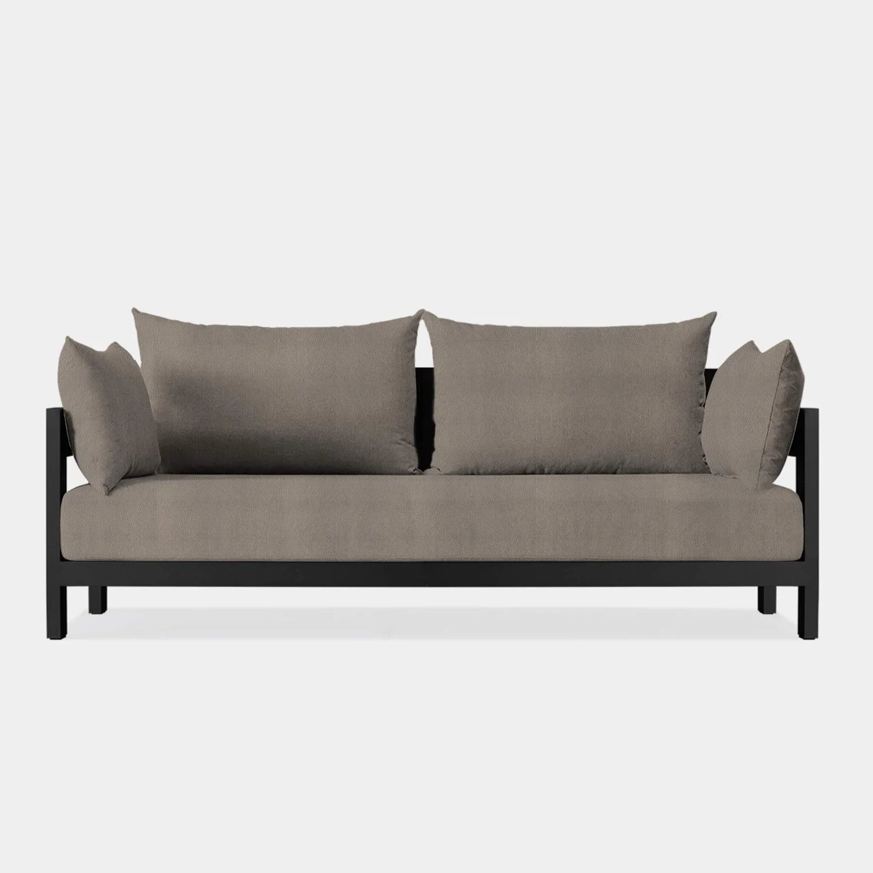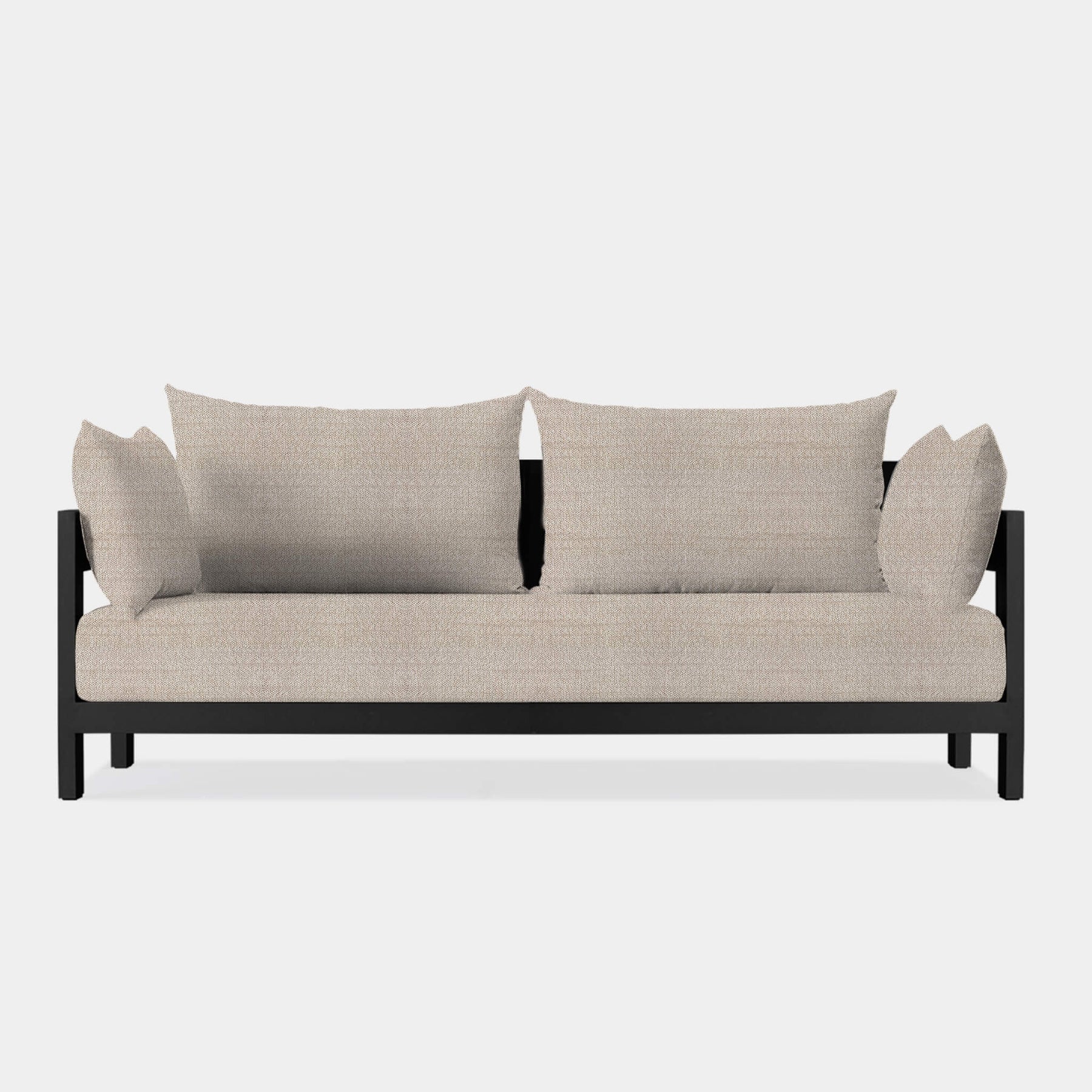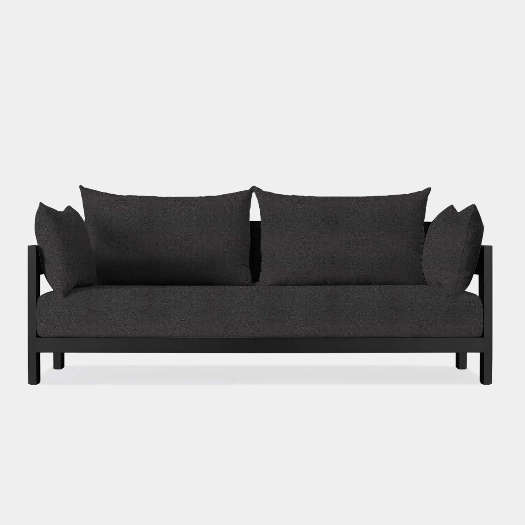 Our Hampton collection layers exciting angles with the simplicity of form for a harmonious design. The Hampton 2 Seat Sofa is an elegant update to timeless pieces — enjoy a plush bench cushion on a sling suspension, all handcrafted in square geometries of extruded aluminum. Side cushions add extra comfort, while square cut–out details add visual interest. Clean lines and versatility make this piece perfect for any smaller outdoor space.