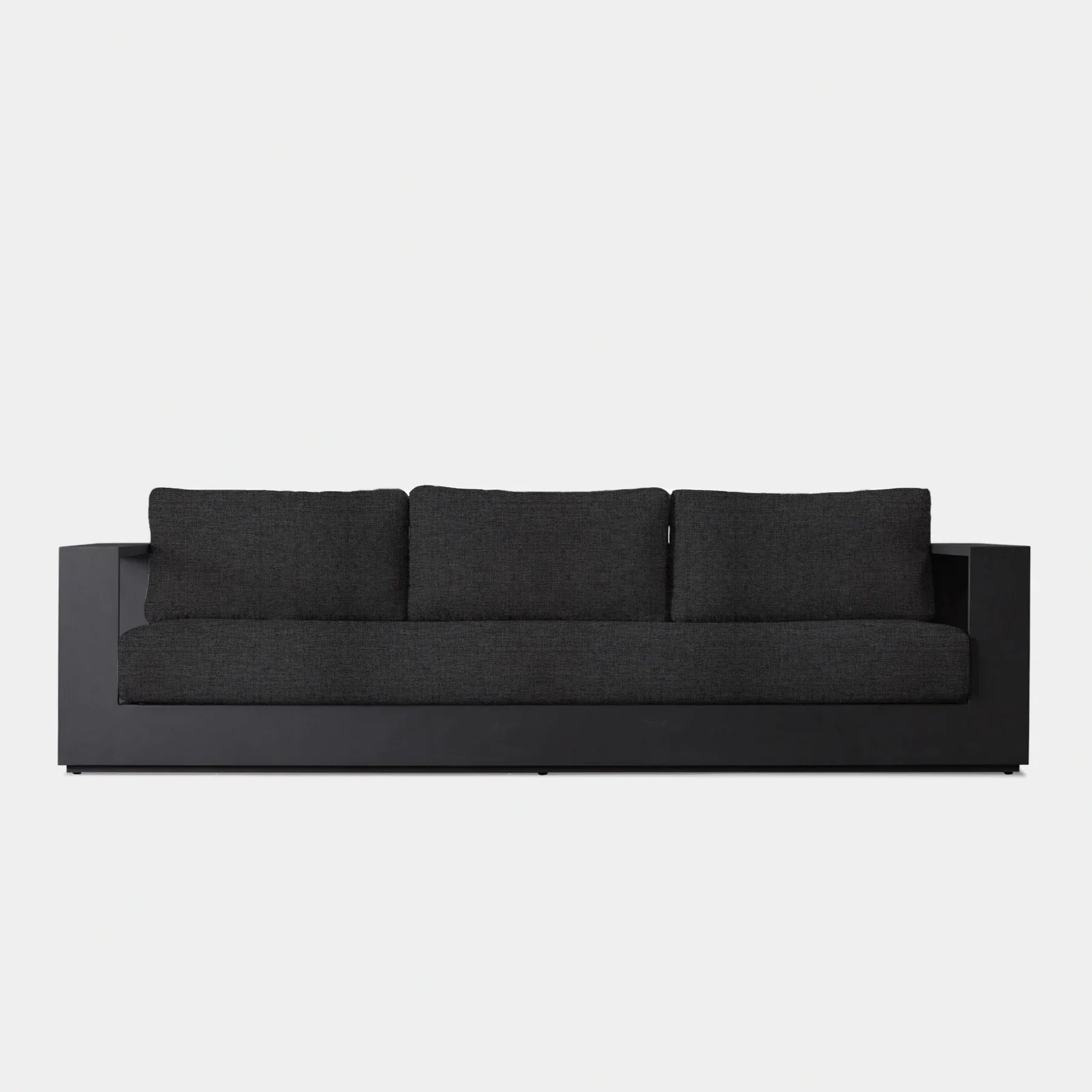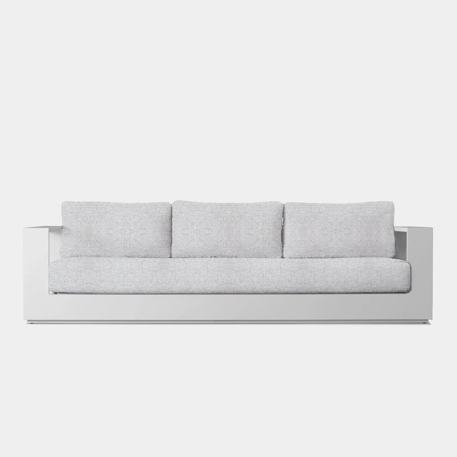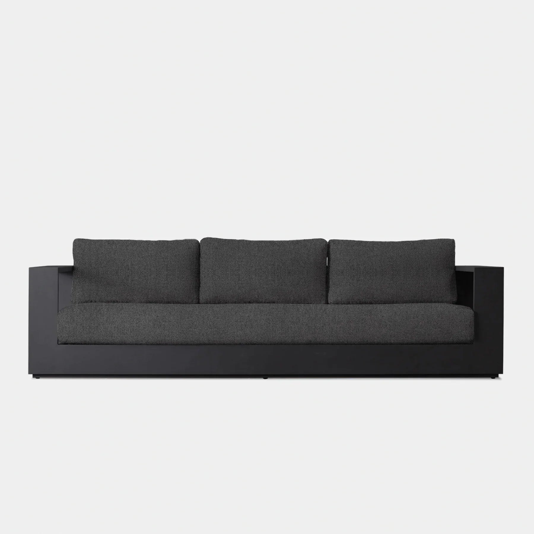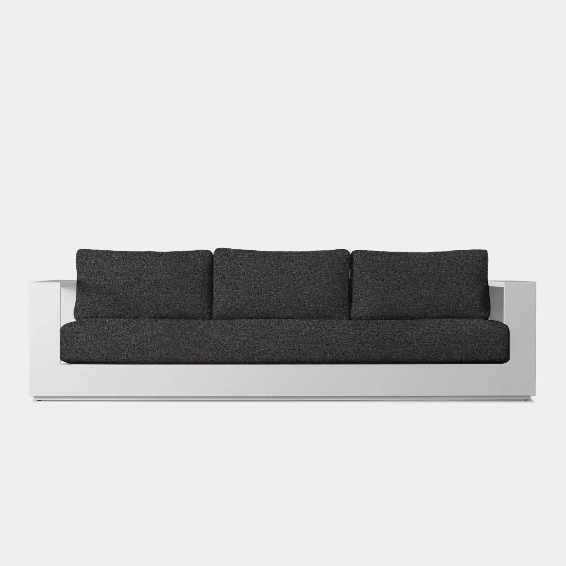 The Hayman collection is a statement of simplicity with clean angles and modern styling. Defined by its wide arms, our low–profile Hayman 2 Seat Sofa was designed to be experienced — sink into ultimate relaxation with a deep bench cushion supported by a Batyline sling suspension for added comfort, all crafted in a powder-coated extruded aluminum frame. Indoor comfort meets outdoor performance with this geometric piece made for various spaces.