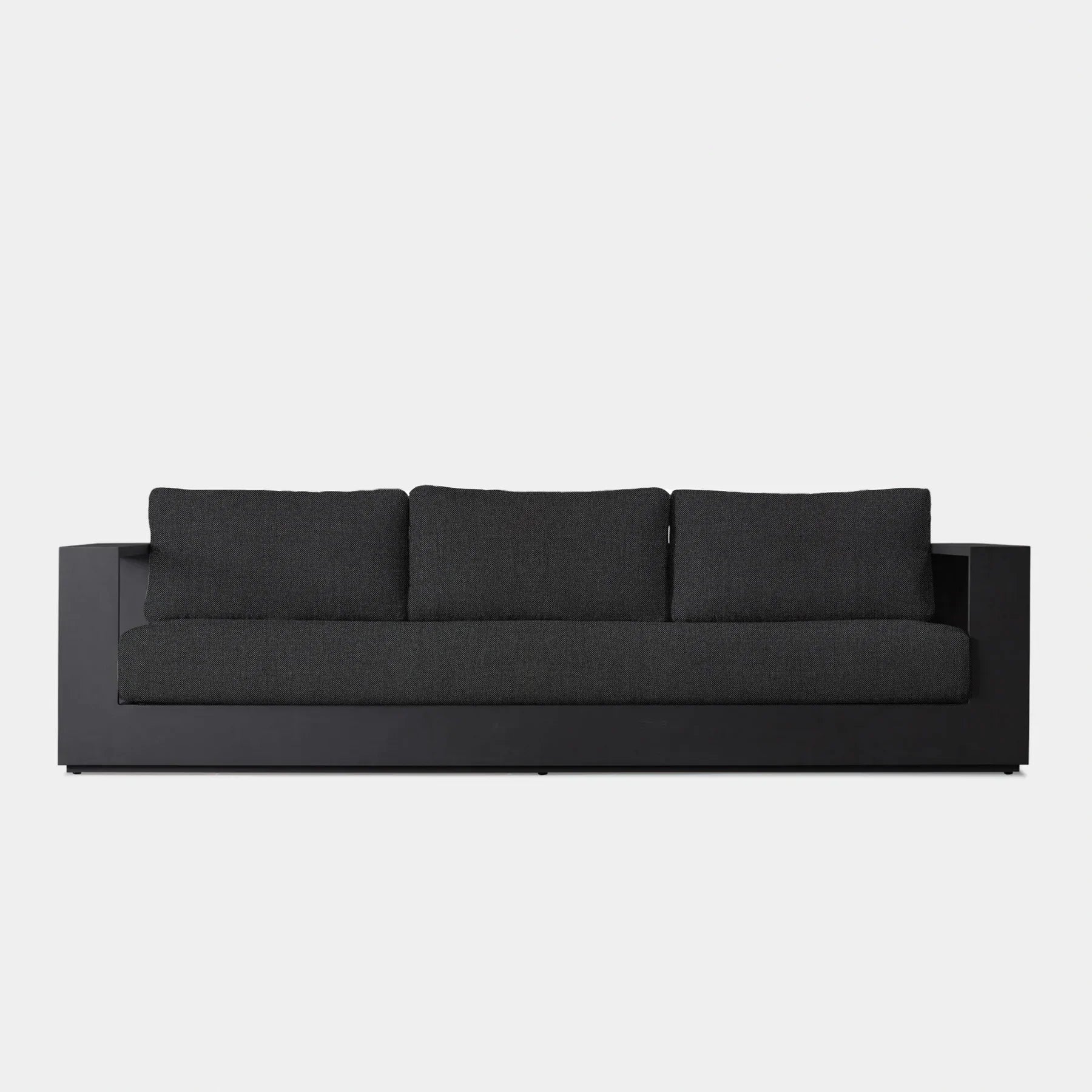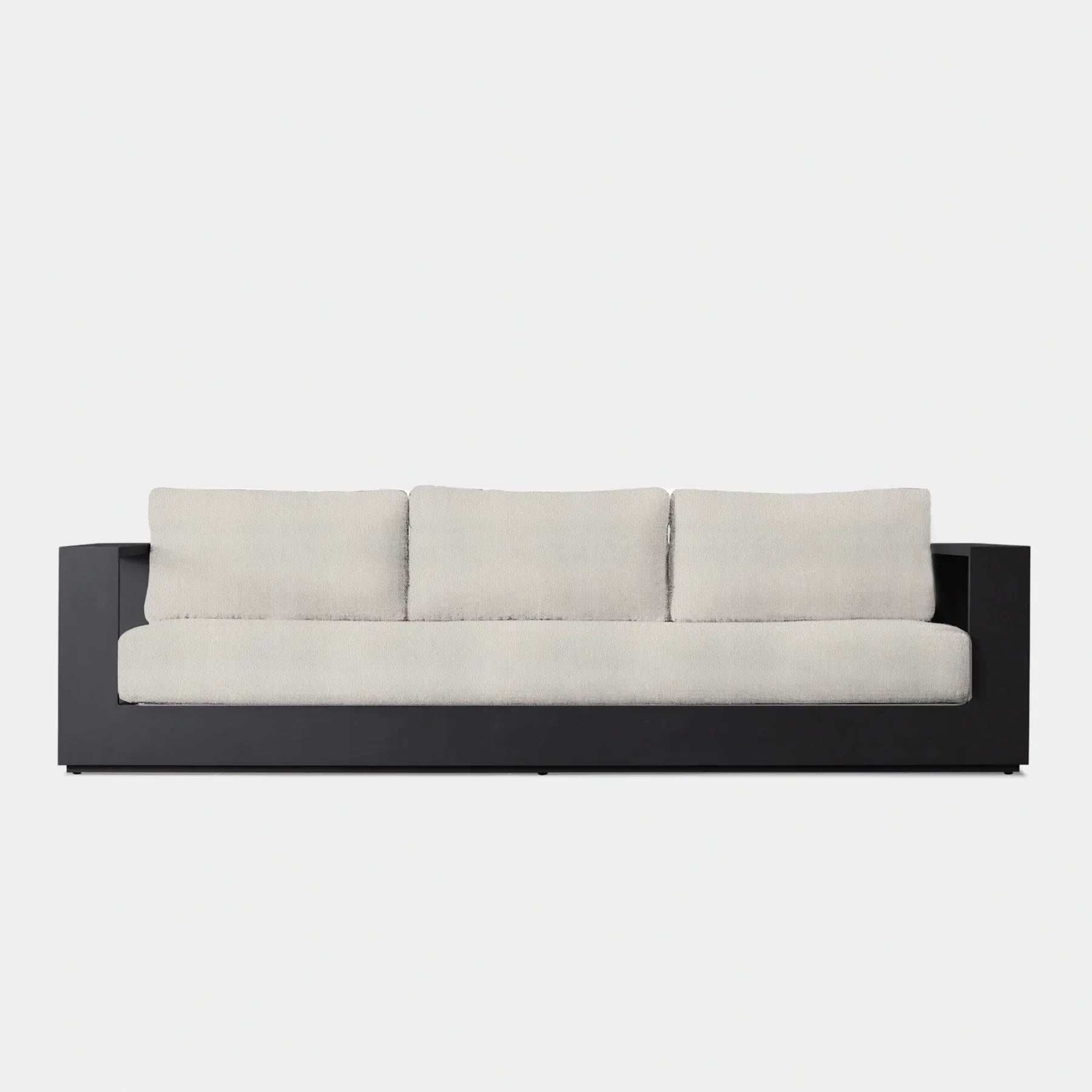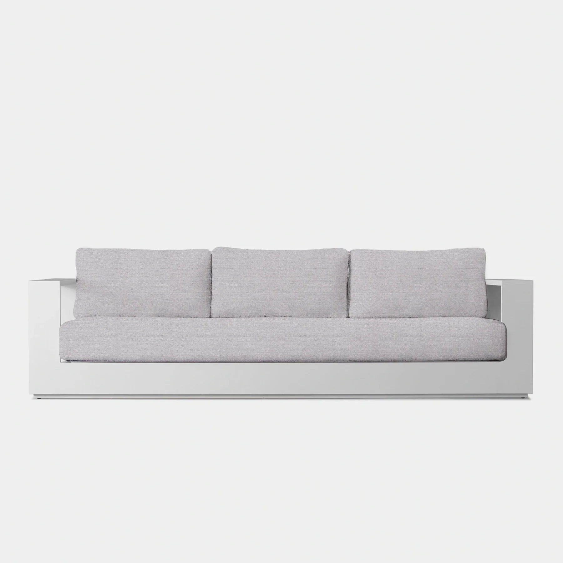 The Hayman collection is a statement of simplicity with clean angles and modern styling. Defined by its wide arms, our low–profile Hayman 2 Seat Sofa was designed to be experienced — sink into ultimate relaxation with a deep bench cushion supported by a Batyline sling suspension for added comfort, all crafted in a powder-coated extruded aluminum frame. Indoor comfort meets outdoor performance with this geometric piece made for various spaces.