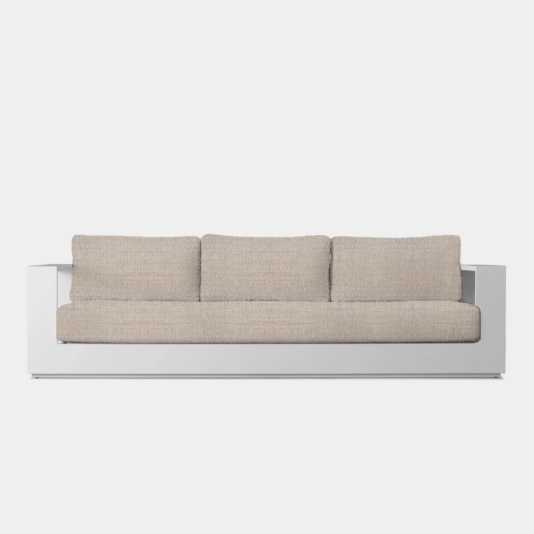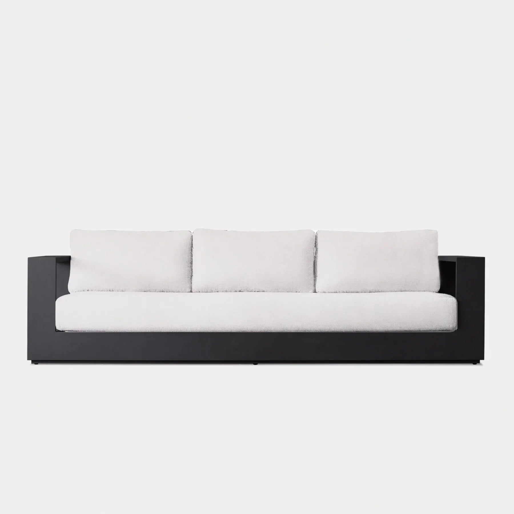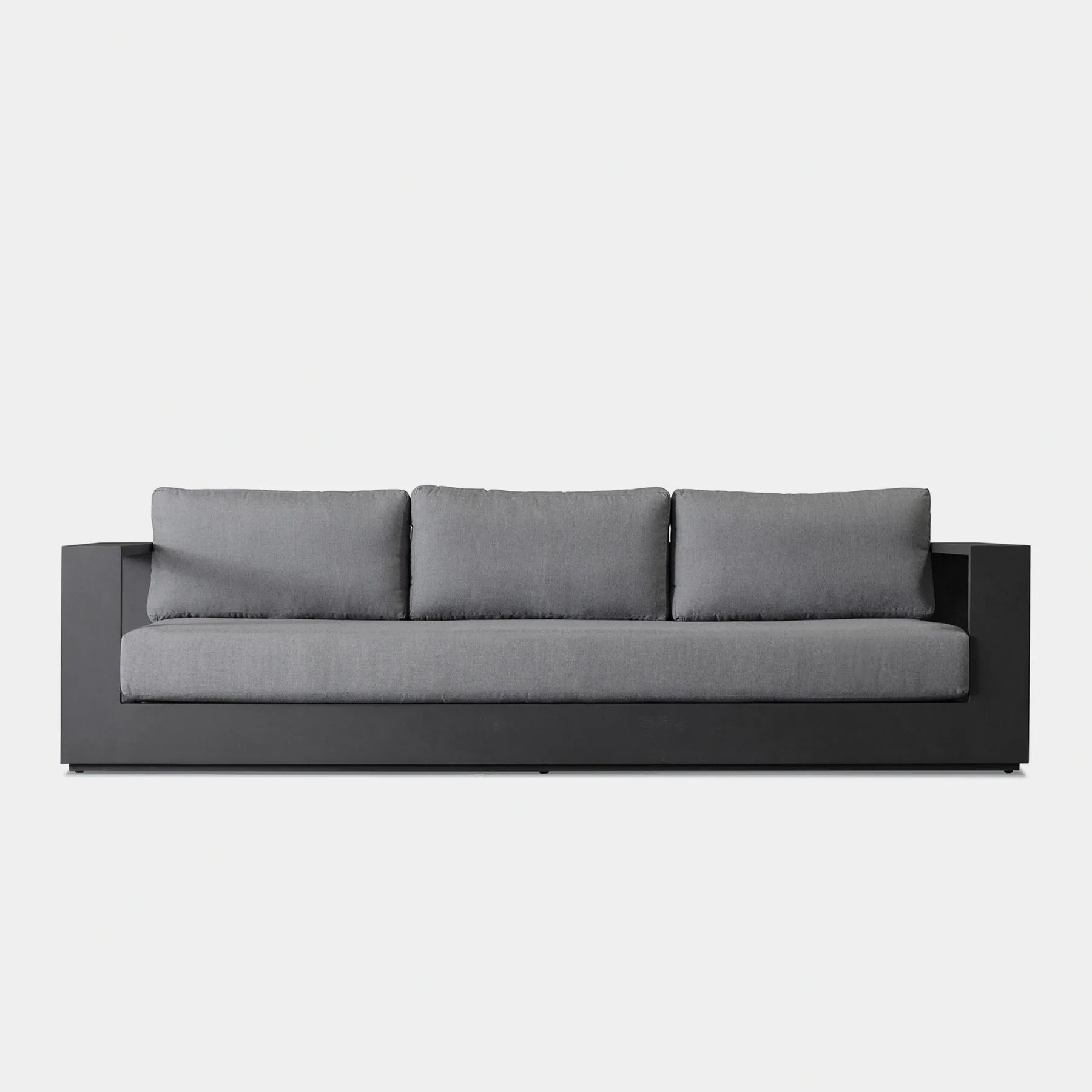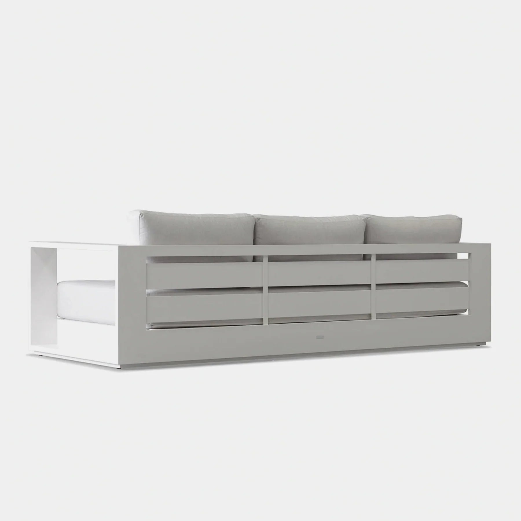 The Hayman collection is a statement of simplicity with clean angles and modern styling. Defined by its wide arms, our low–profile Hayman 2 Seat Sofa was designed to be experienced — sink into ultimate relaxation with a deep bench cushion supported by a Batyline sling suspension for added comfort, all crafted in a powder-coated extruded aluminum frame. Indoor comfort meets outdoor performance with this geometric piece made for various spaces.
