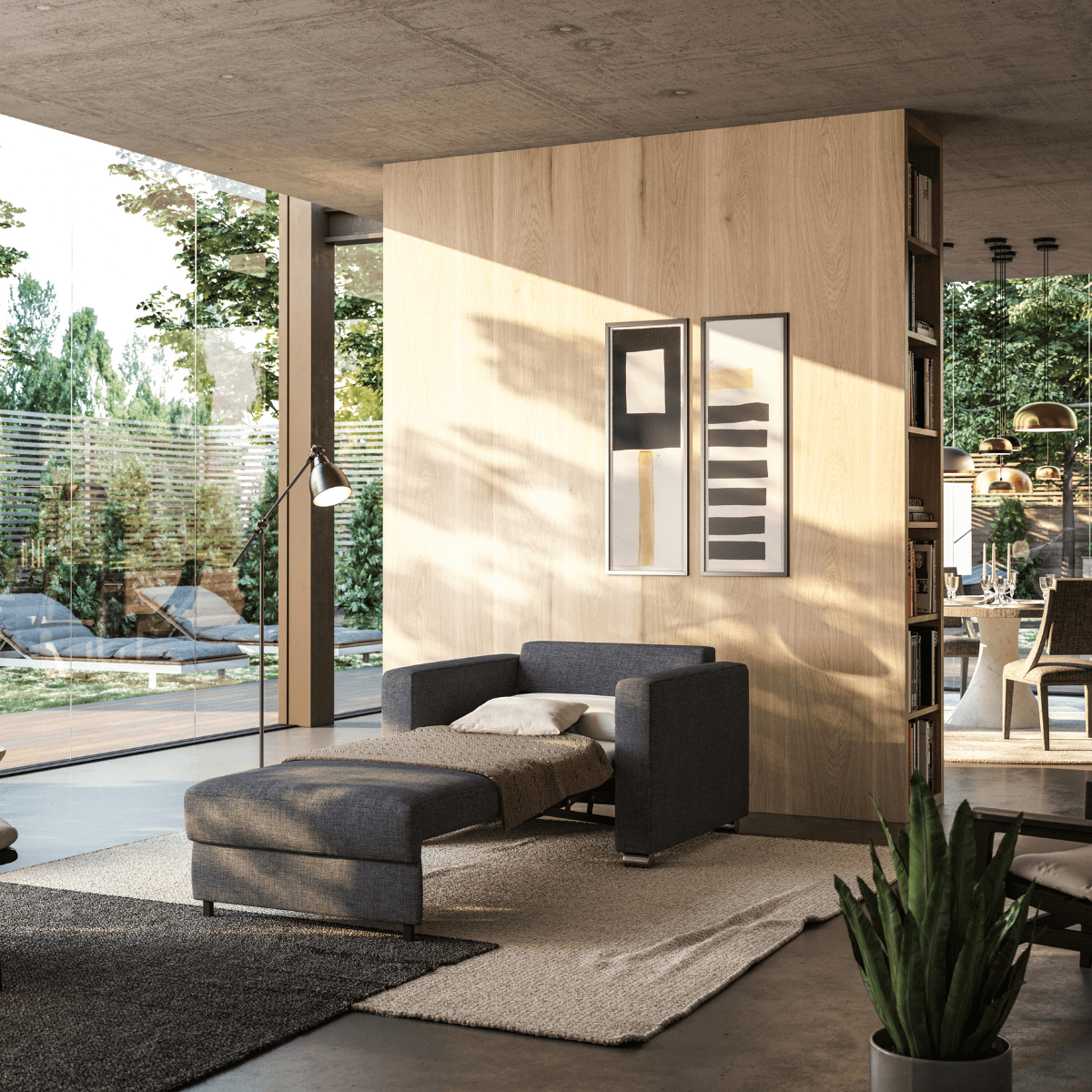 The Fantasy Cot Size Chair Sleeper offers contemporary design with timeless appeal, combining sleek aesthetics and innovative functionality. With Luonto's upgraded Level Function, it transforms effortlessly from a comfortable chair to a cozy cot-sized bed. The precision-engineered mechanism, assisted by gas springs, ensures a smooth, single-motion conversion for hassle-free everyday use.