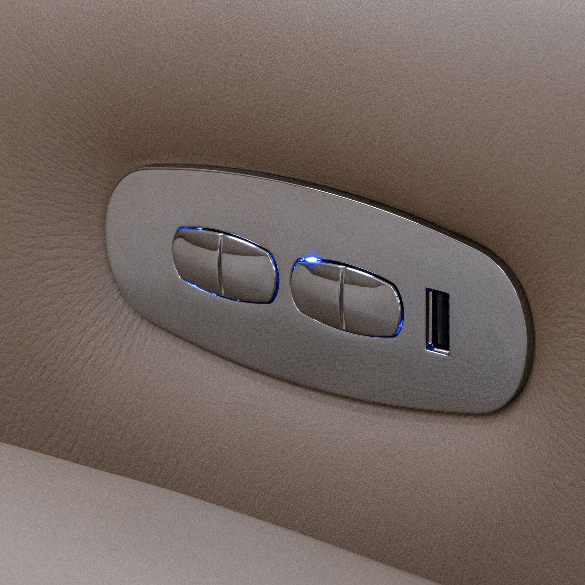 • LED-lit in-arm control panel with 2-amp USB charging port
