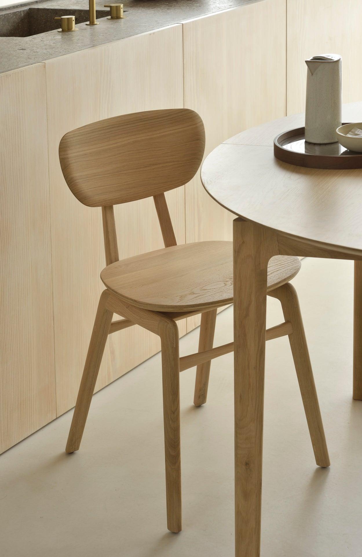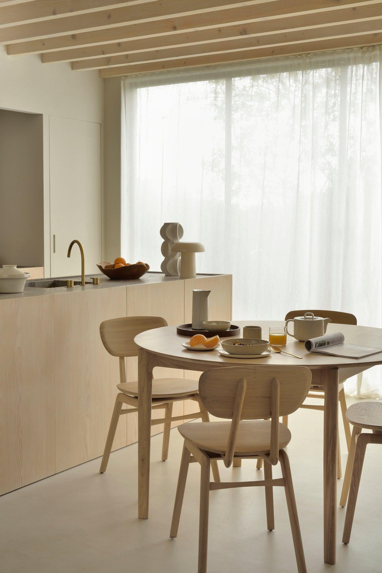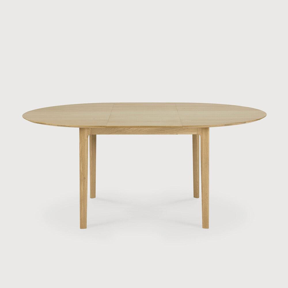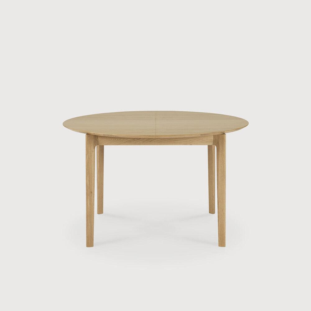 The Bok Extendable Dining Table Round, designed by the renowned Alain van Havre for Ethnicraft, showcases the seamless integration of sculptural elegance with the practicality of contemporary design. Crafted from premium solid oak, this table embodies the essence of fluid and organic form. Its sophisticated extendable mechanism is discreetly housed within, allowing the round table to effortlessly accommodate additional guests. This design not only maximizes functionality within compact spaces but also maintains a sleek and minimal aesthetic. The enduring appeal of the Bok table, underscored by its solid construction, ensures it will be a cherished element of your dining space for years to come.