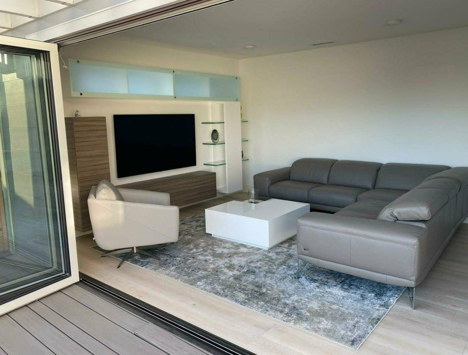 Custom made to order by our manufacturing facility in Los Angeles, CA, Huntininton  Wall Unit is characterized by a variable geometry that is obtained with a combination of lacquered storage units, deep walnut natural veneer drawers, and different thicknesses. A simple result and yet a remarkable effect. Wall-hung sideboard storage units with doors and drawers equipped with push-pull opening system. Choose your unique finishes to match your decor. Optional LED backlighting available. Pricing listed for individual units.