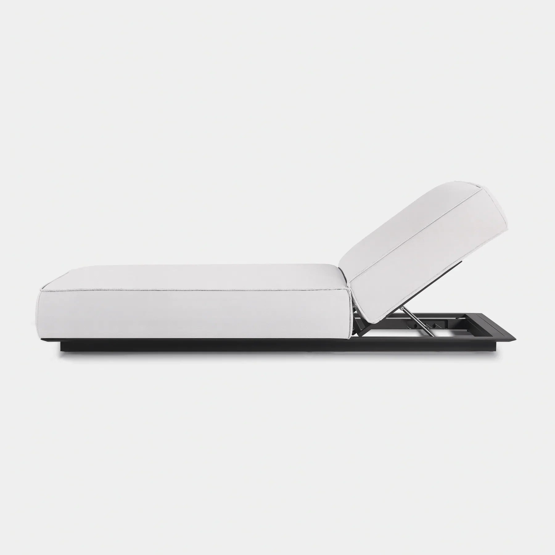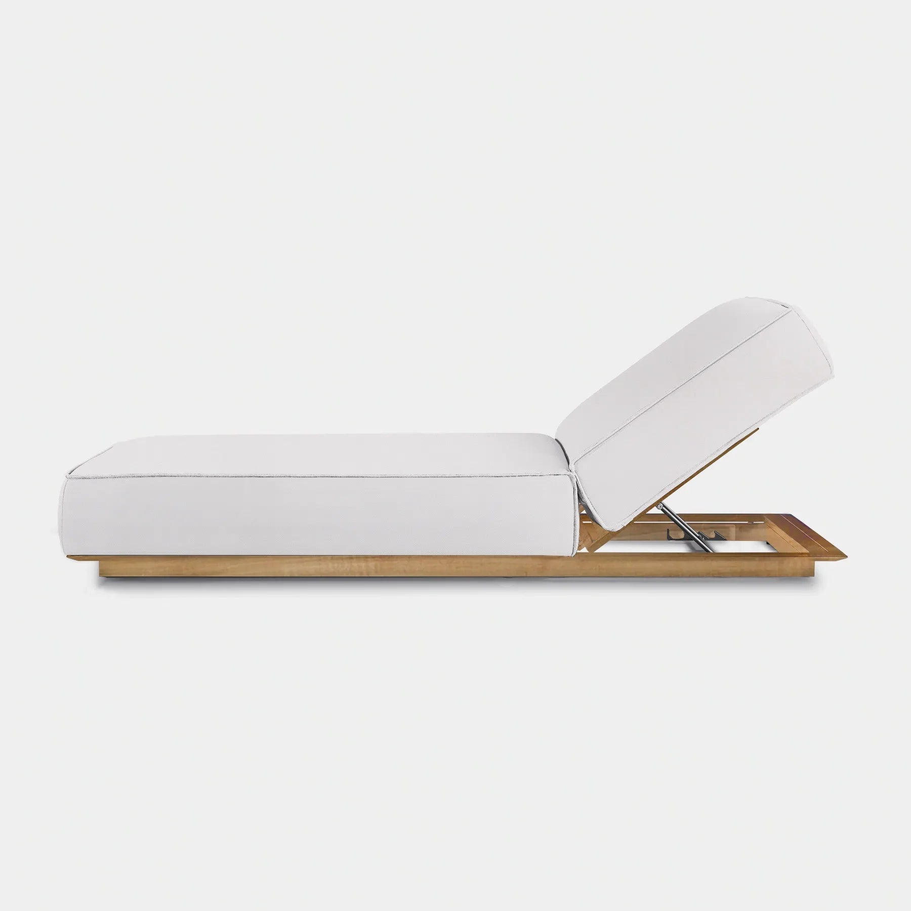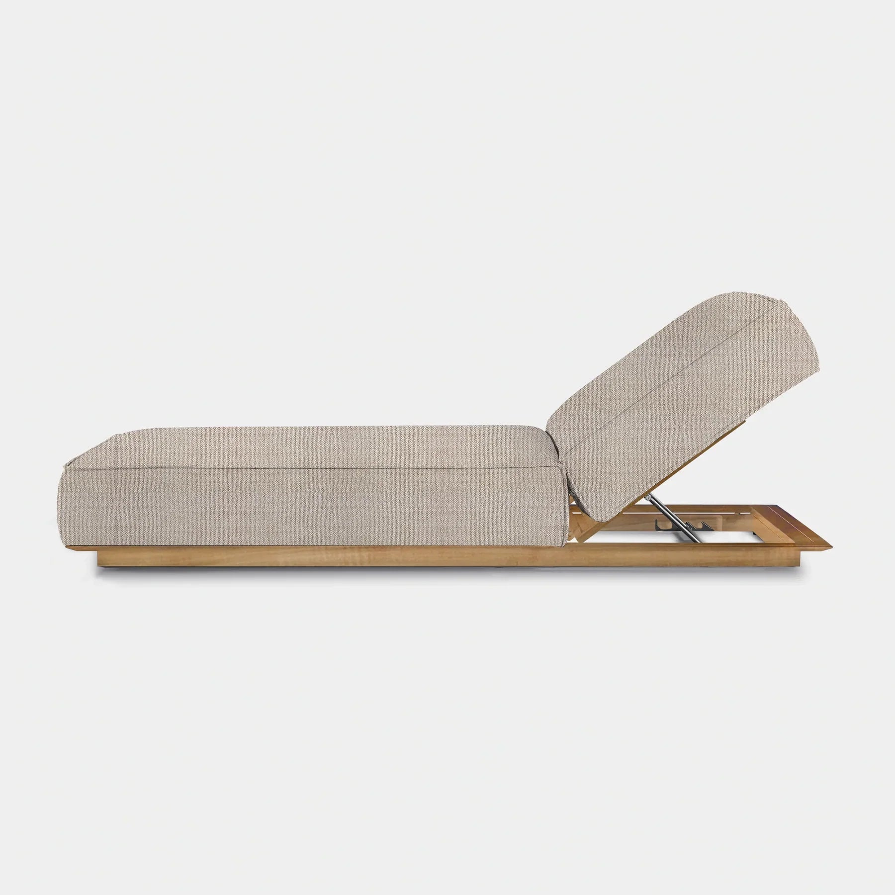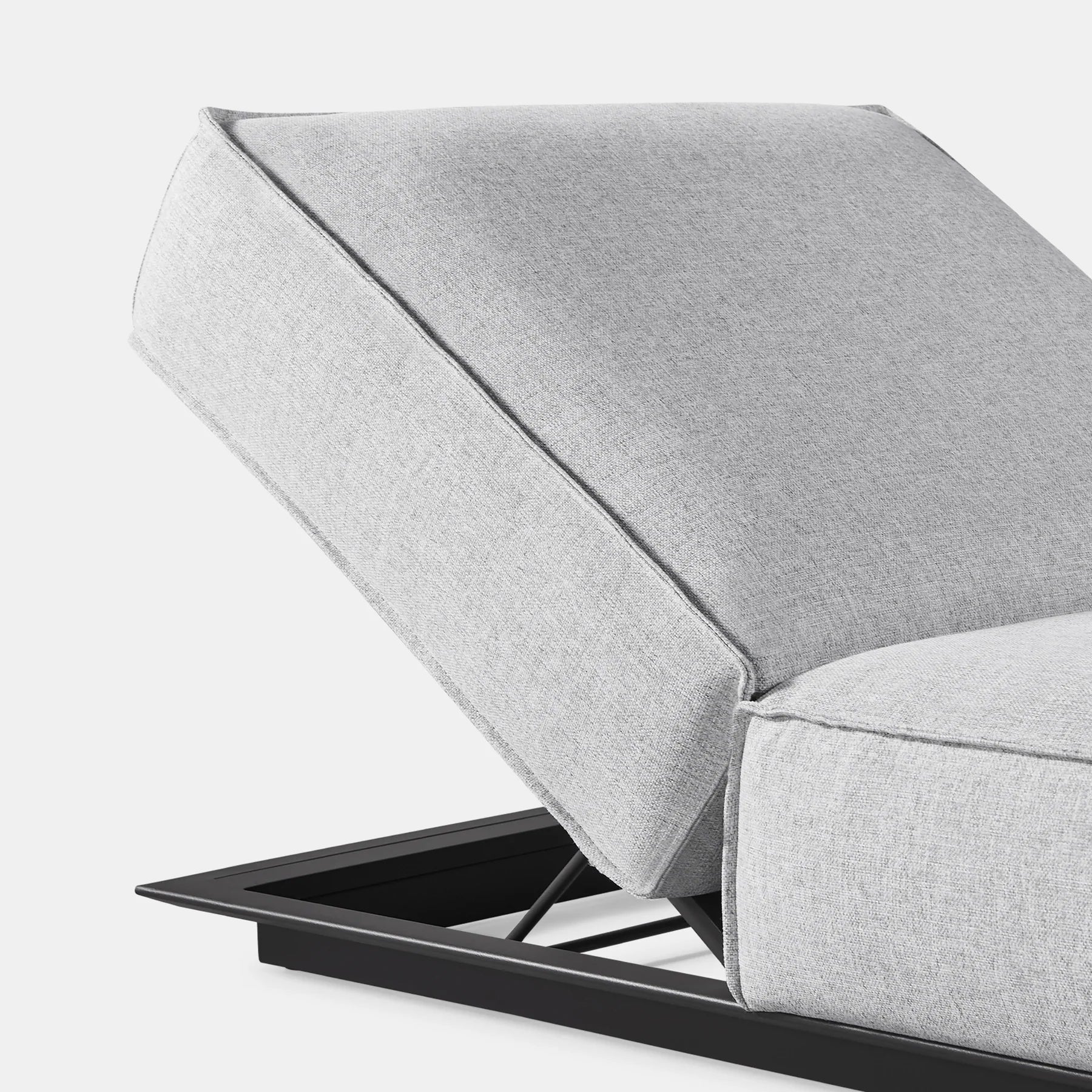Building on our years of experience in outdoor design, the popular fully upholstered Santorini collection offers versatility in modular seating. The Santorini Sun Lounge is pure comfort — sink into an extra generous tight seat cushion with an all-weather suspension system and accent pillows, all floating on a plinth base in a choice of aluminum or teak.