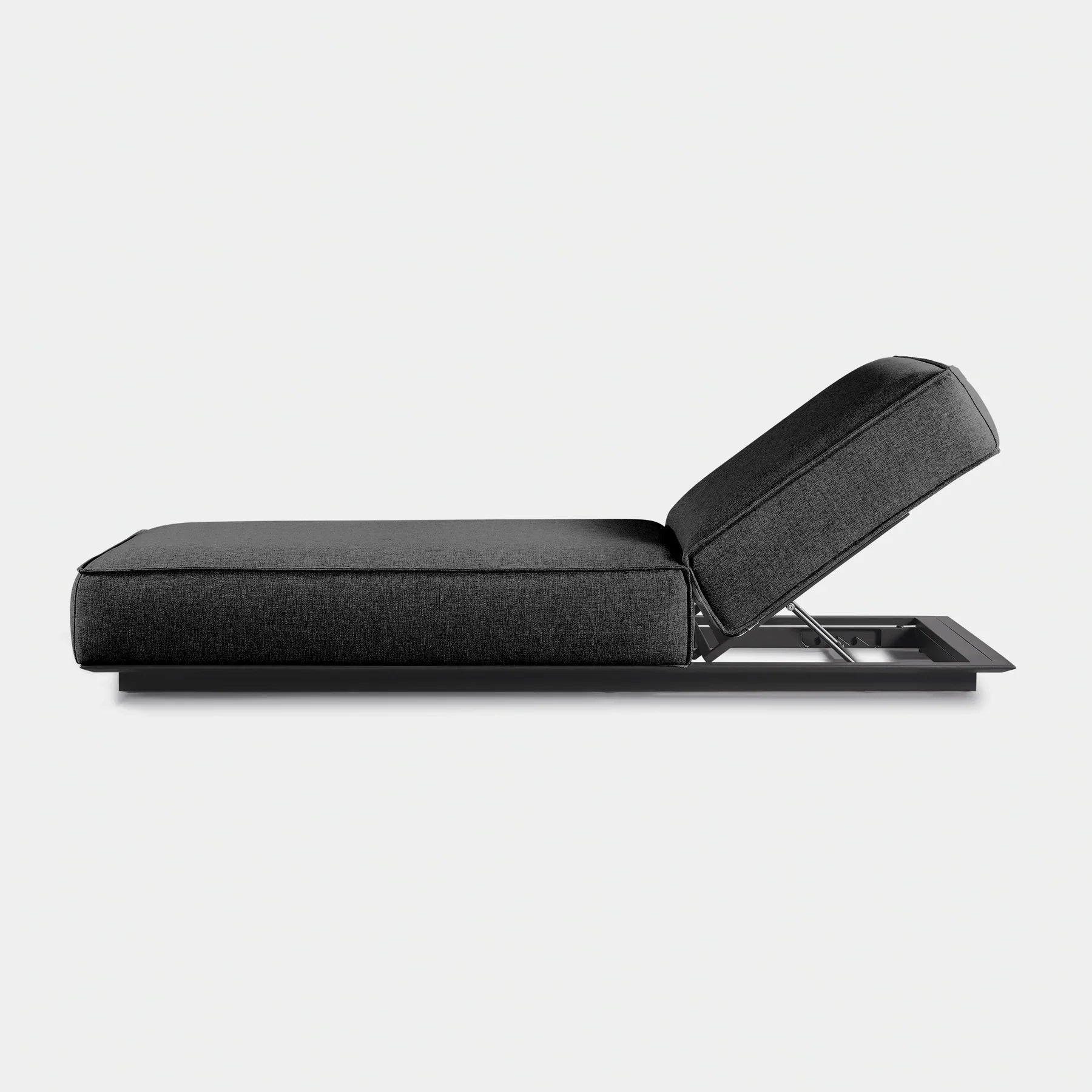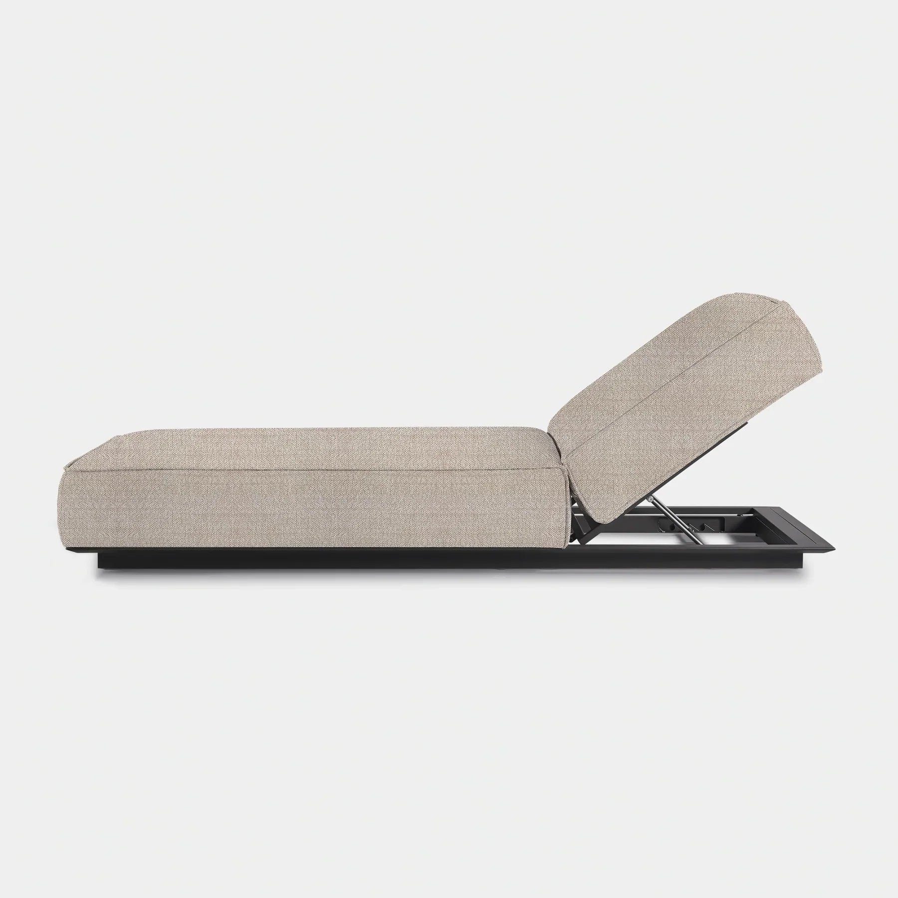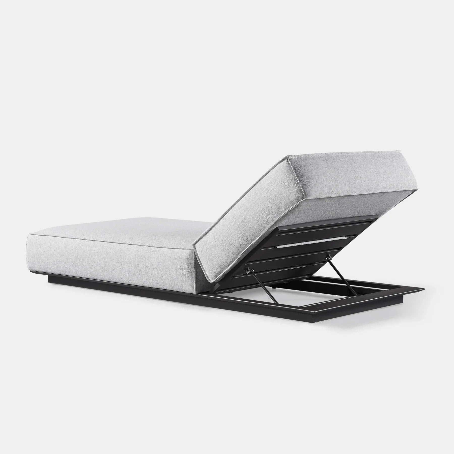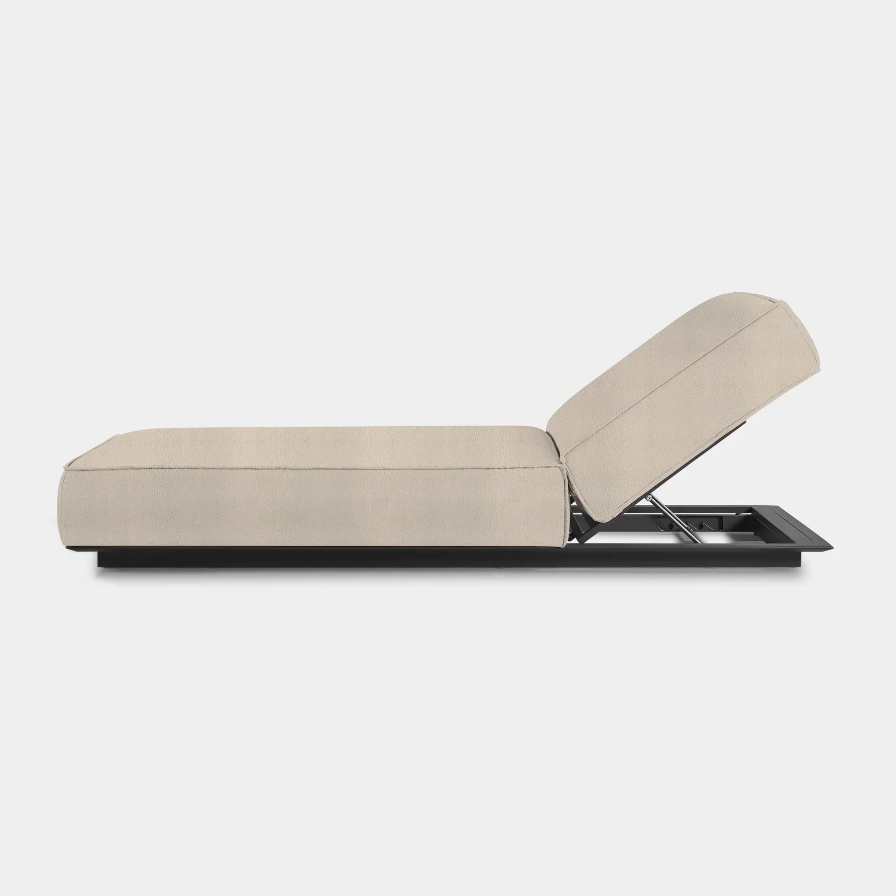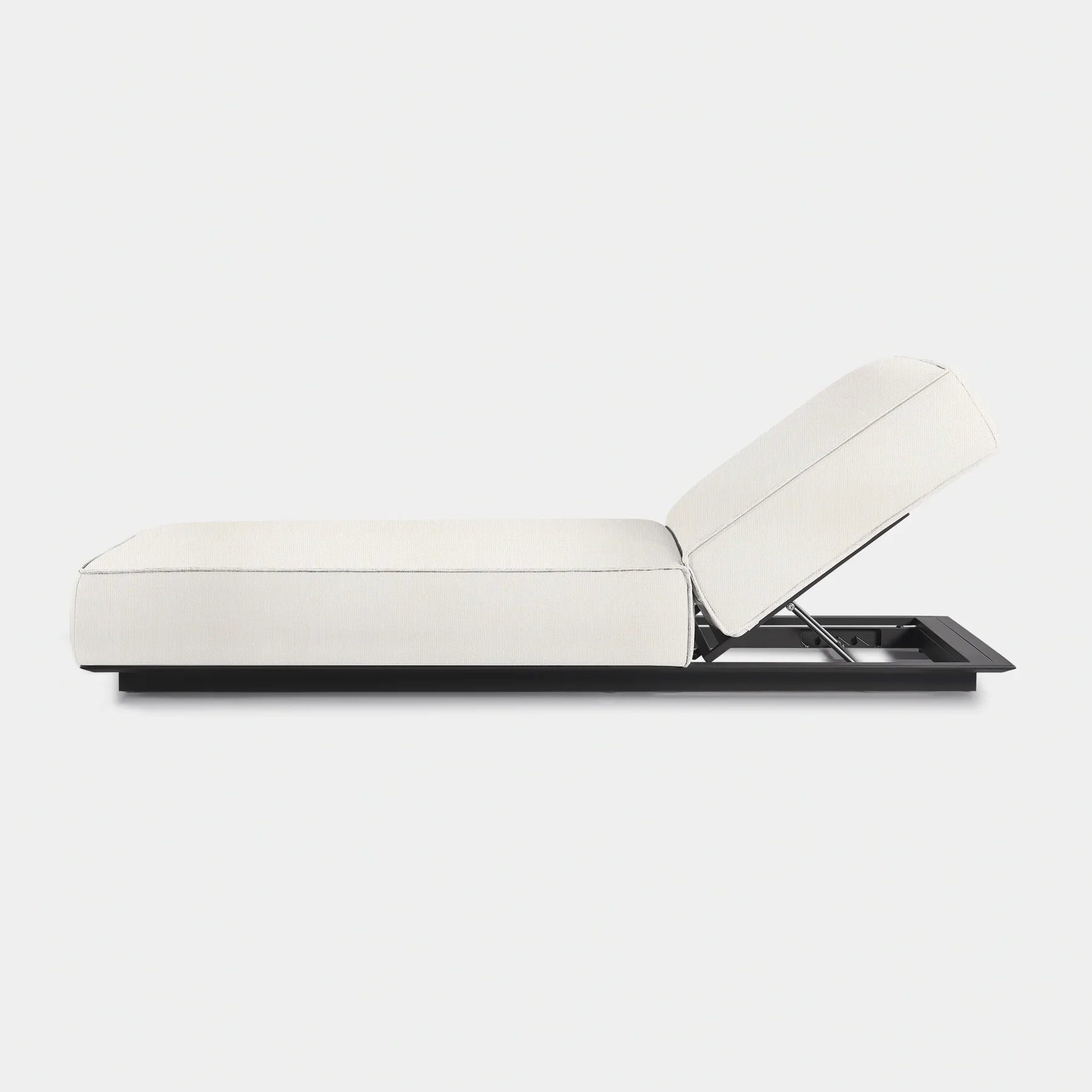 Building on our years of experience in outdoor design, the popular fully upholstered Santorini collection offers versatility in modular seating. The Santorini Sun Lounge is pure comfort — sink into an extra generous tight seat cushion with an all-weather suspension system and accent pillows, all floating on a plinth base in a choice of aluminum or teak.