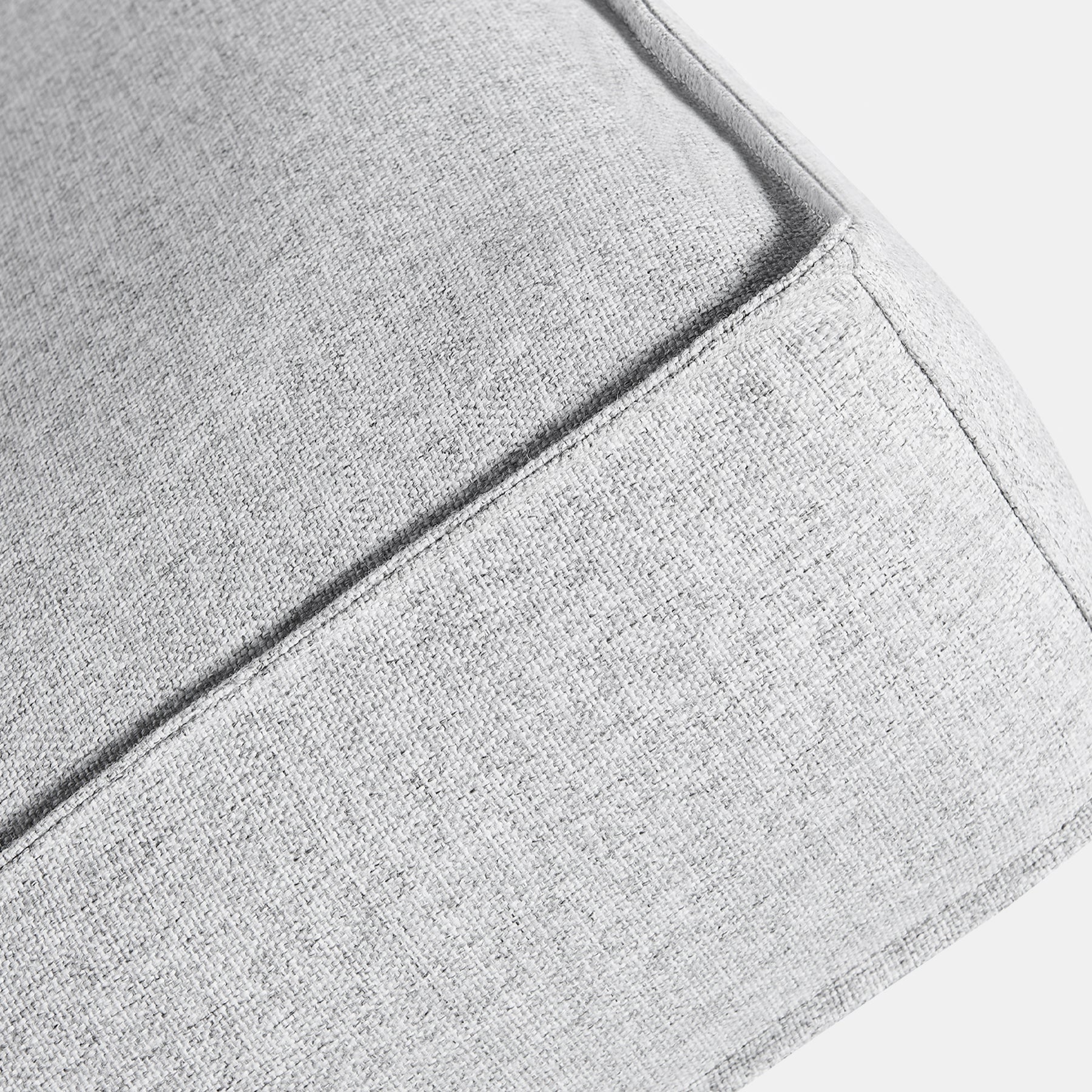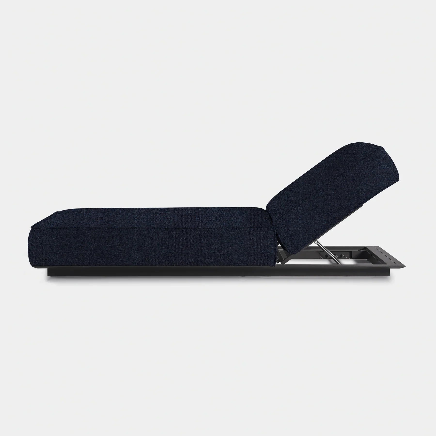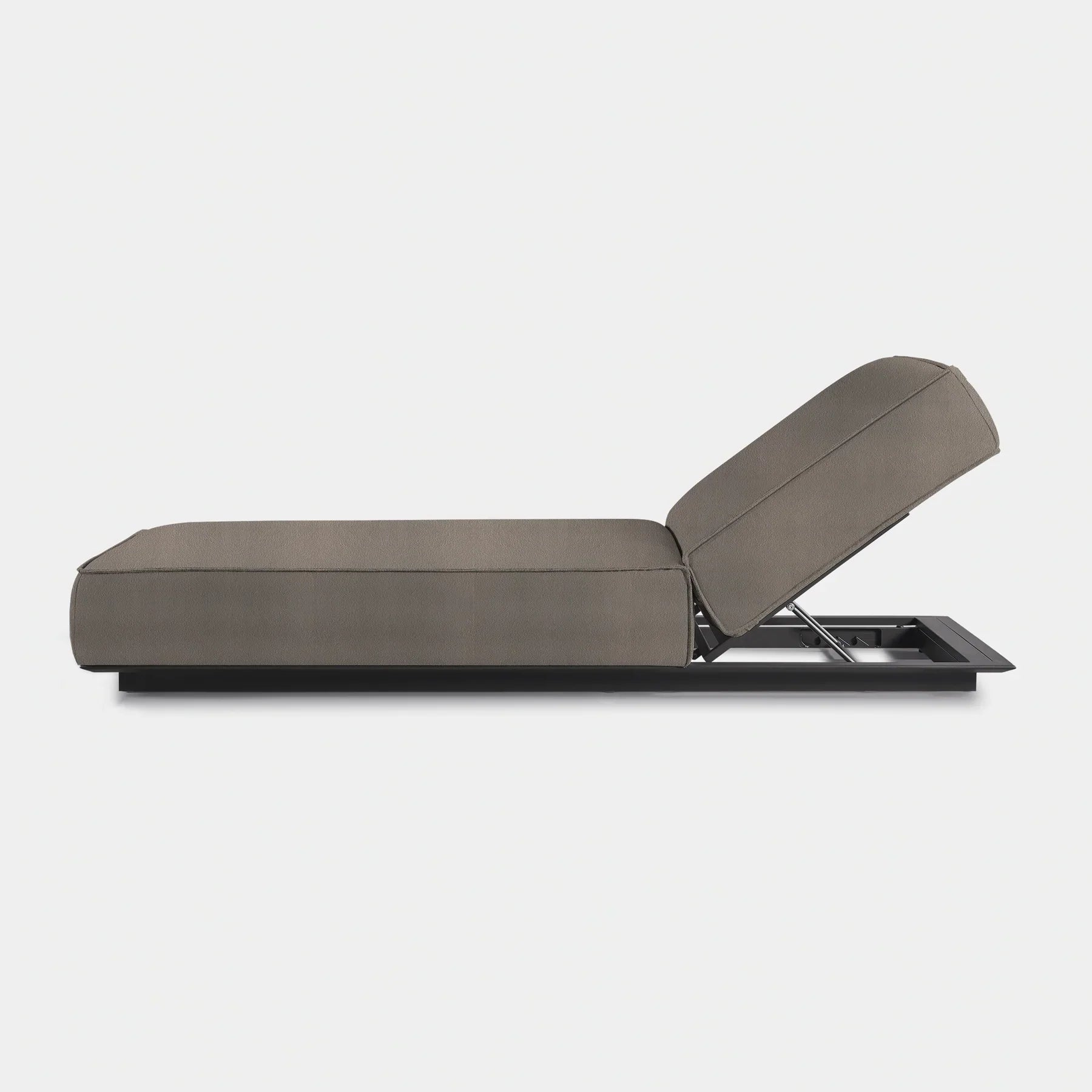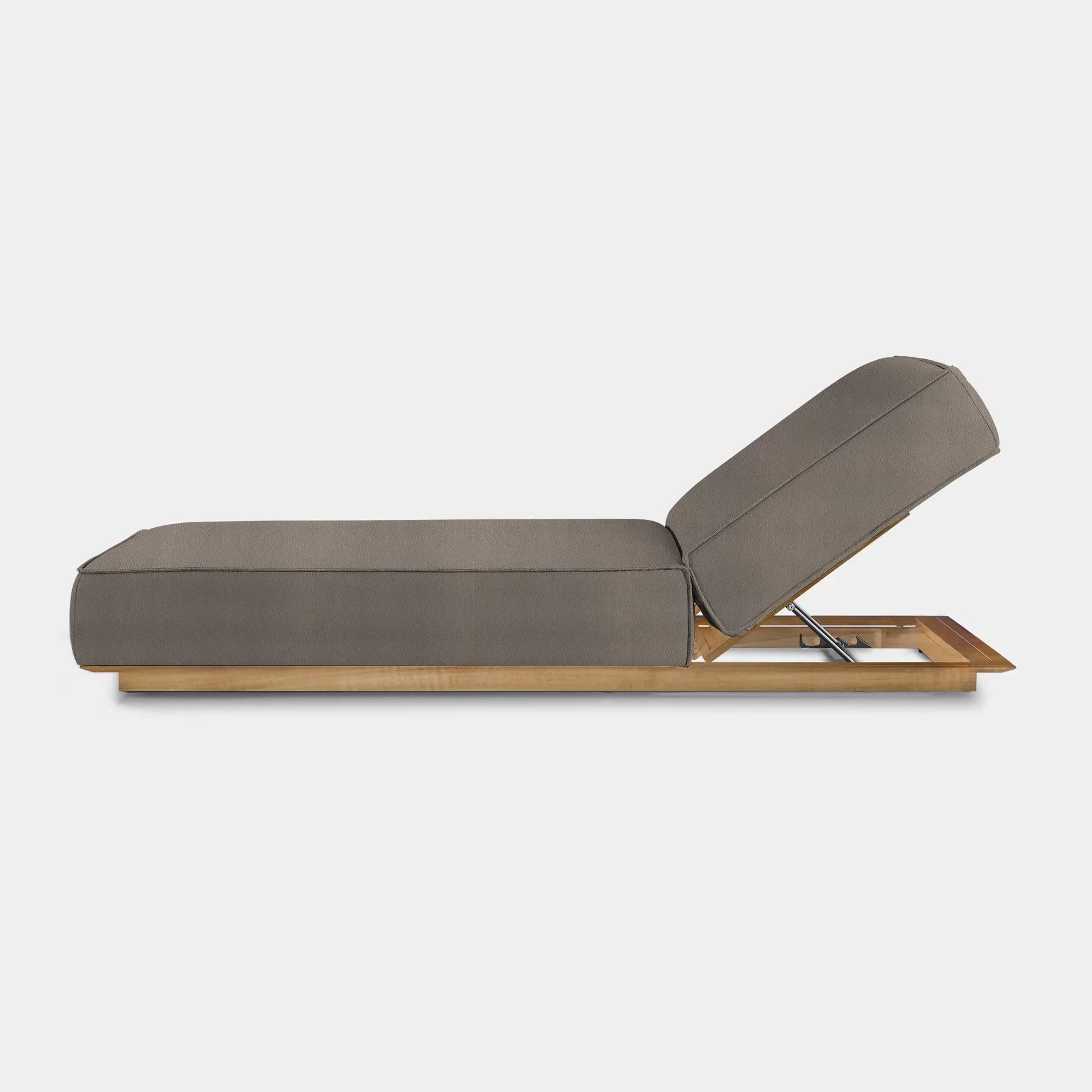 Building on our years of experience in outdoor design, the popular fully upholstered Santorini collection offers versatility in modular seating. The Santorini Sun Lounge is pure comfort — sink into an extra generous tight seat cushion with an all-weather suspension system and accent pillows, all floating on a plinth base in a choice of aluminum or teak.