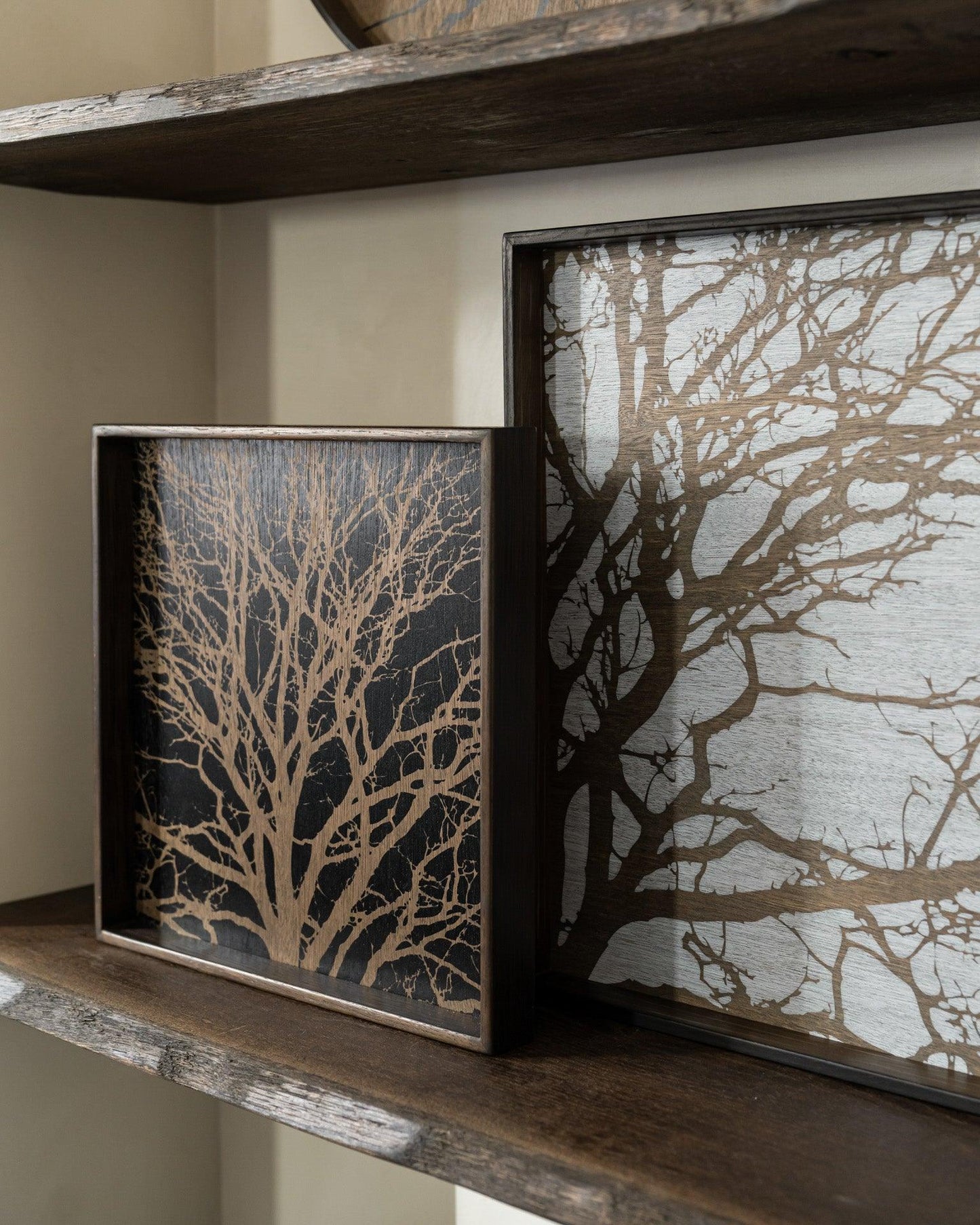 The Tray Square Coffee Table Set by Ethnicraft is a masterclass in versatility and chic design, making it a quintessential addition to contemporary homes. Crafted with an innovative approach, this set features a pair of coffee tables that not only serve as a striking focal point but also offer functional flexibility to adapt to your entertainment needs. The standout feature is the optional tray top, available in an array of colors and patterns, allowing for effortless customization to complement your interior design. The sleek black metal frame provides a durable foundation, contrasting beautifully with the wooden top for a modern aesthetic. Whether used together for a layered effect or separately as a coffee and side table, this set is sure to enhance the ambiance of any space. *Trays not included.