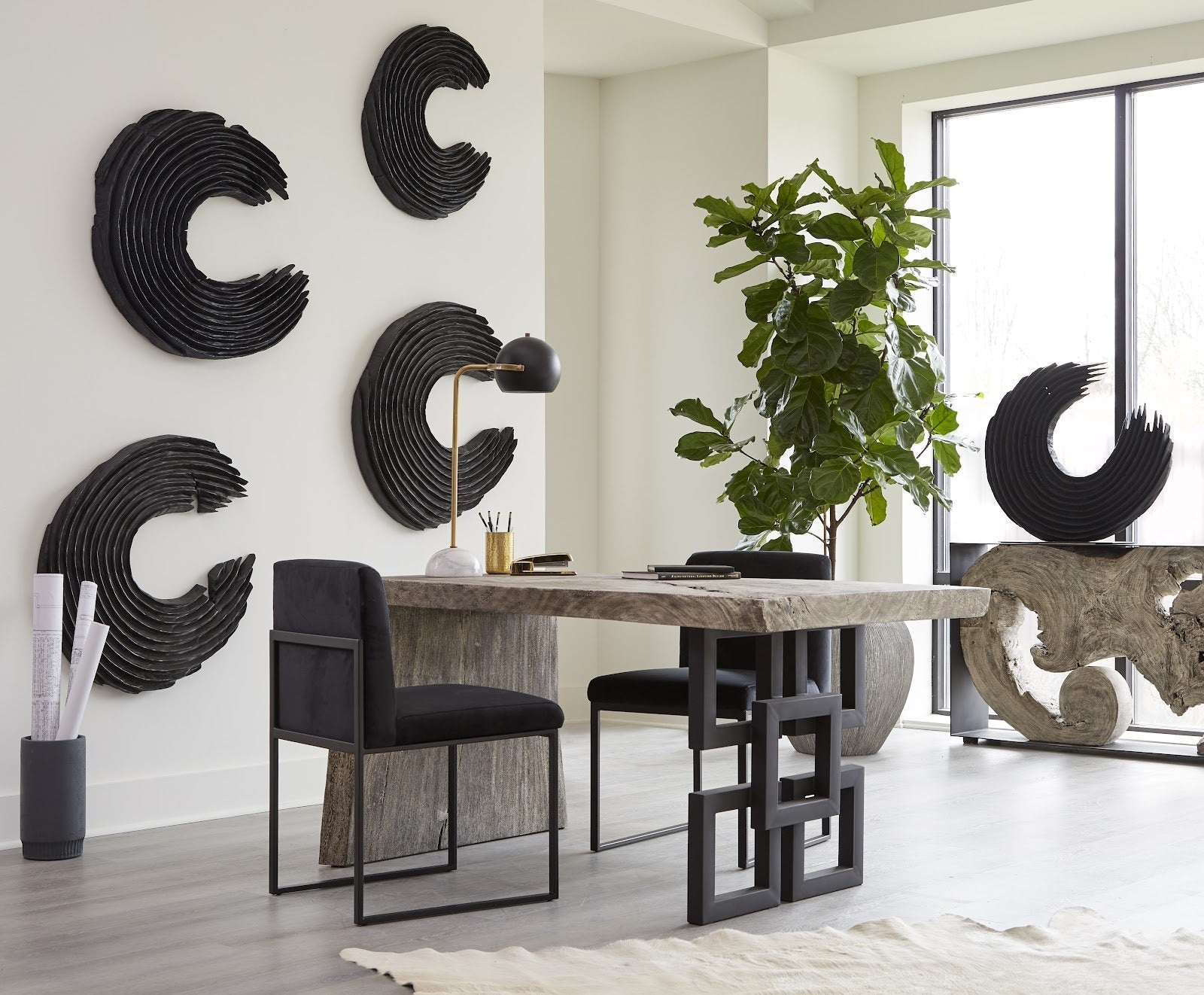 Waterfall Desk Gray Stone, Satin Black...
