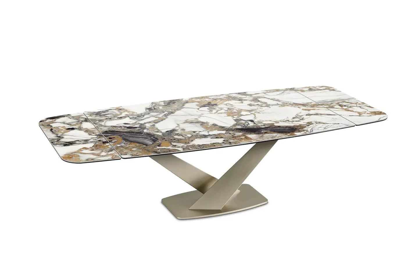 Il tavolo da pranzo Zeus, dove ogni pasto diventa un'esperienza raffinata, vi invita a cenare immersi in un design innovativo ed eleganza funzionale, garantendo che ogni momento condiviso intorno ad esso sia avvolto in stile e praticità, appositamente studiato per soddisfare le vostre esigenze.