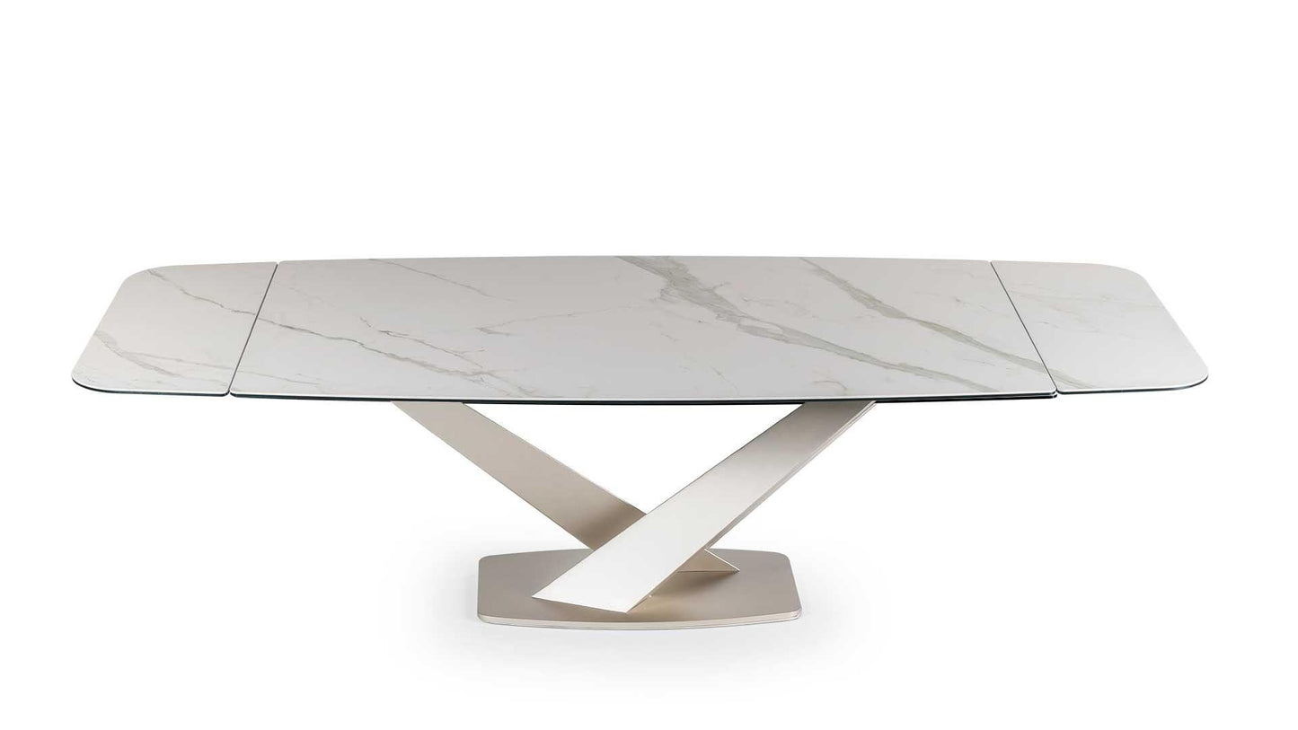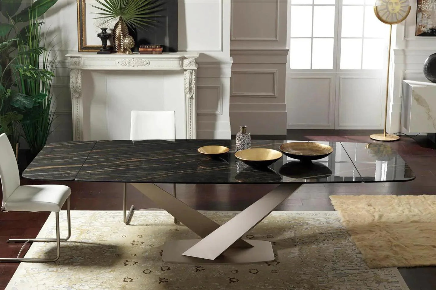 • Piano in ceramica lussuoso: Il tavolo Zeus non si limita a offrire funzionalità, ma lo fa con un tocco di opulenza, presentando i pasti su un lussuoso piano in ceramica disponibile in una varietà di finiture per soddisfare le vostre preferenze estetiche.